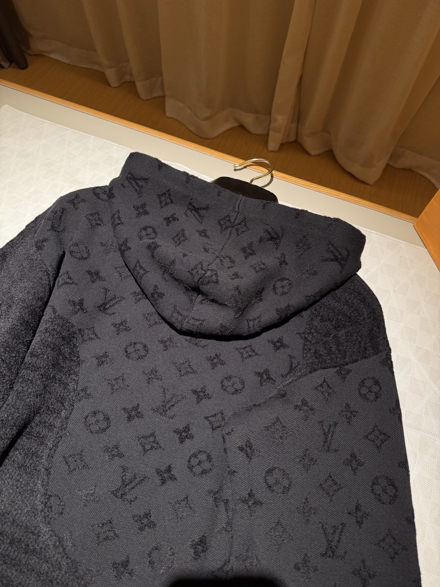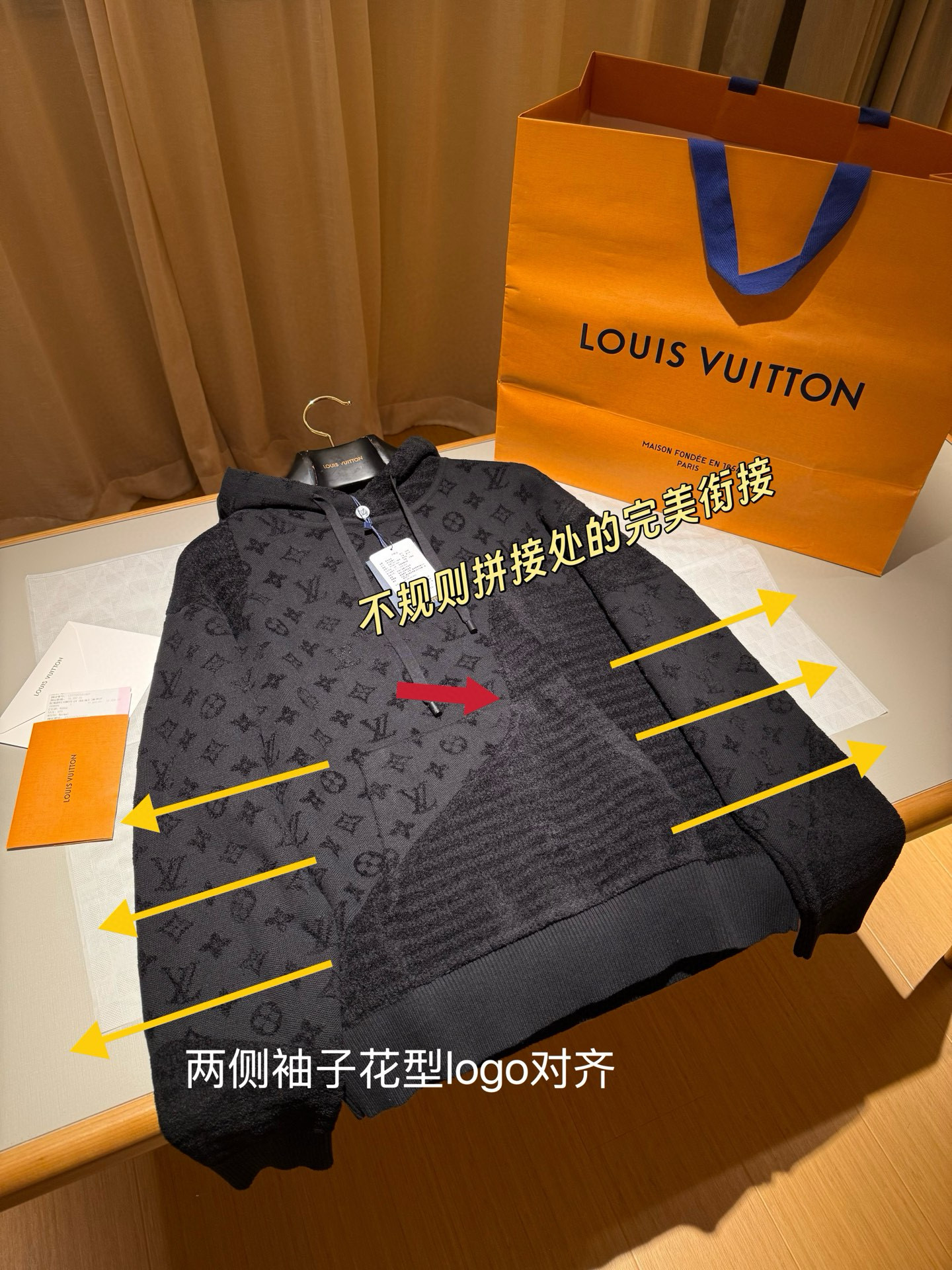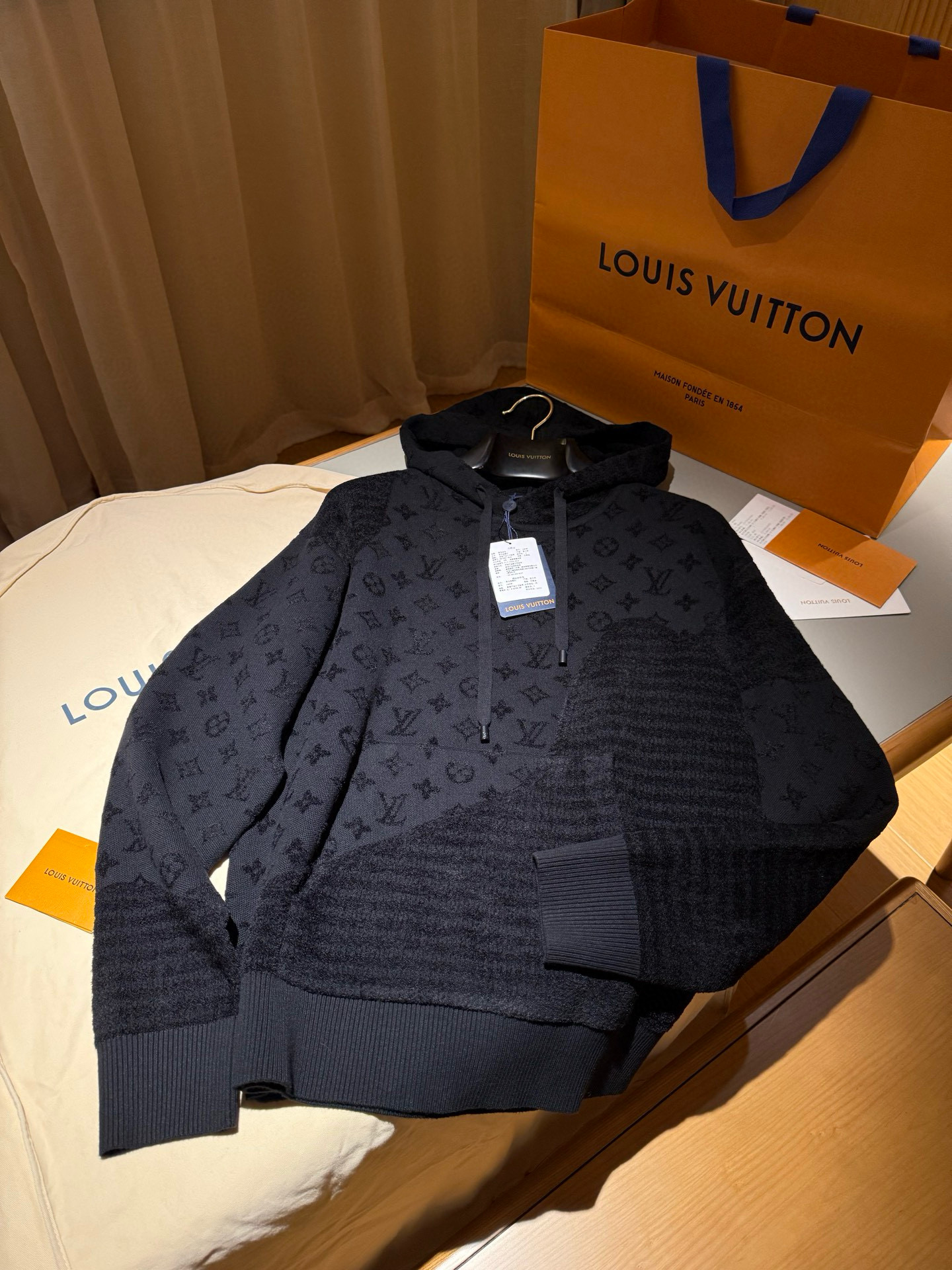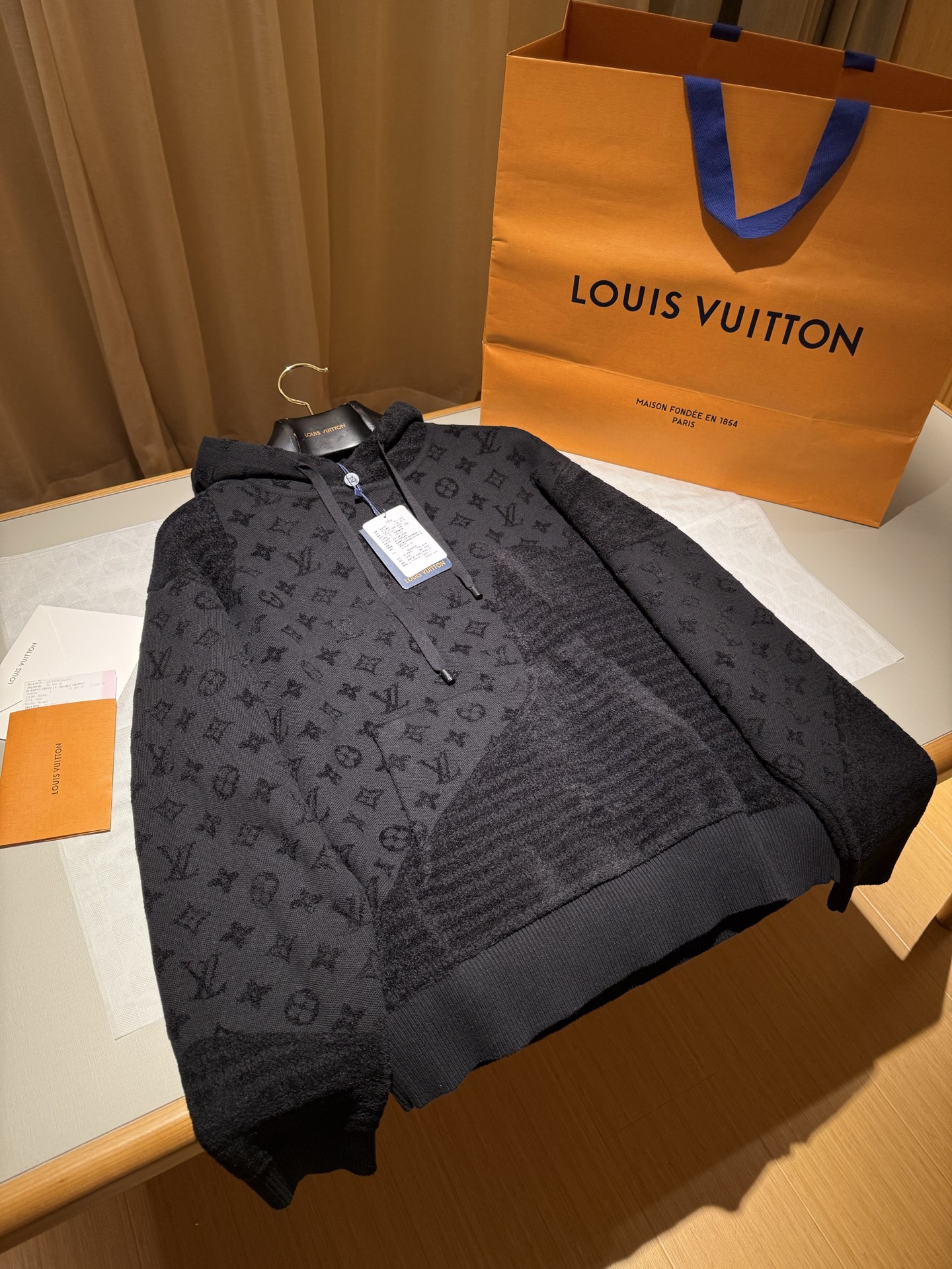 NIGO Louis Vuitton Men's Spring and Autumn Black Knitted Jacquard Patchwork Pullover Hoodie Monogram Velvet Stripe Long Sleeve Hooded Sweatshirt #nigo76342