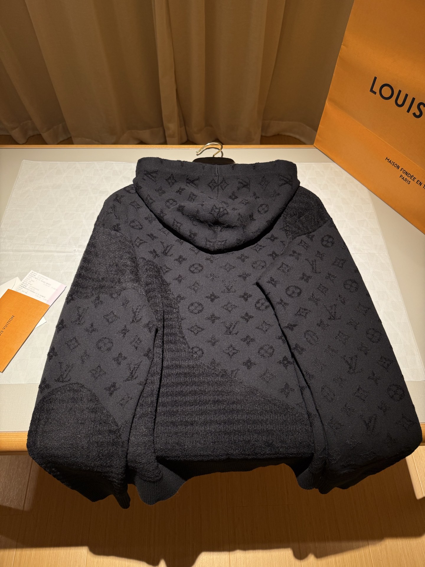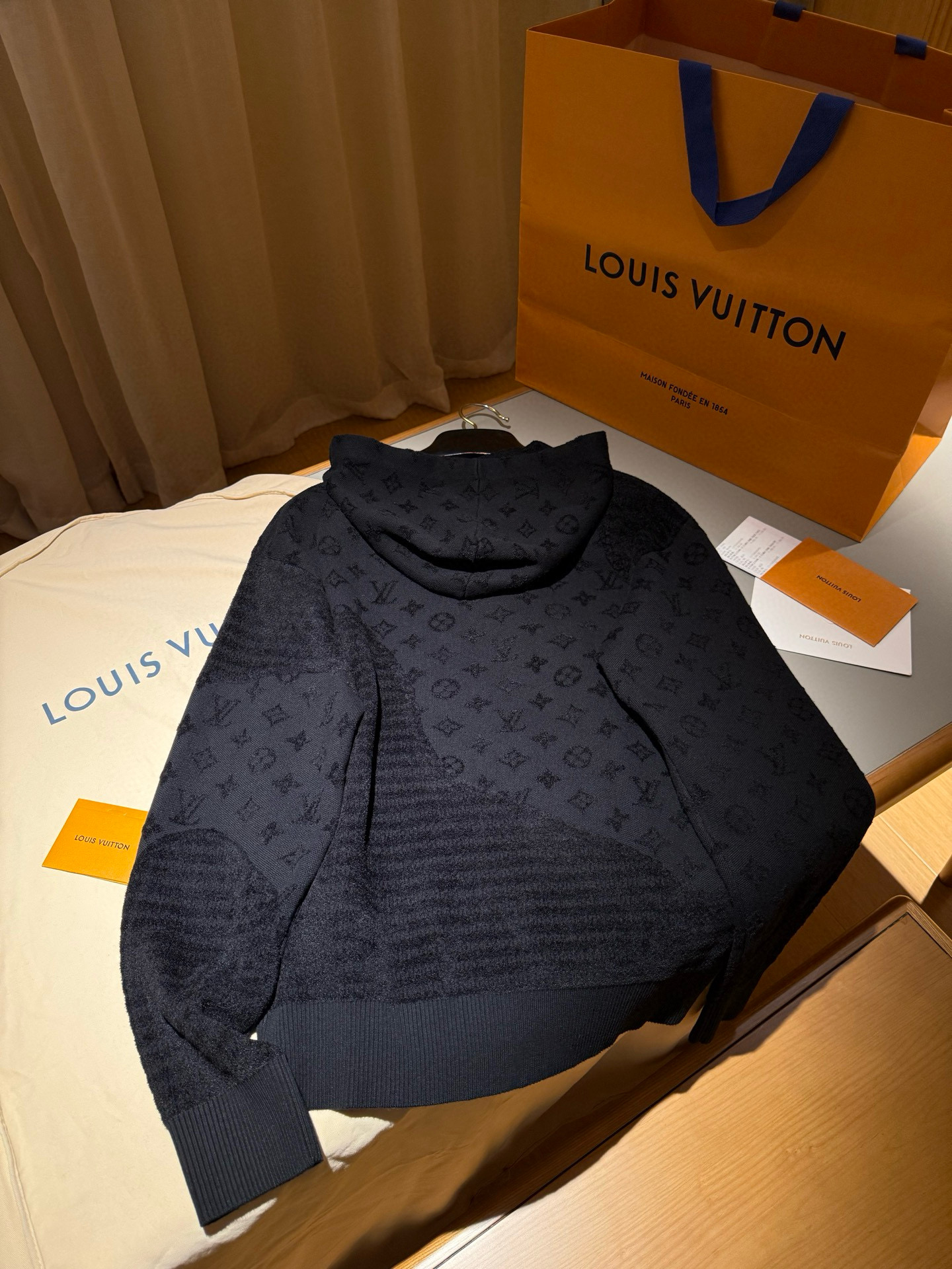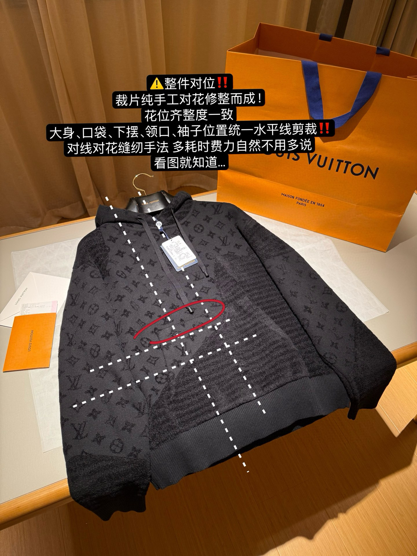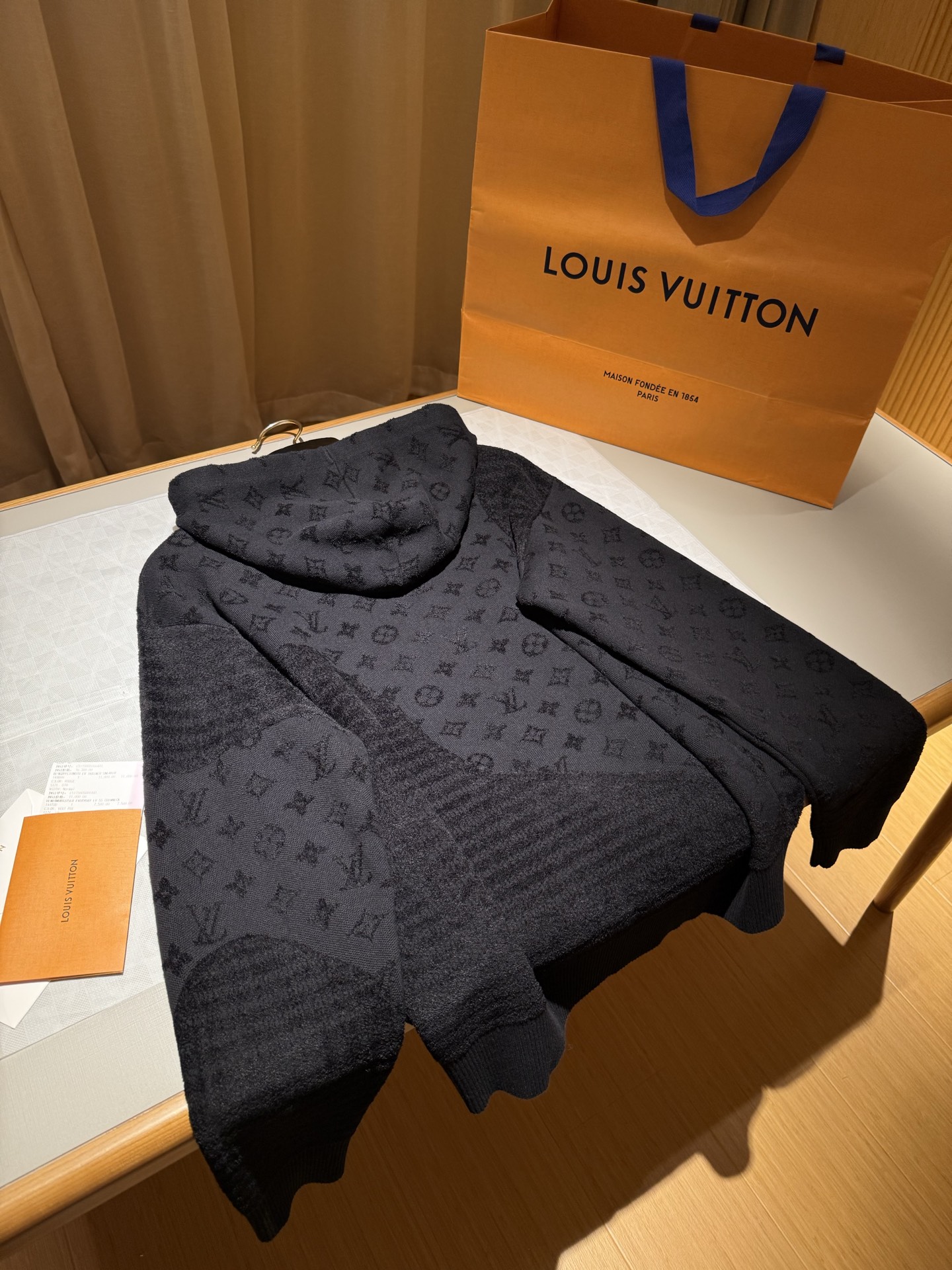 NIGO Louis Vuitton Men's Spring and Autumn Black Knitted Jacquard Patchwork Pullover Hoodie Monogram Velvet Stripe Long Sleeve Hooded Sweatshirt #nigo76342