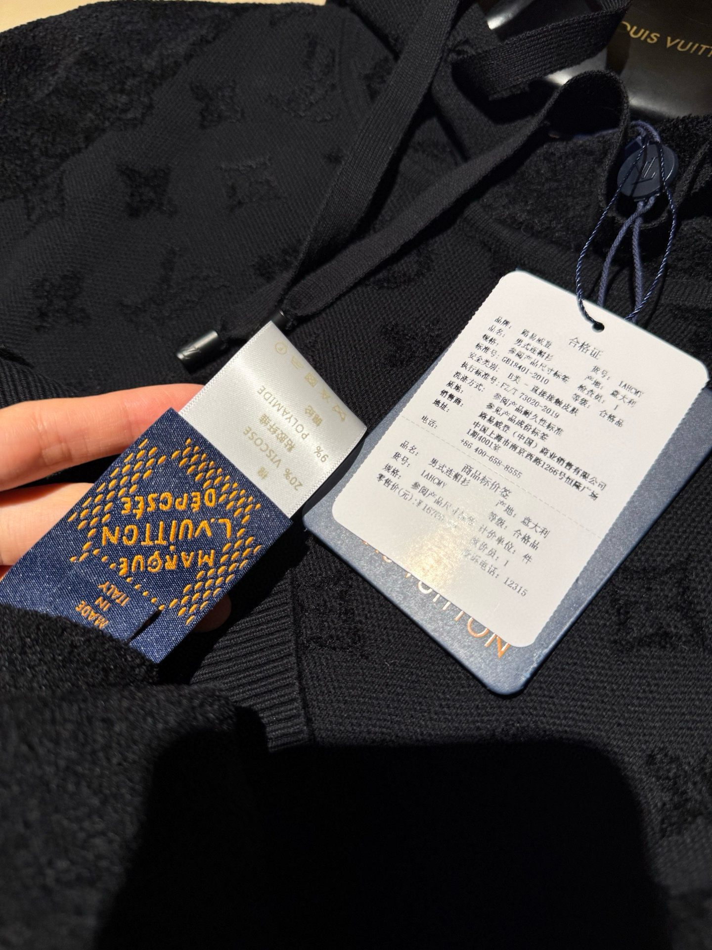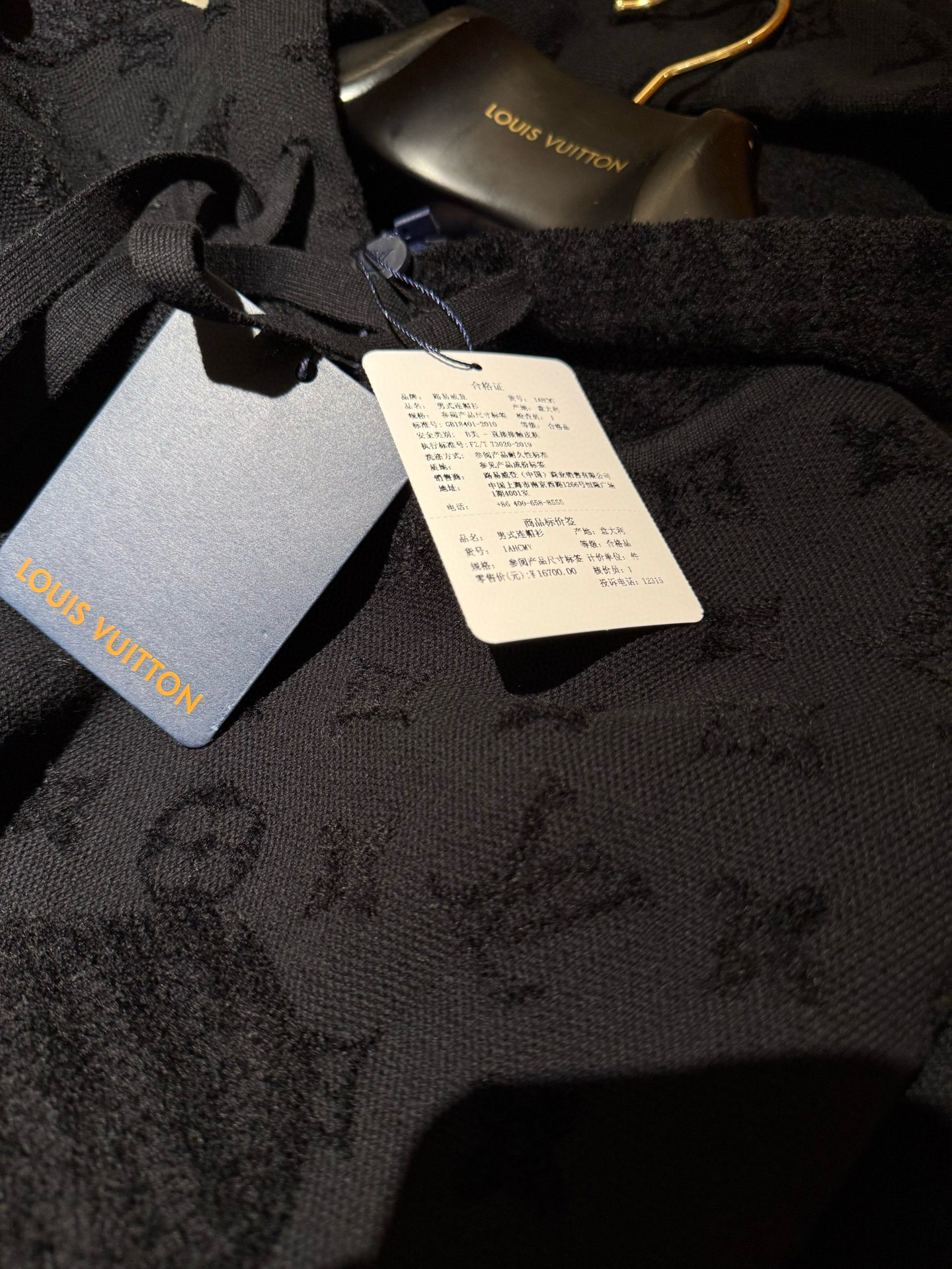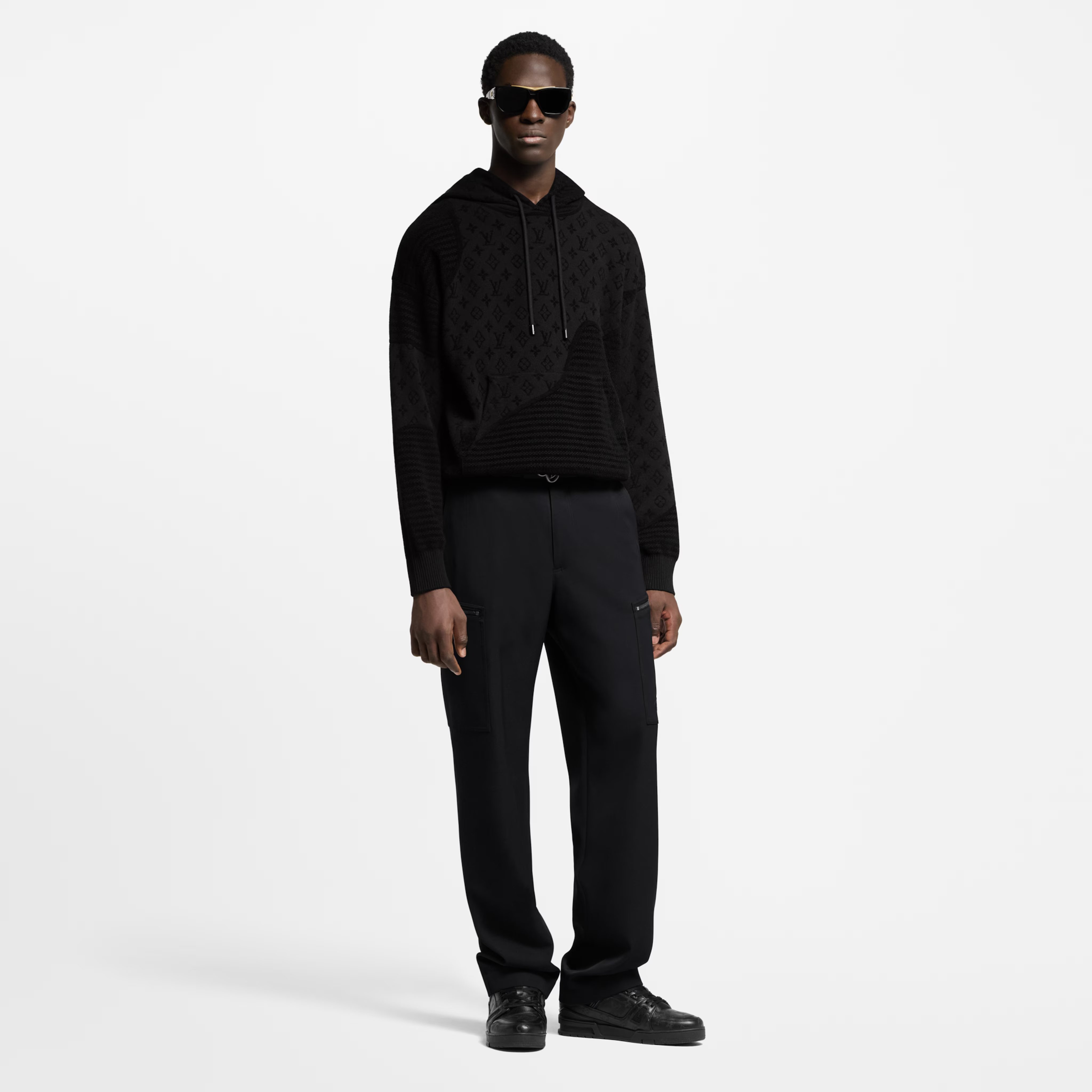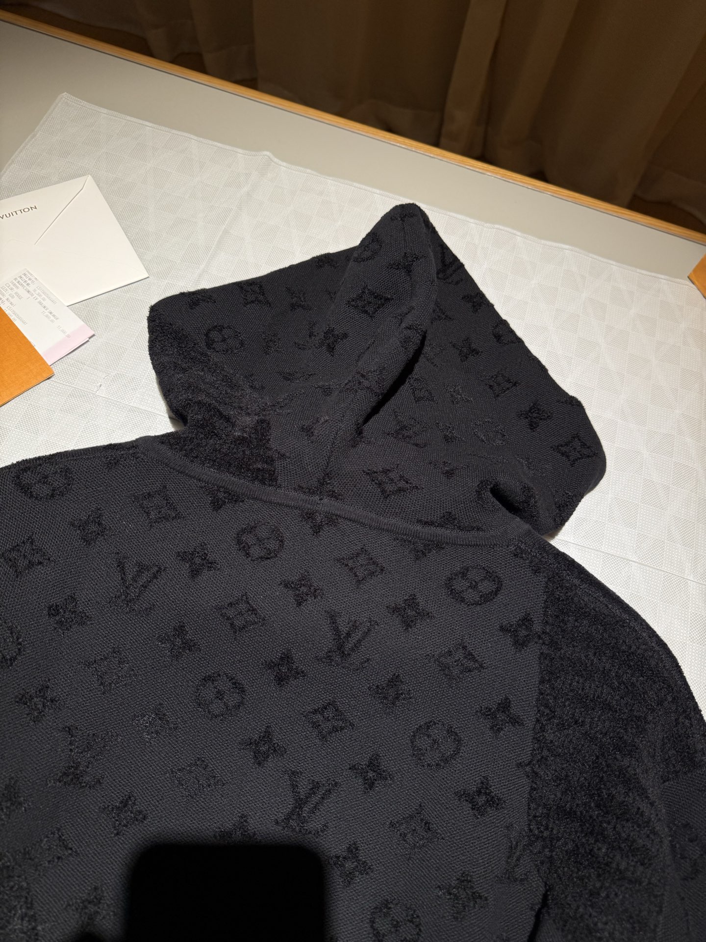 NIGO Louis Vuitton Men's Spring and Autumn Black Knitted Jacquard Patchwork Pullover Hoodie Monogram Velvet Stripe Long Sleeve Hooded Sweatshirt #nigo76342