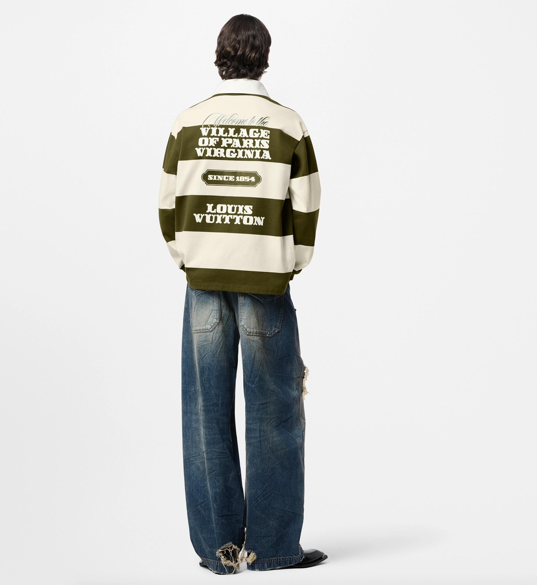 NIGO Louis Vuitton Men's Spring and Autumn Letter Logo Striped Printed Loose Long Sleeve Polo Shirt Pullover Sweatshirt #nigo72988