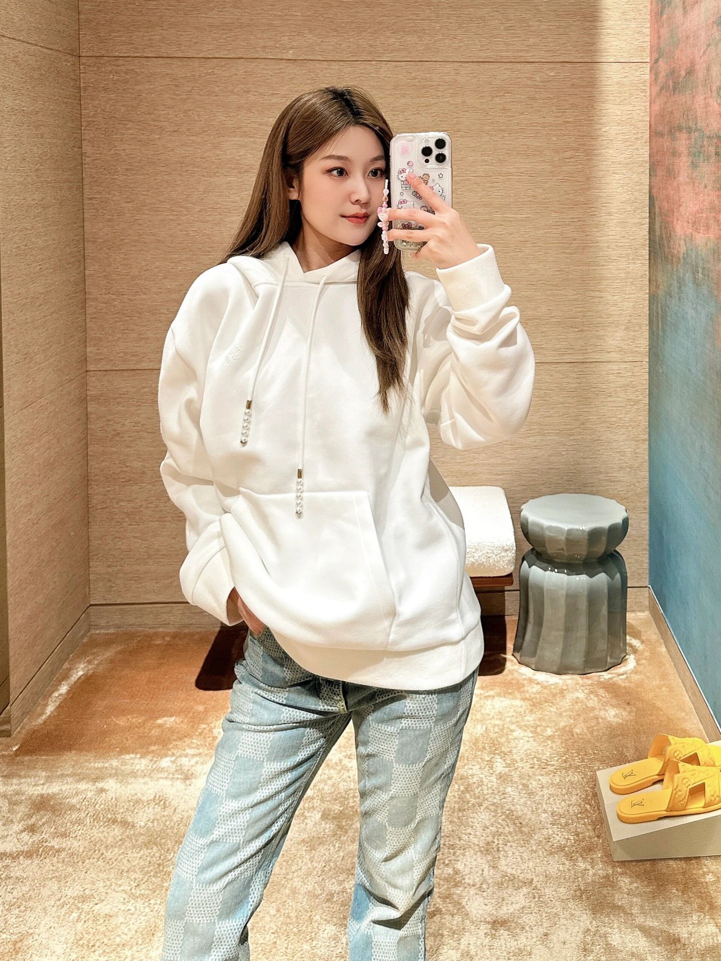 NIGO Louis Vuitton Men's Spring and Autumn White Logo Letter Embroidery Long Sleeve Hooded Sweatshirt Pullover #nigo73223