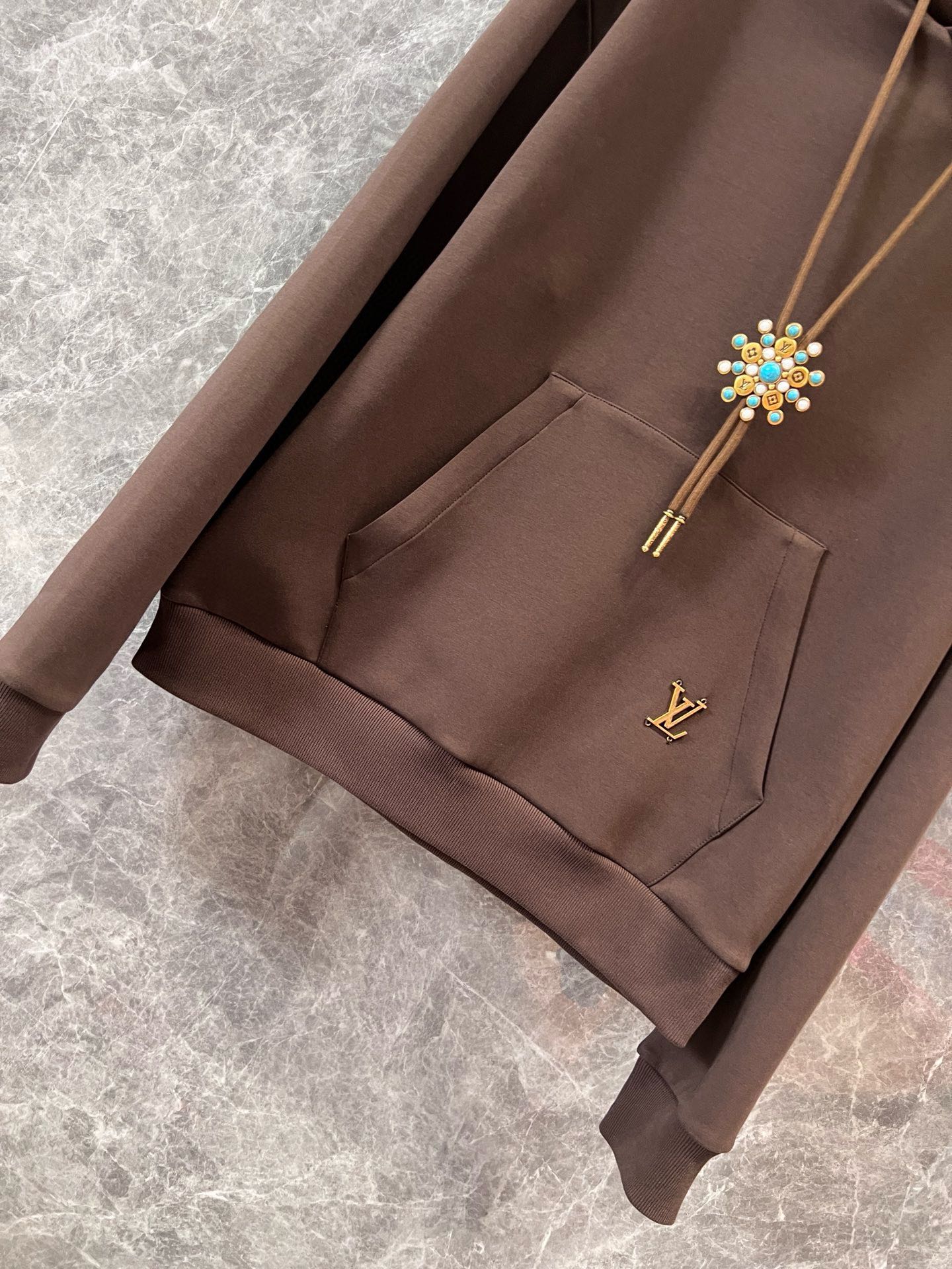 NIGO Louis Vuitton Men's Spring and Fall Brown Logo Metal Label Drawstring Hooded Sweatshirt Pullover #nigo73122