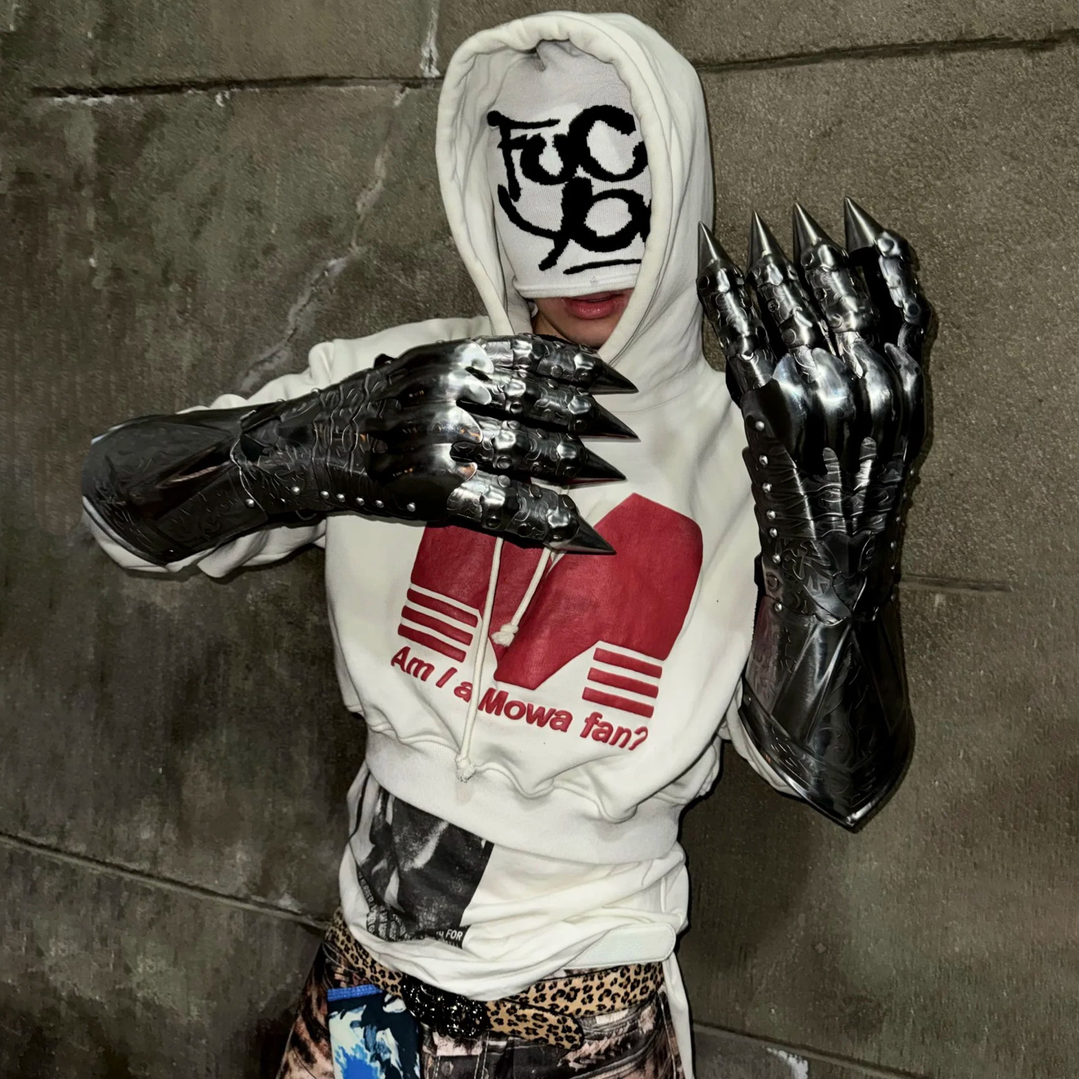NIGO Mowalola Men's Spring Autumn White Letter Print Hooded Sweatshirt High Street Short Fashion Trend Pullover Sweatshirt Ngvp #nigo1645