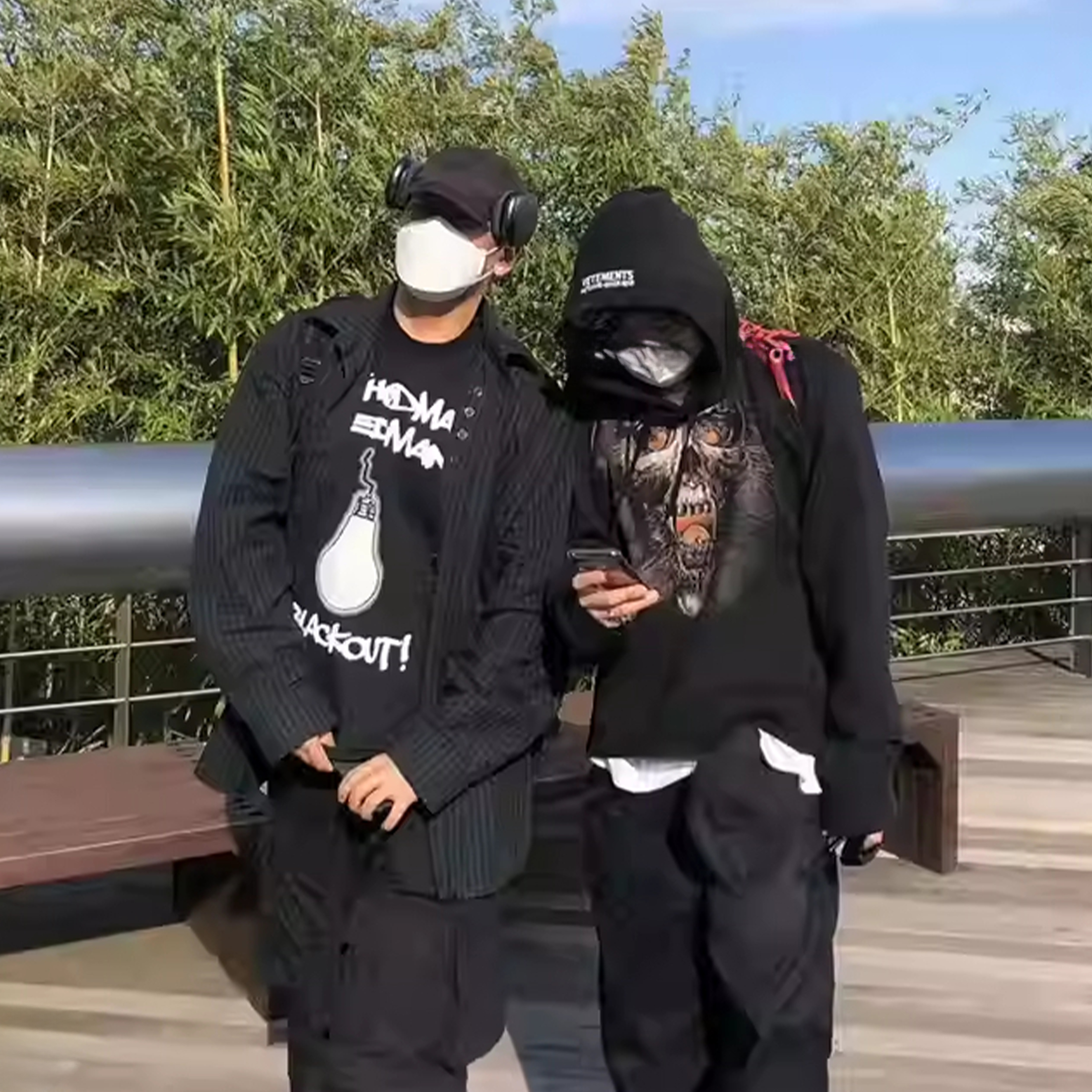 NIGO Vetements Men's Shoulder Pads Ghost Face Sweater Pullover Hoodie Autumn Winter High Street Hip-hop Printing Casual Sweatshirt Ngvp #nigo9997