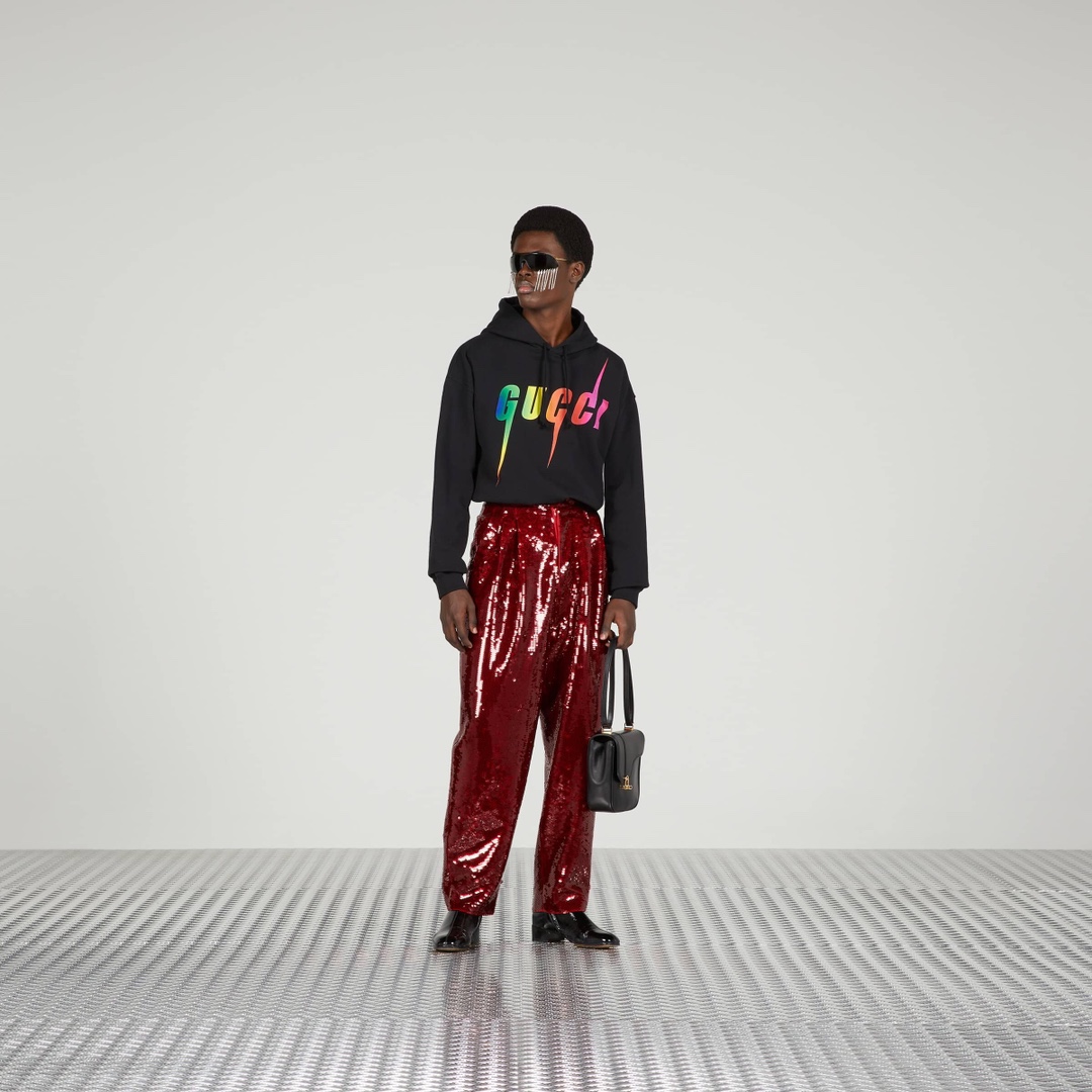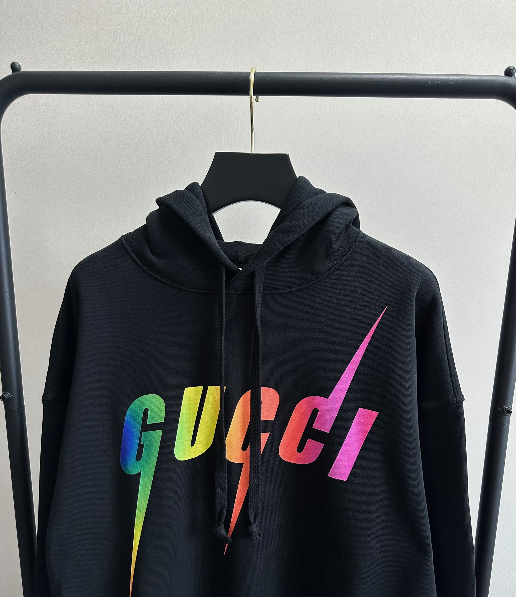 NIGO Gucci Men's Spring And Autumn High Street Style Letter Printed Cotton Loose Black Hooded Sweatshirt #nigo71447