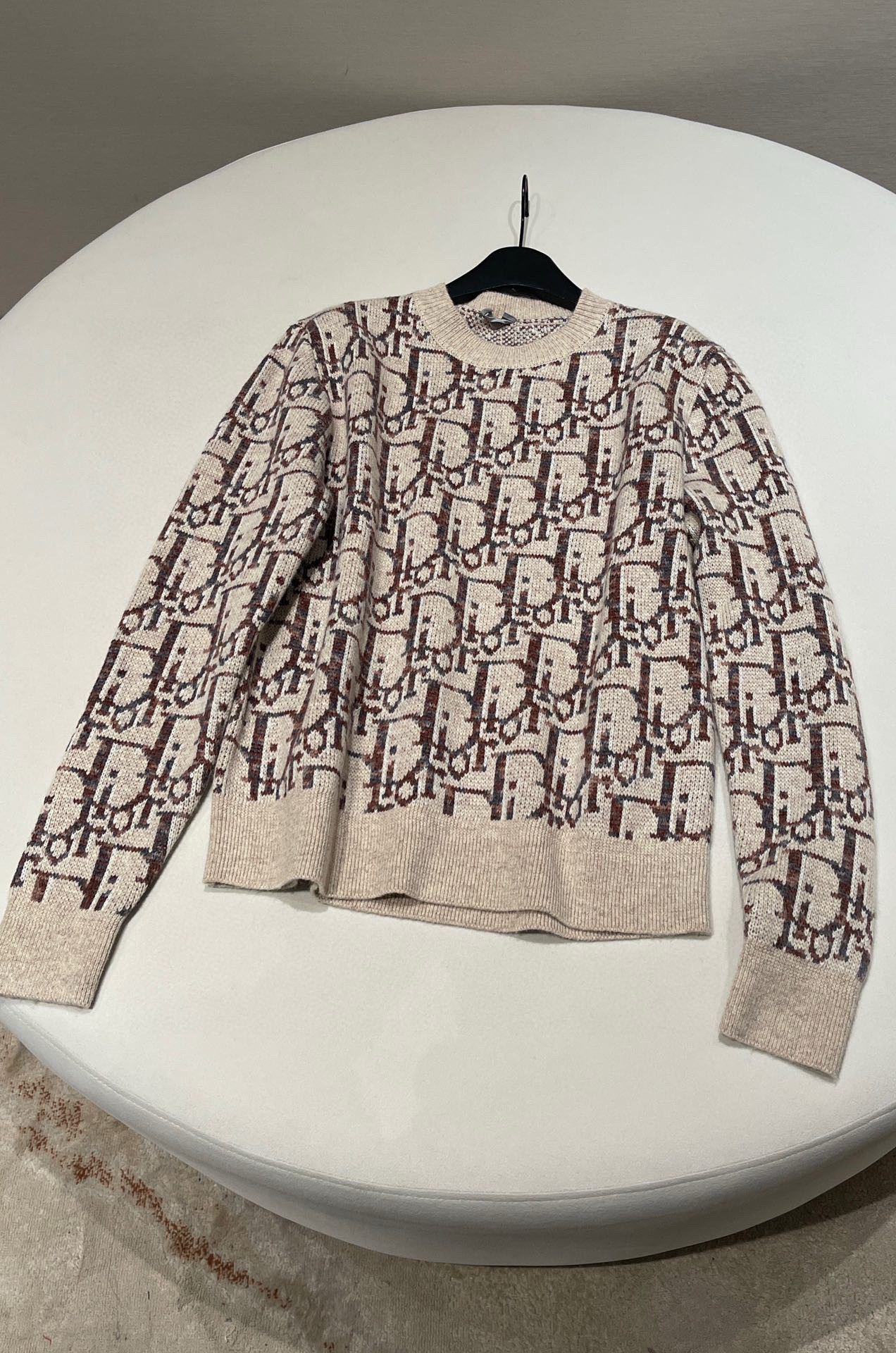 NIGO Dior Men's Beige Letter Knit Crew Neck Pullover Long Sleeve Sweater #nigo97589