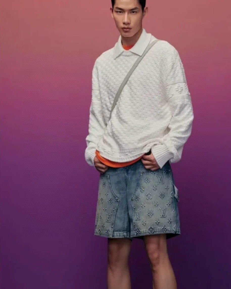 NIGO Louis Vuitton Men's Autumn/Winter White Lapel Knit Sweater LV Damier Wool Blend Pullover #nigo97613