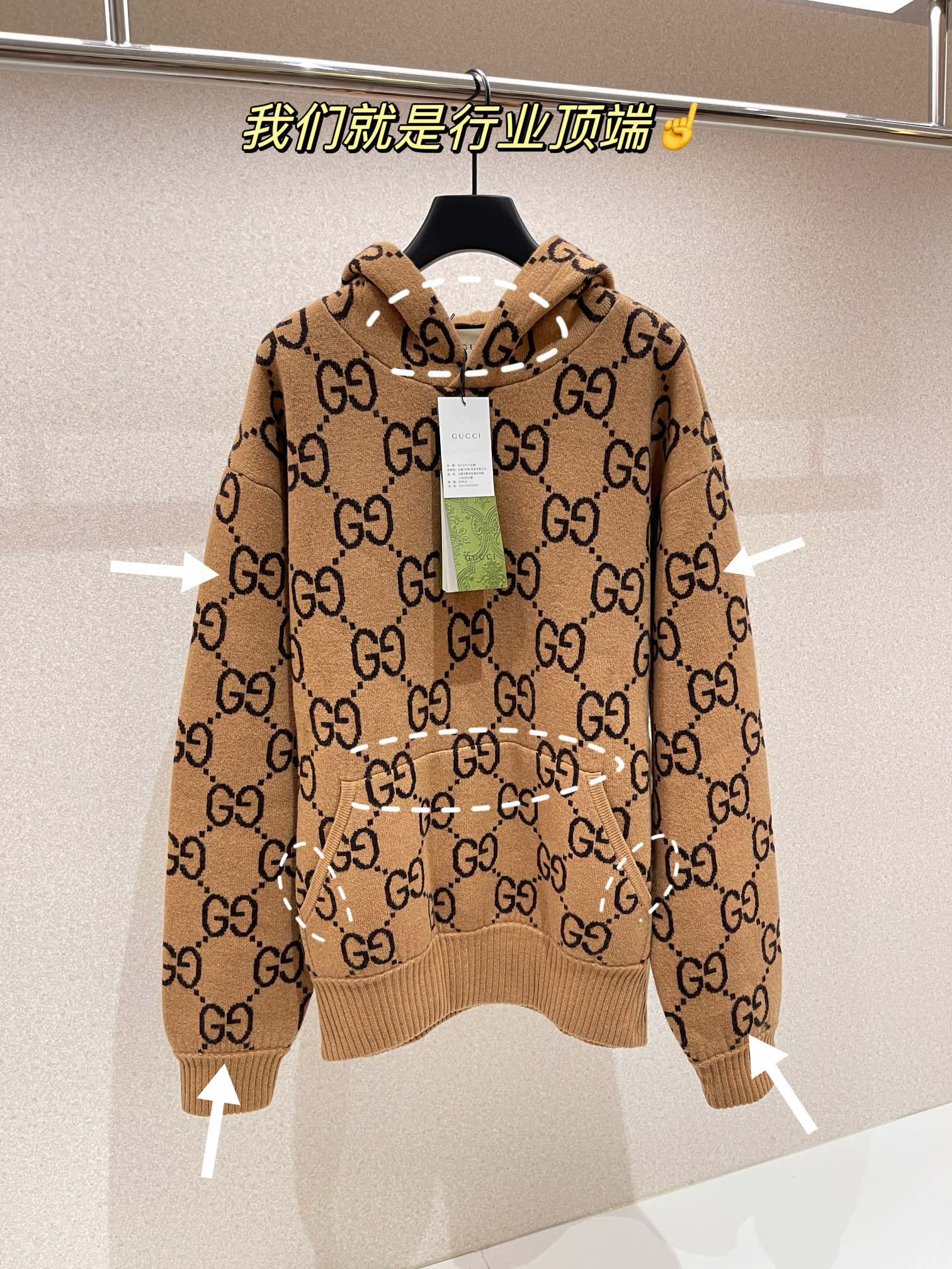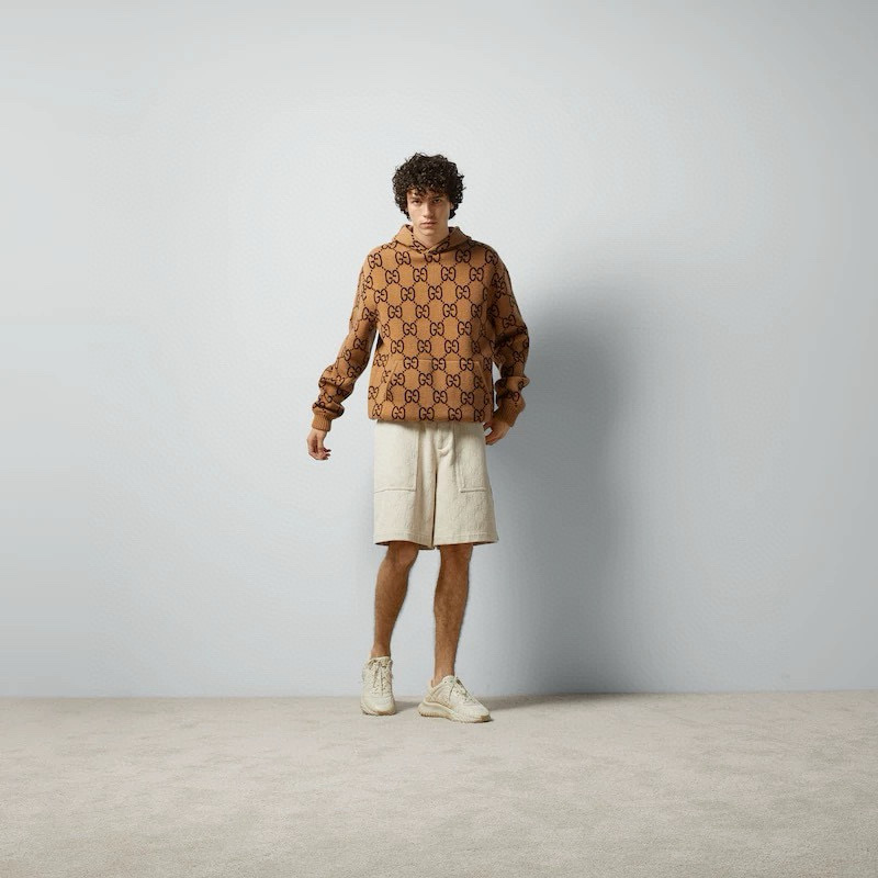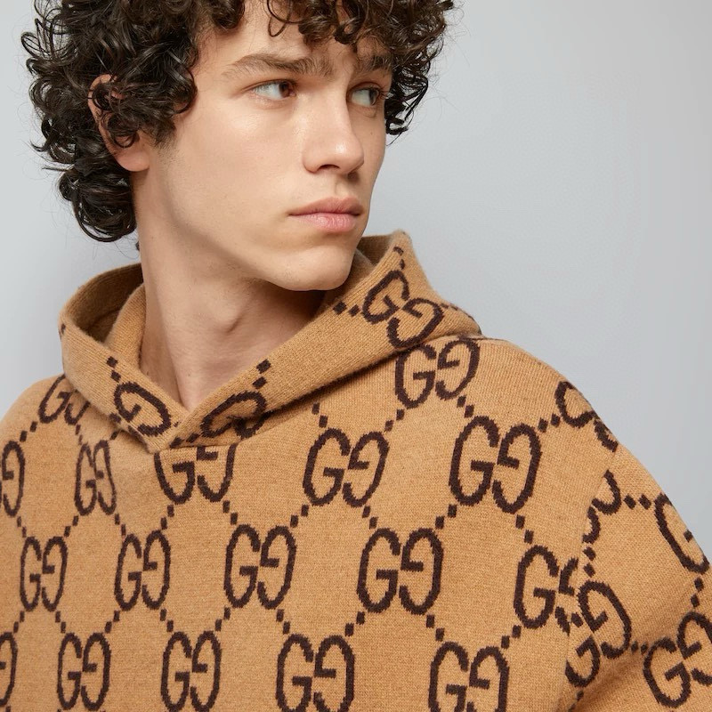 NIGO Gucci Men's Spring/Summer Khaki Logo Print GG Wool Hooded Sweatshirt Pullover #nigo97596