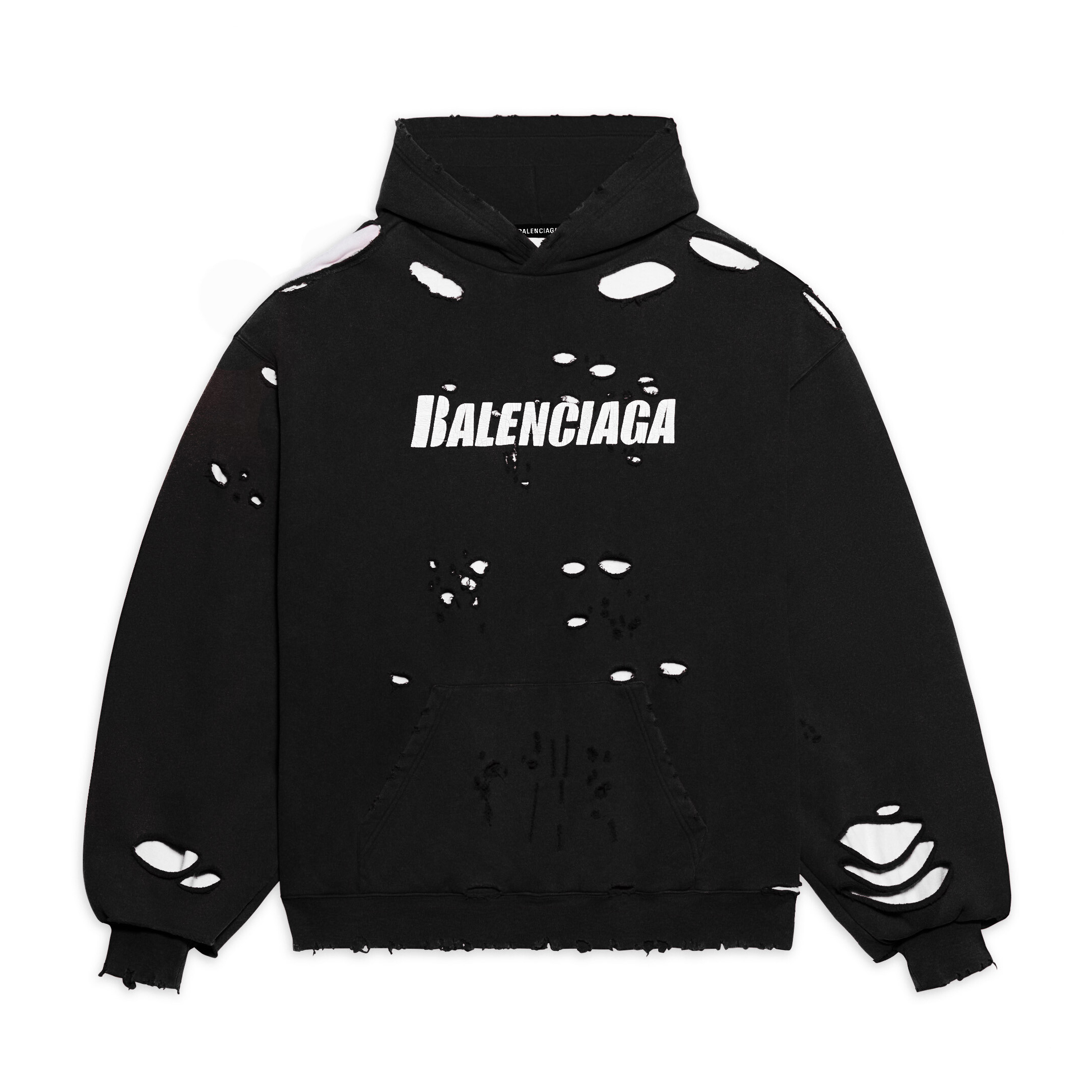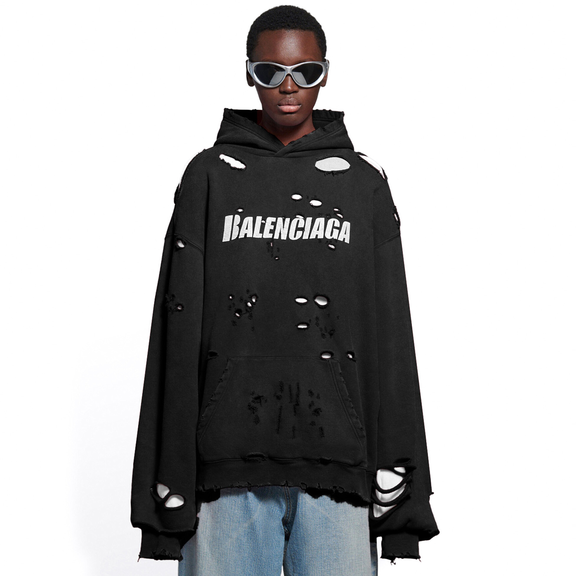 NIGO Balenciaga Men's Summer Black Letter Printed Torn Hooded Sweatshirt Pullover #nigo97624