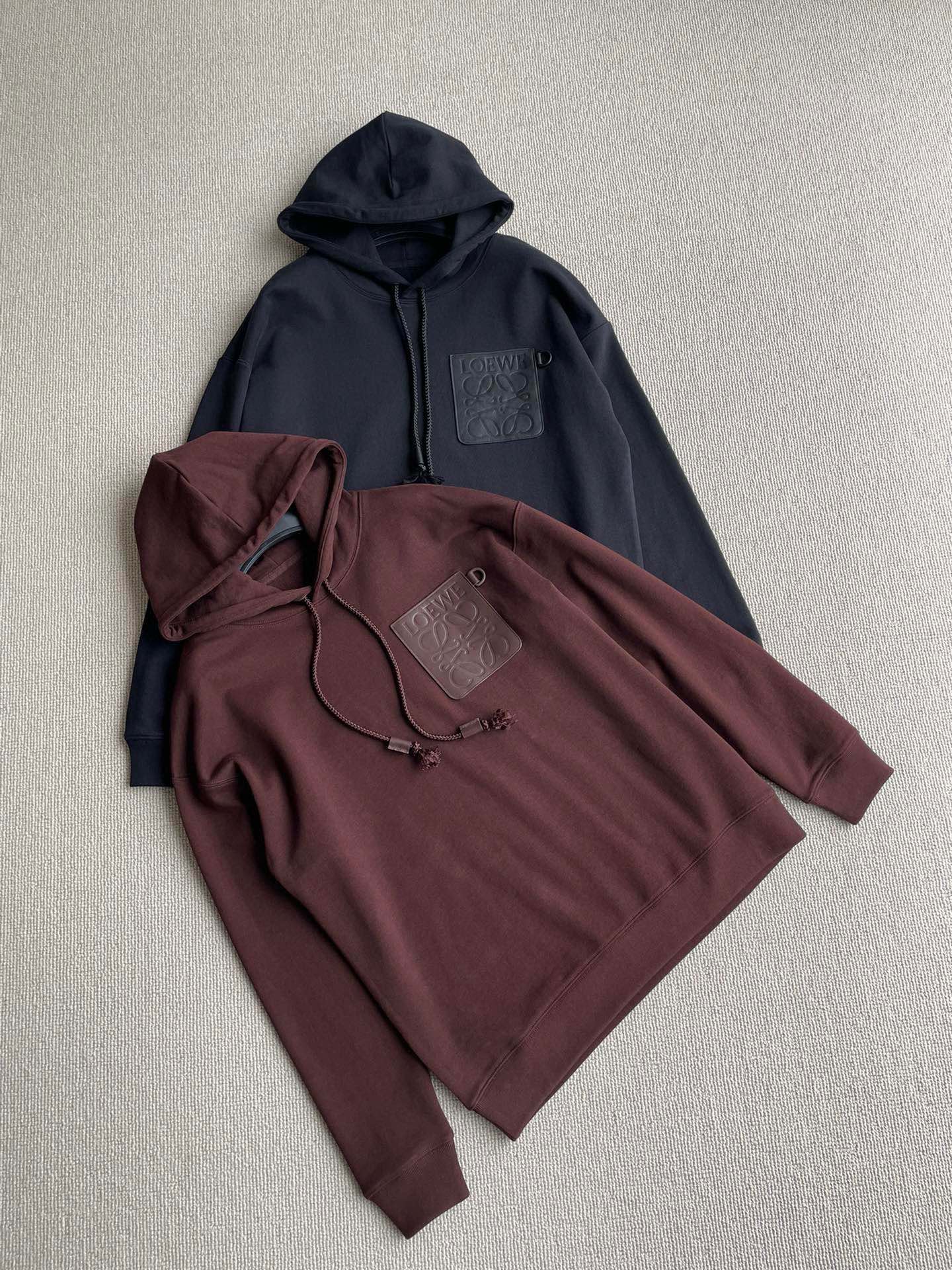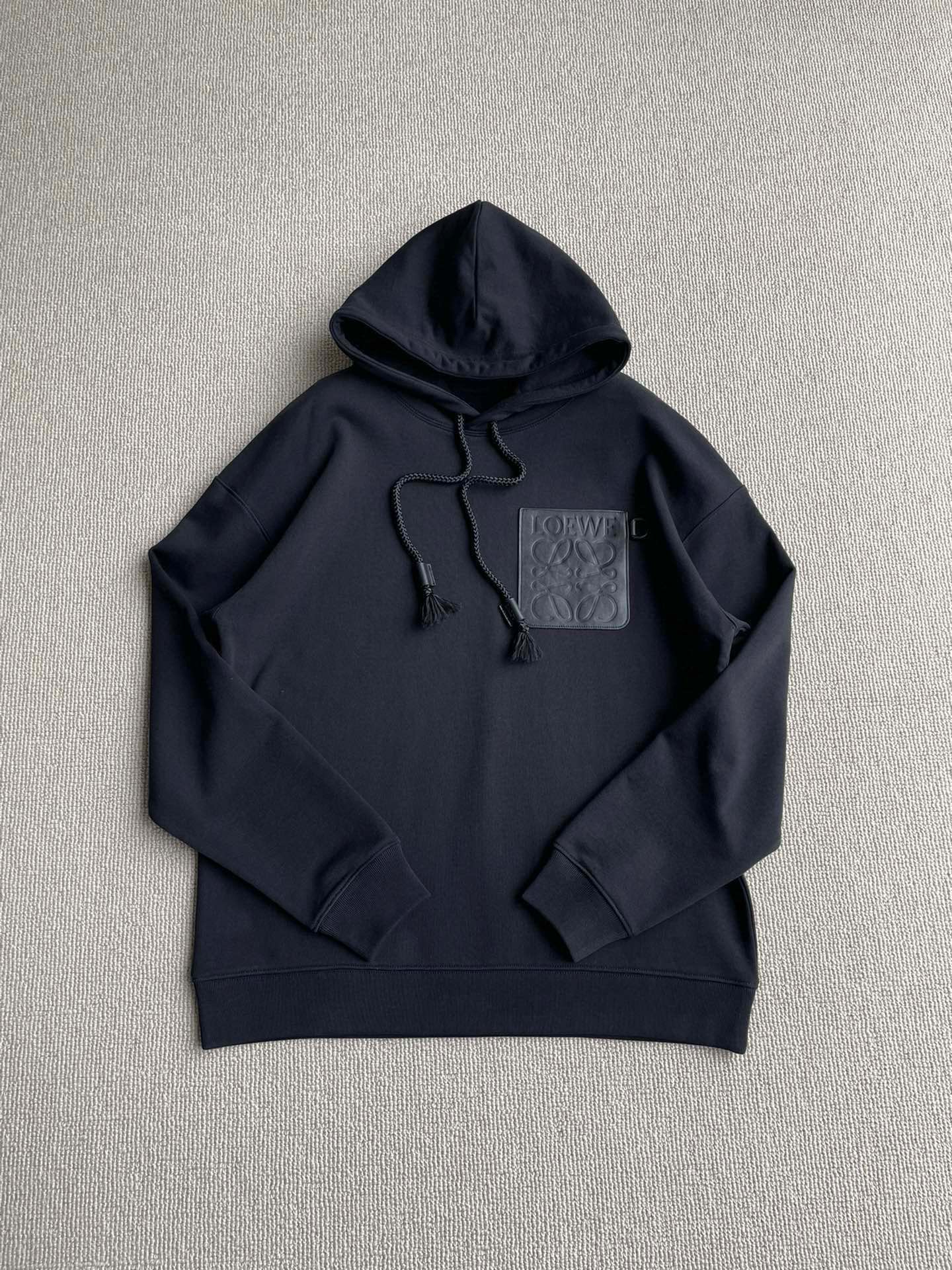 NIGO Loewe Men's Solid Color Autumn and Winter Leather Splicing Loose Hooded Sweatshirt #nigo74485