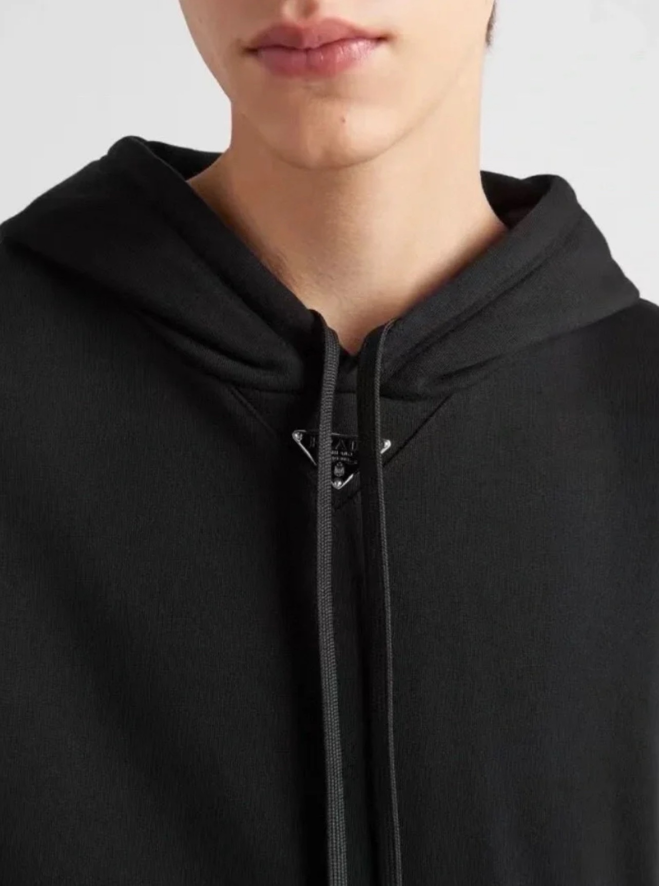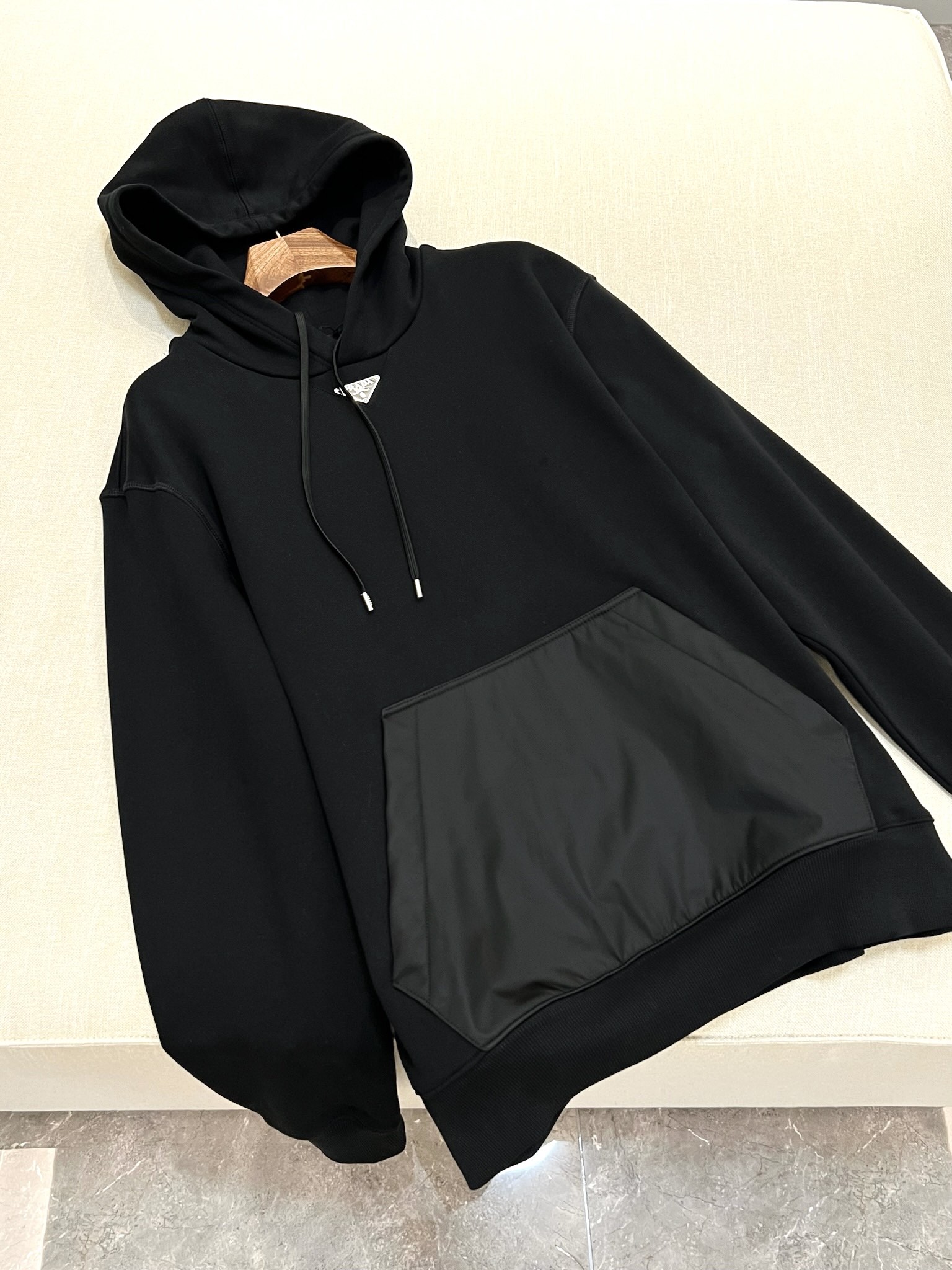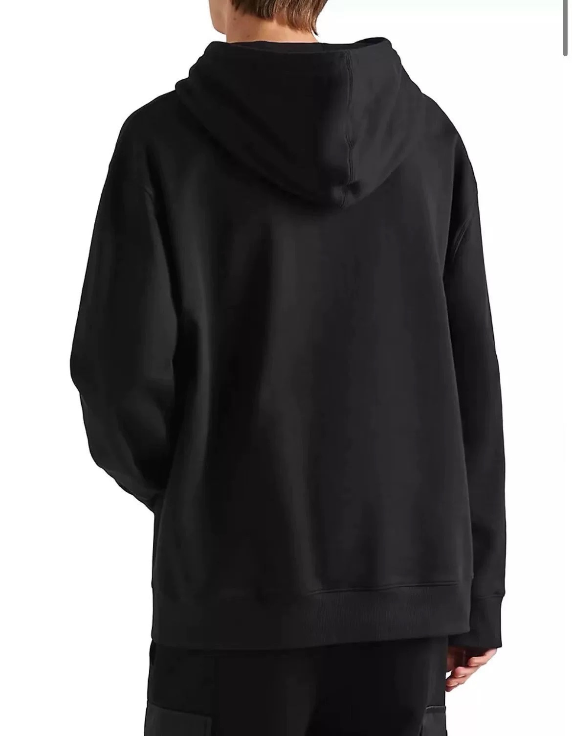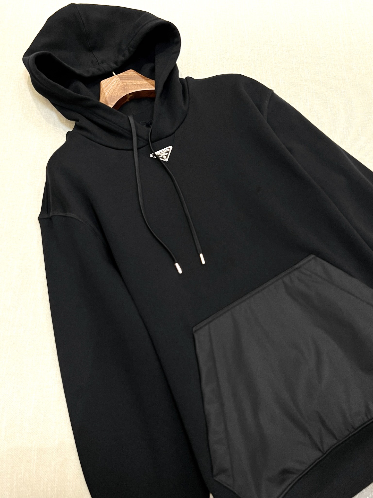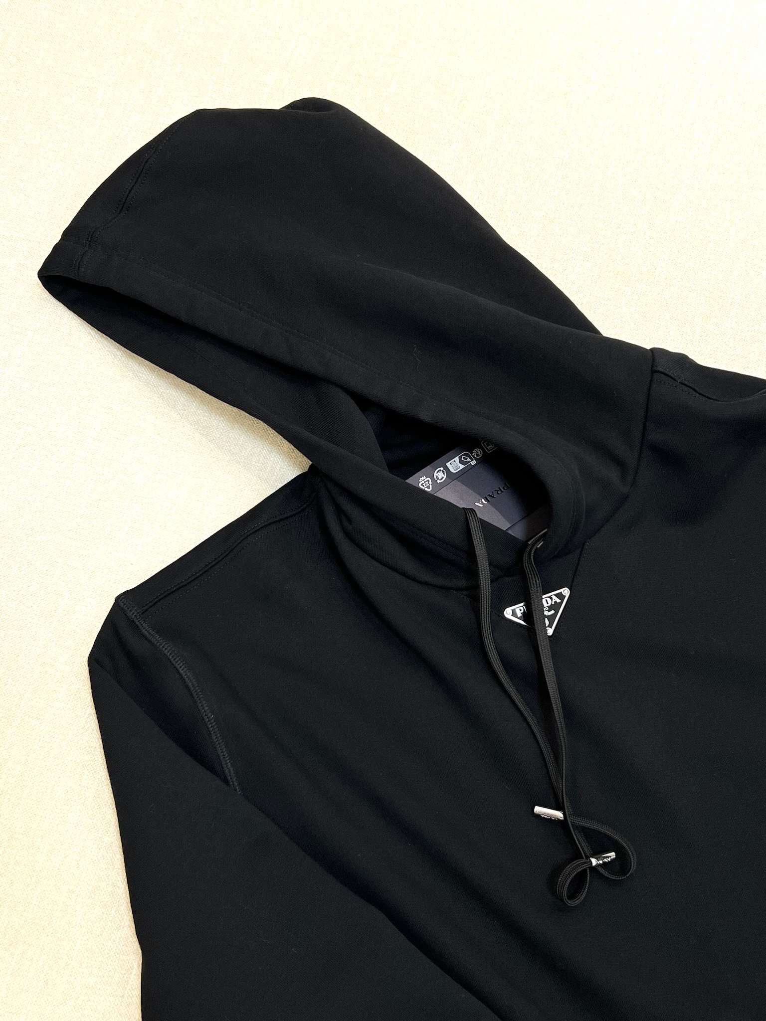 NIGO Prada Men's Spring and Fall Triangle Metal Label Black Cotton Hooded Drawstring Loose Sweatshirt Pullover #nigo73284