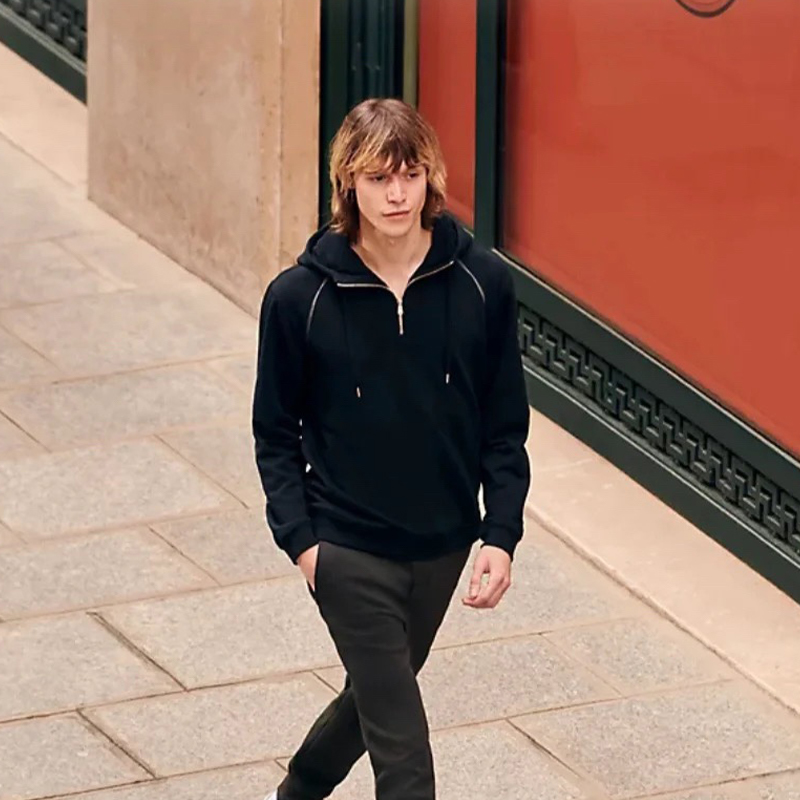 NIGO Hermes Men's Spring And Autumn Solid Color Half Zip Cotton Casual Long Sleeve Hooded Sweatshirt Ngvp #nigo9415