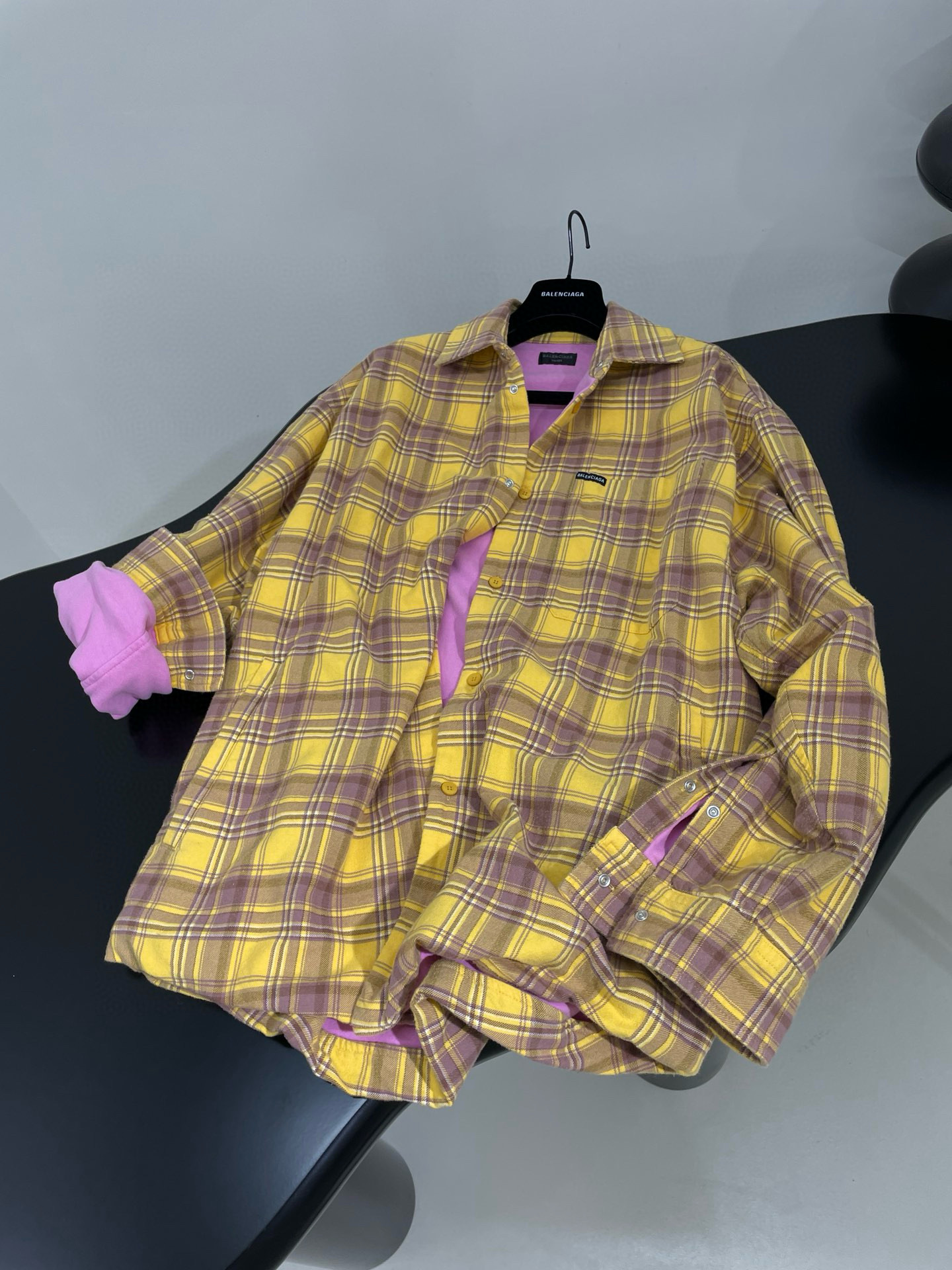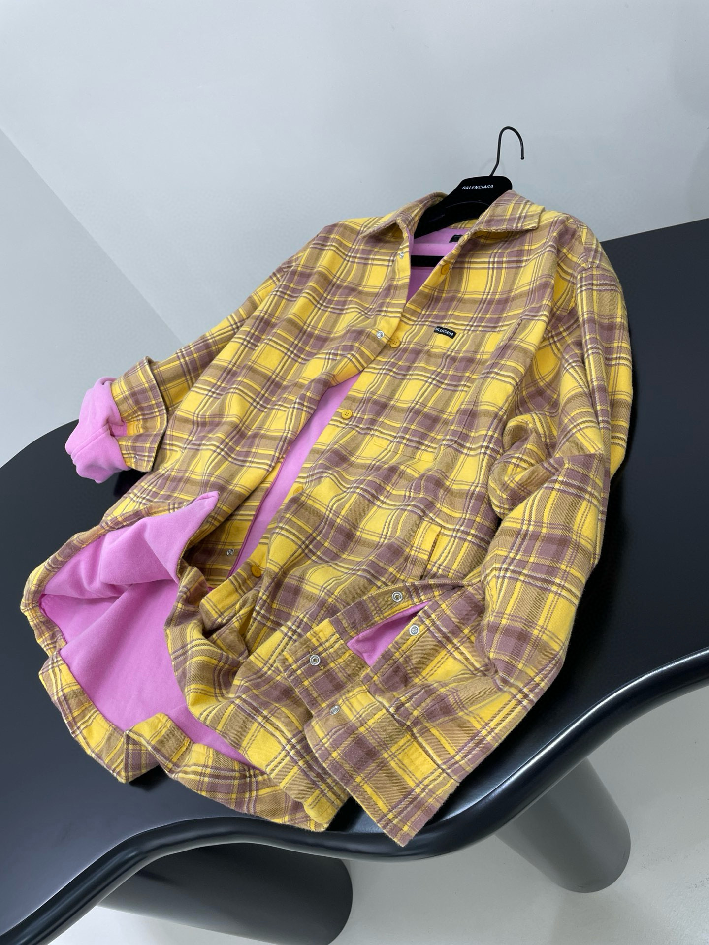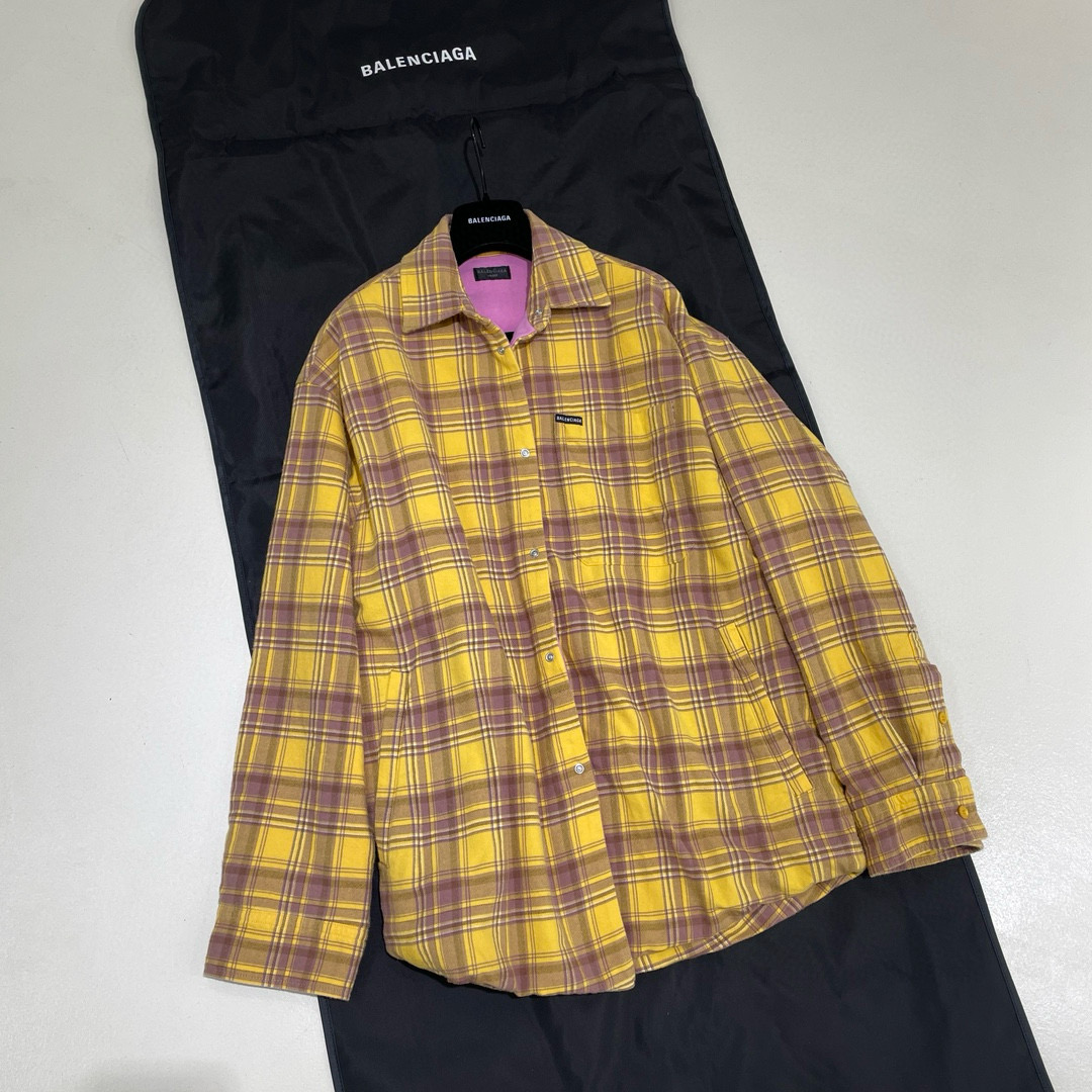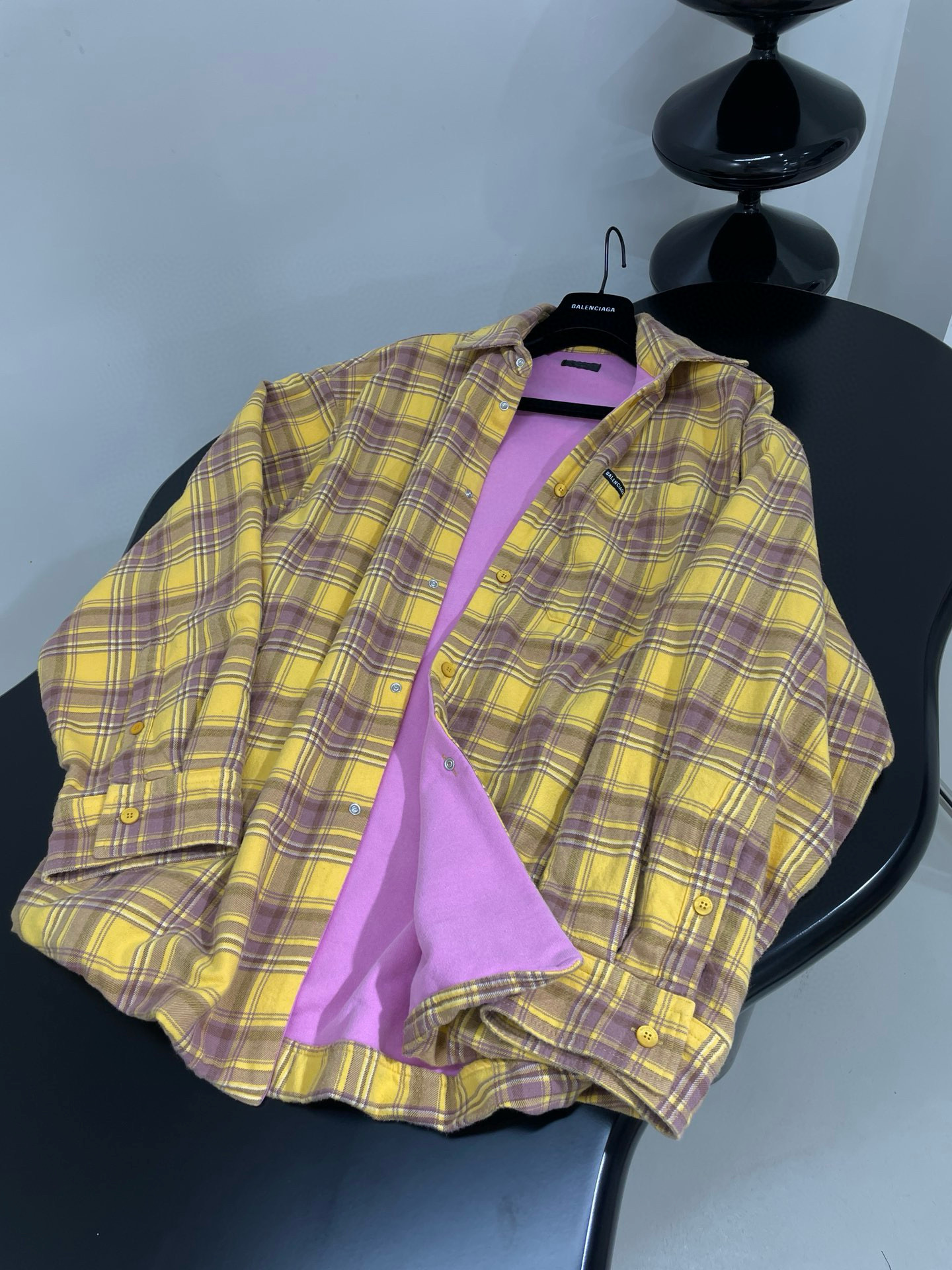 NIGO Balenciaga Men's Autumn Lined Long Sleeve Shirt Oversized In Yellow Cotton Check Flannel Jacket #nigo97615