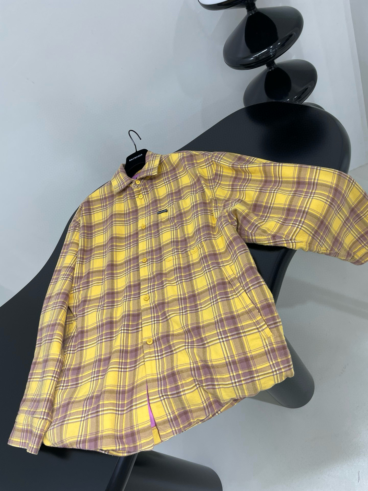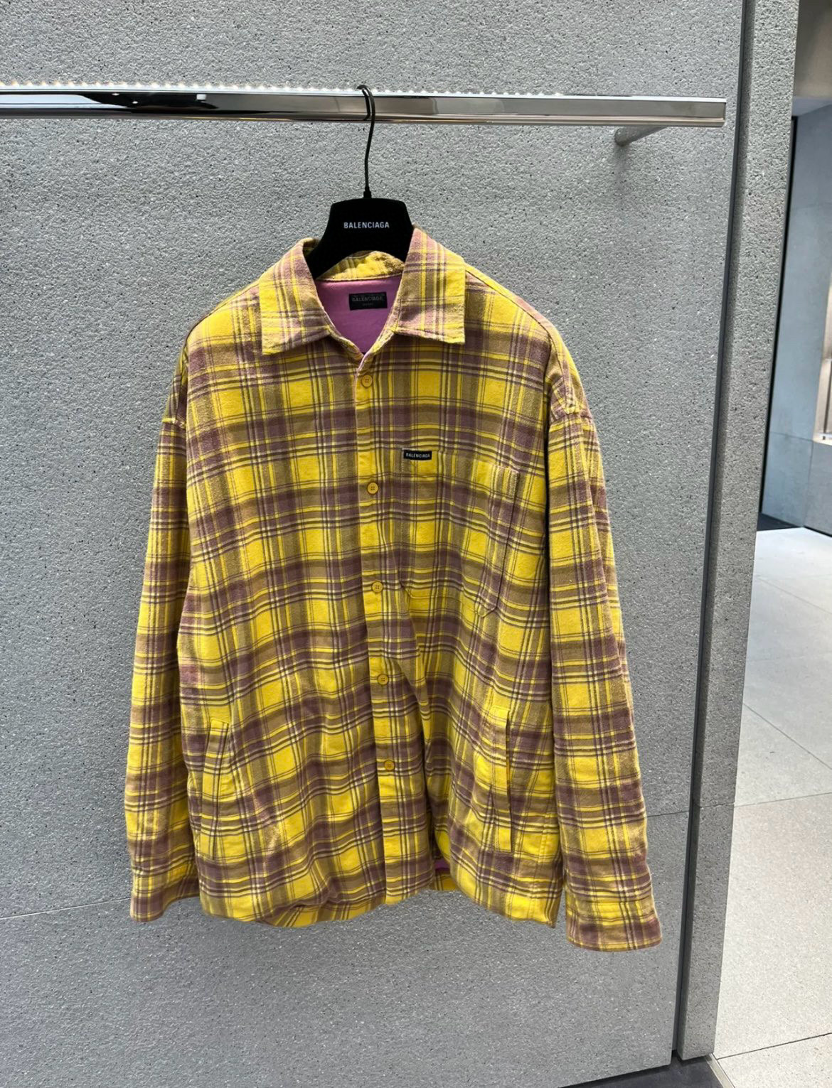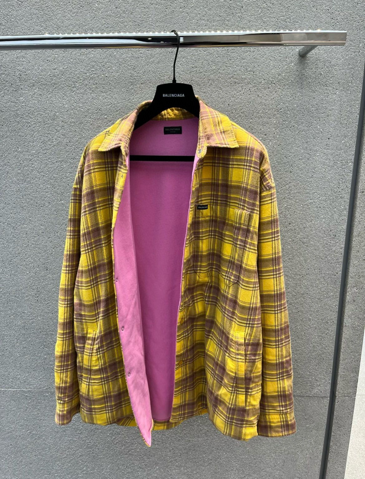 NIGO Balenciaga Men's Autumn Lined Long Sleeve Shirt Oversized In Yellow Cotton Check Flannel Jacket #nigo97615