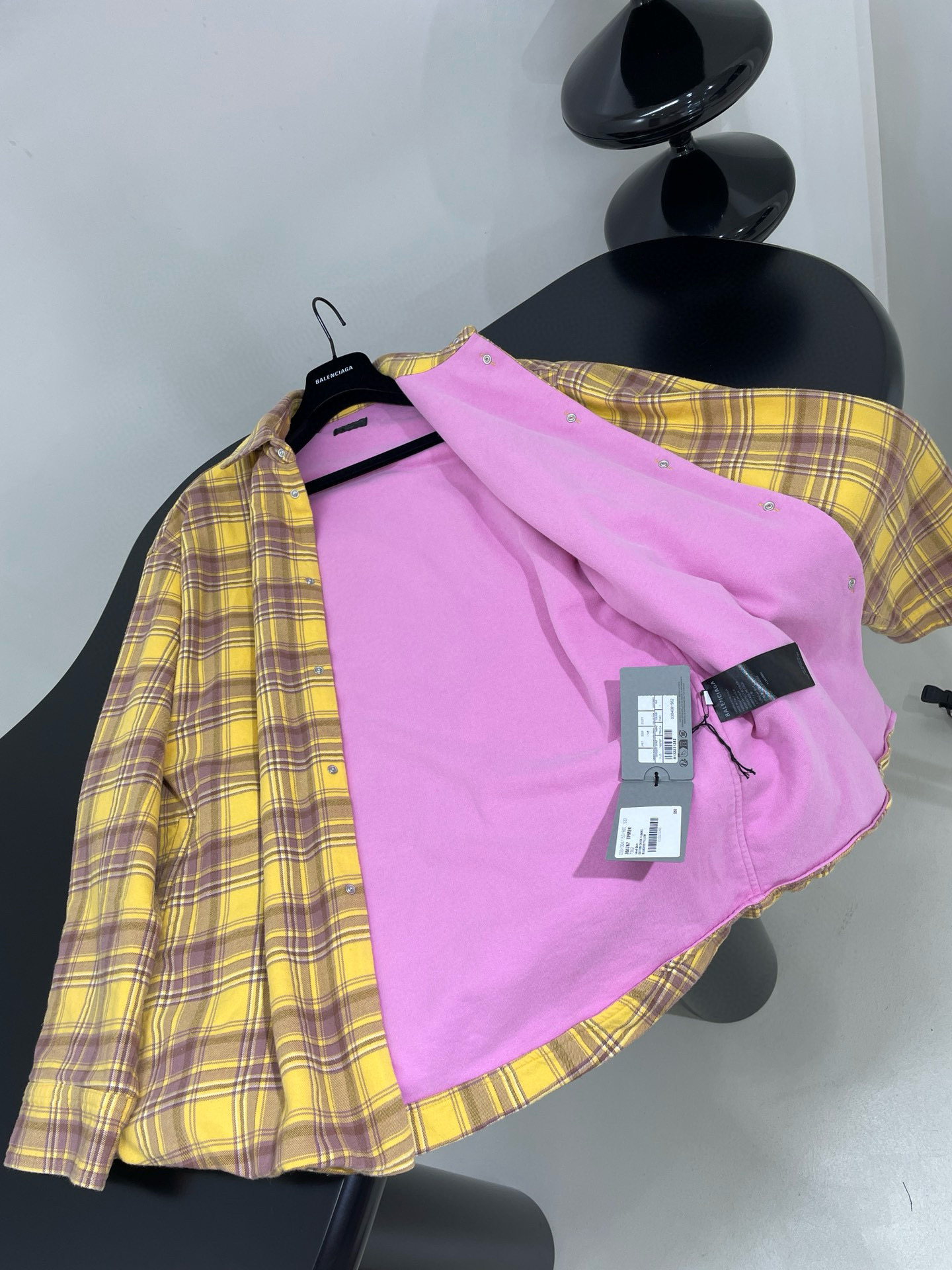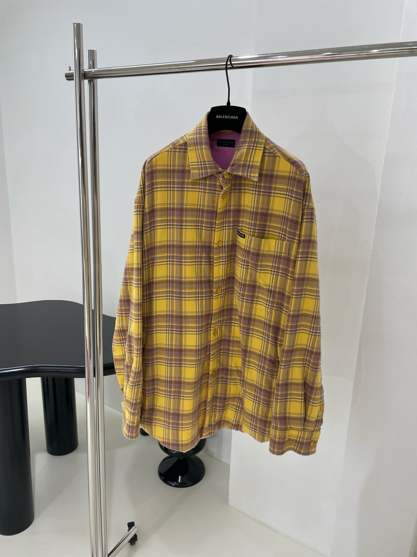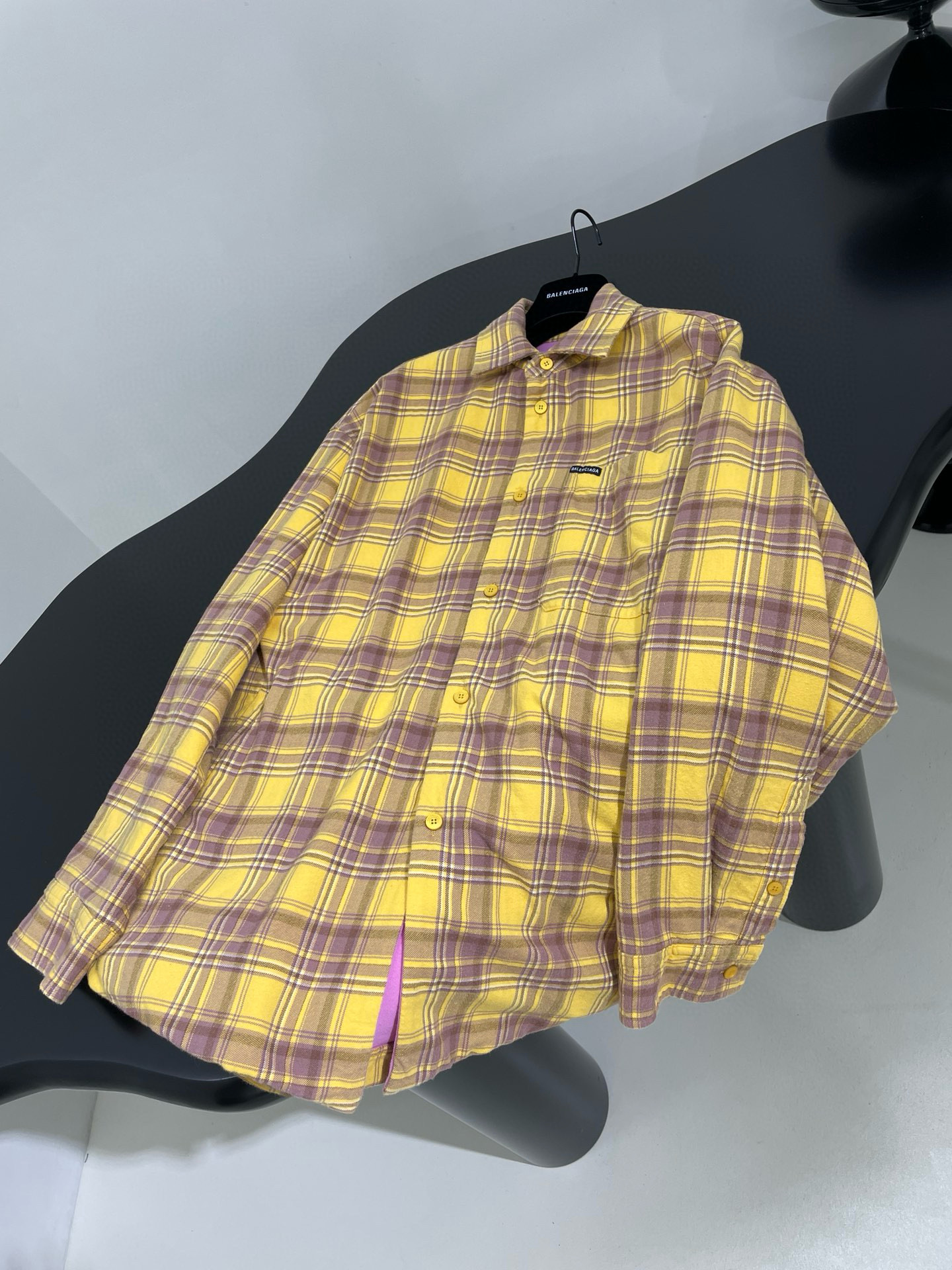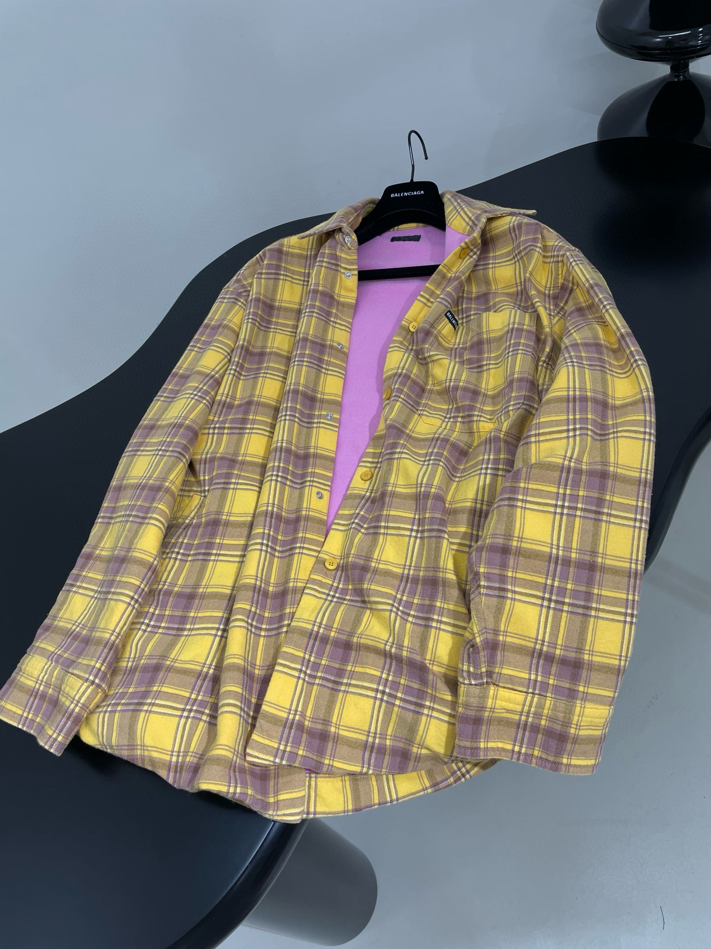 NIGO Balenciaga Men's Autumn Lined Long Sleeve Shirt Oversized In Yellow Cotton Check Flannel Jacket #nigo97615