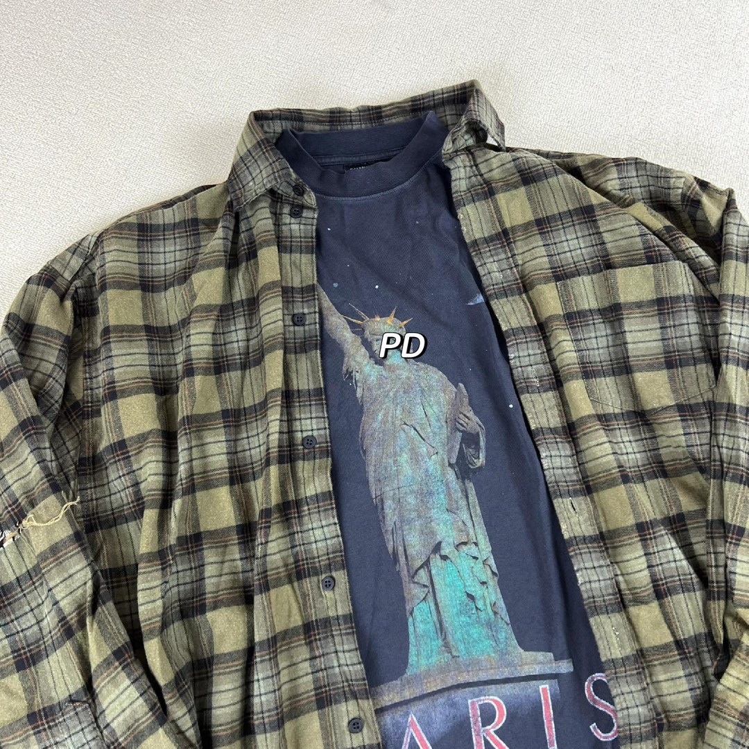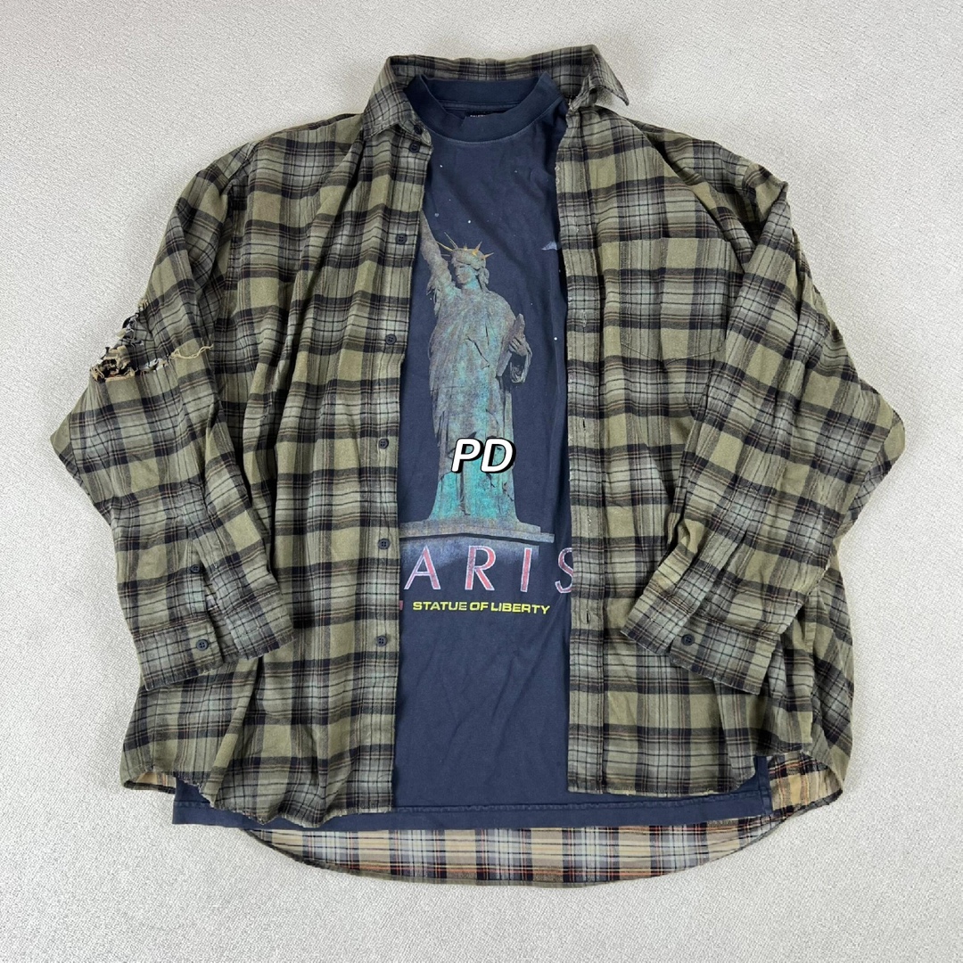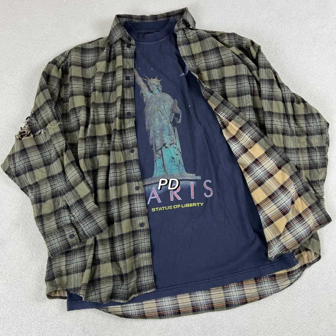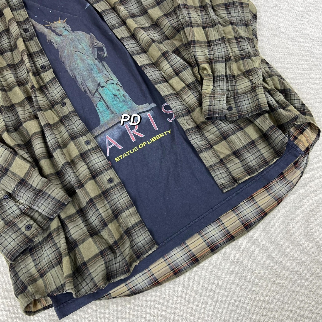 NIGO Balenciaga Men's Spring And Autumn Checkered Lapel Aged Cotton PARIS LIBERTY Loose Long Sleeve Solid Layered Shirt Ngvp #nigo9286