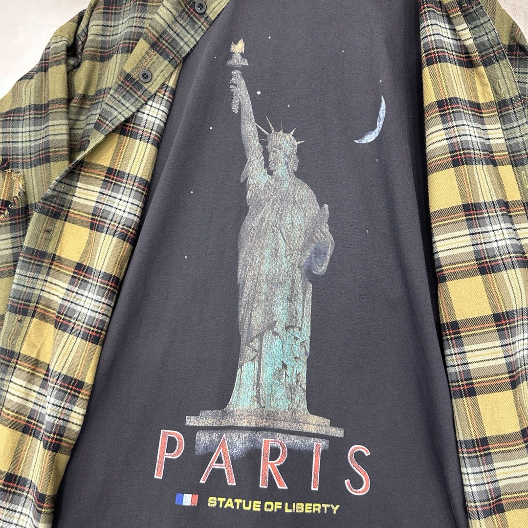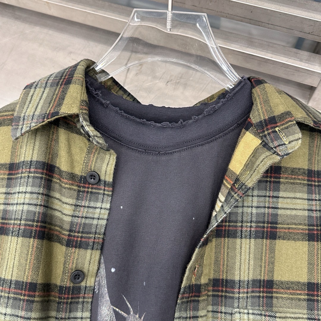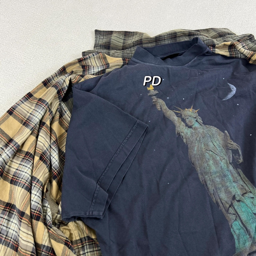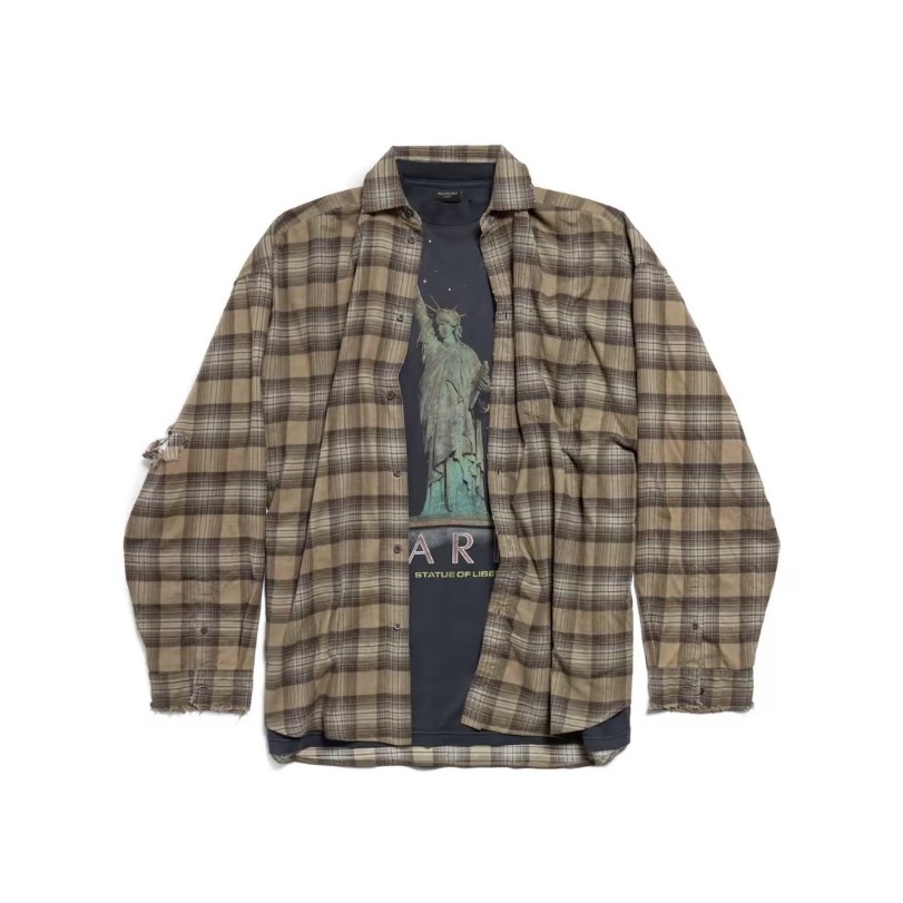 NIGO Balenciaga Men's Spring And Autumn Checkered Lapel Aged Cotton PARIS LIBERTY Loose Long Sleeve Solid Layered Shirt Ngvp #nigo9286