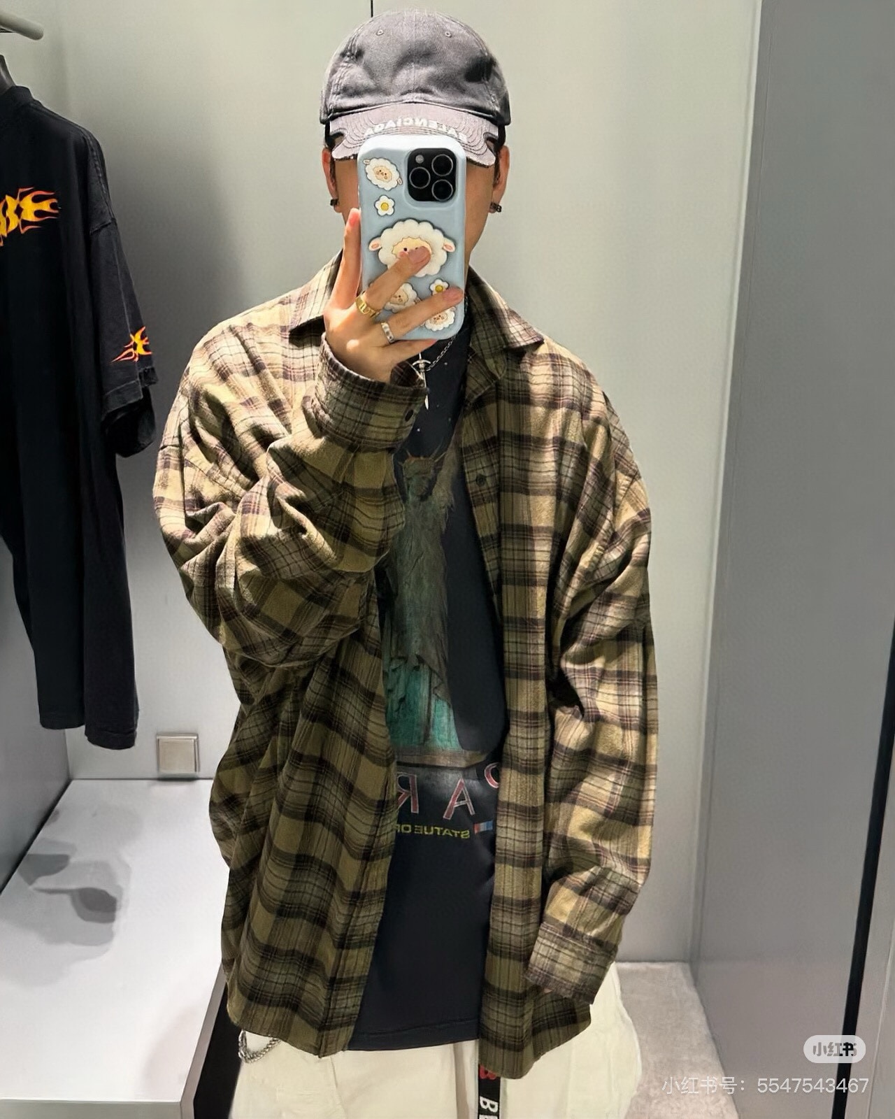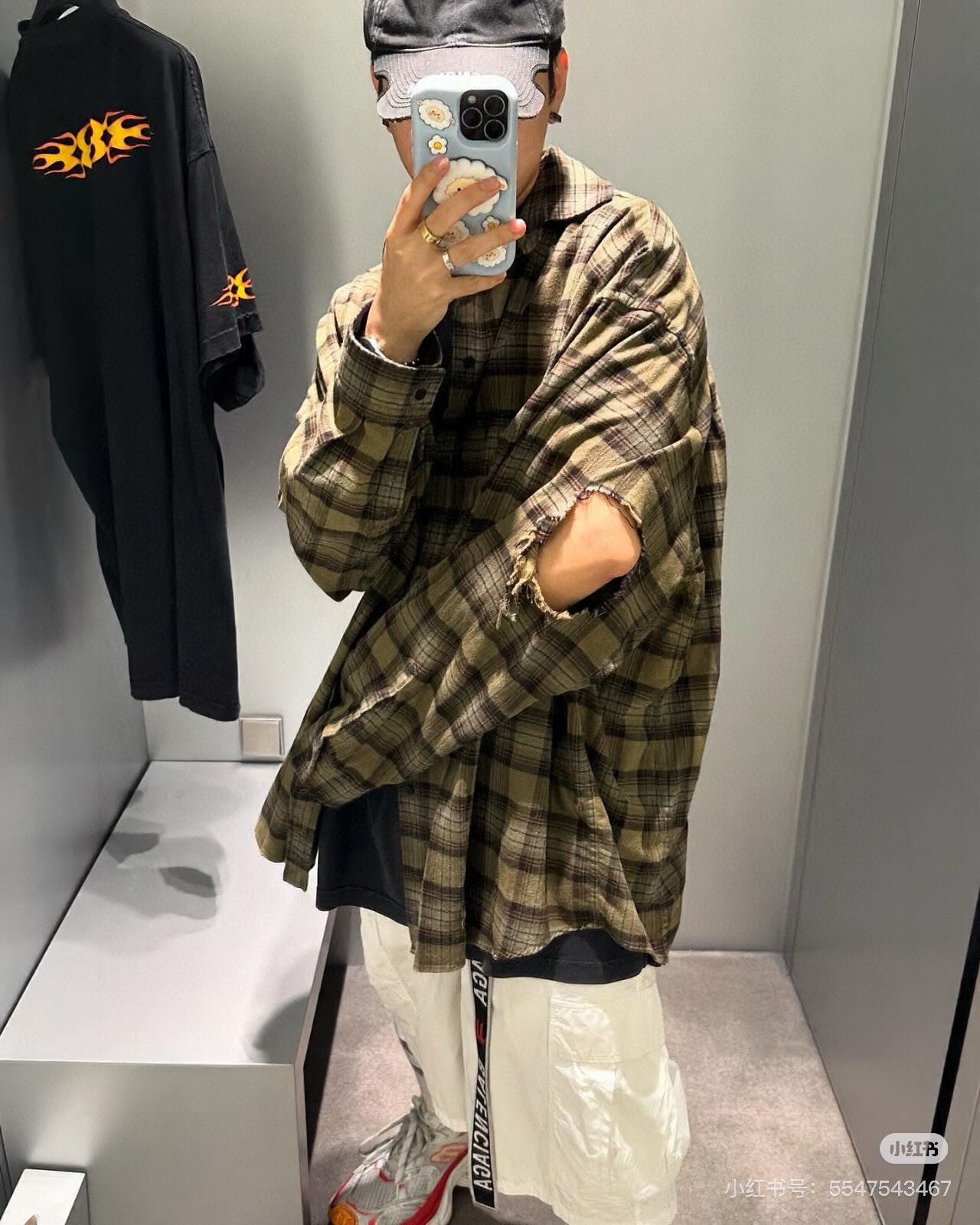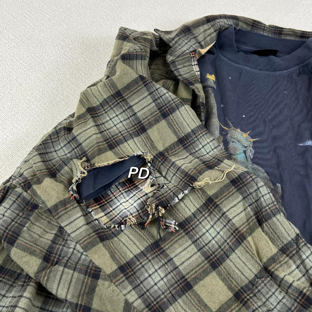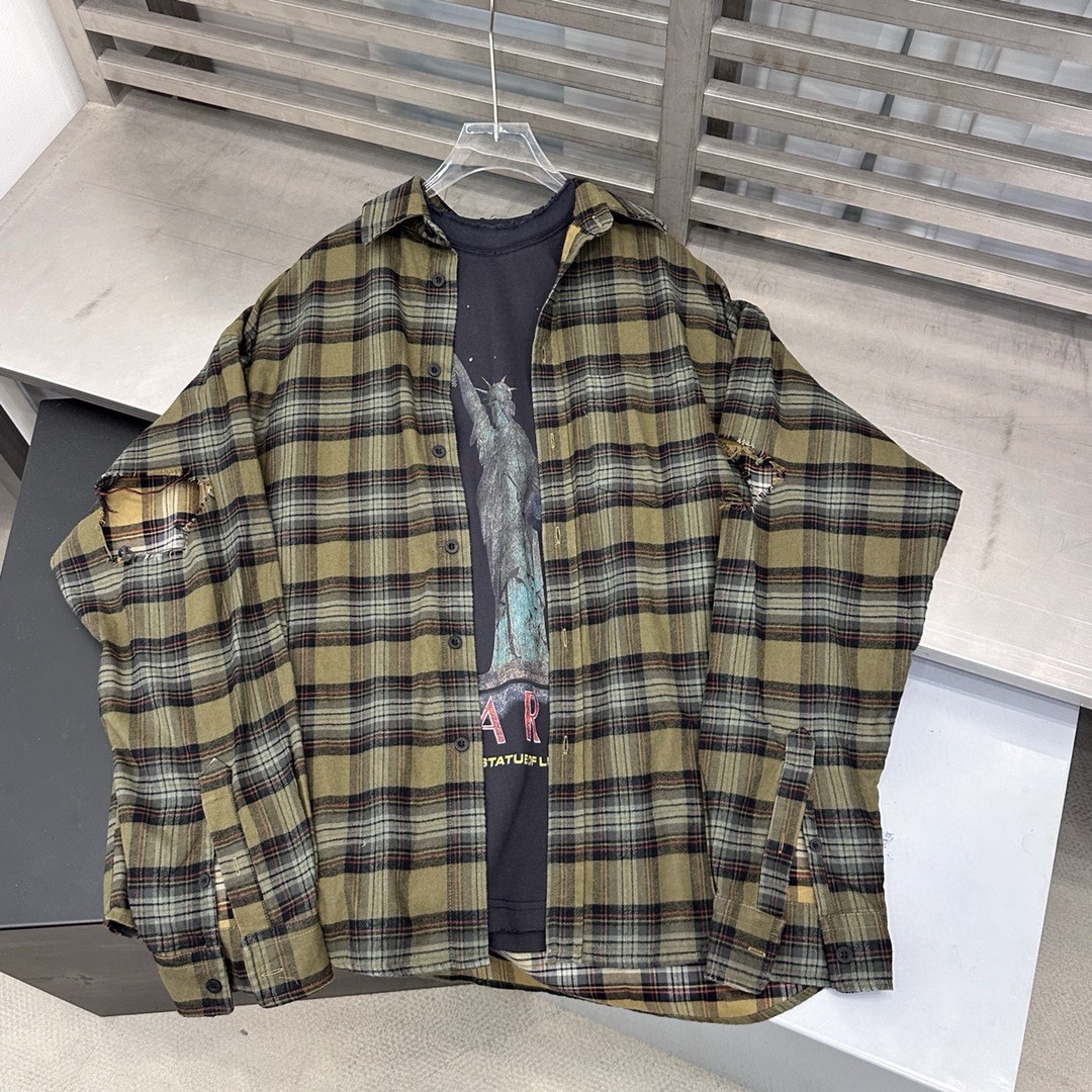 NIGO Balenciaga Men's Spring And Autumn Checkered Lapel Aged Cotton PARIS LIBERTY Loose Long Sleeve Solid Layered Shirt Ngvp #nigo9286