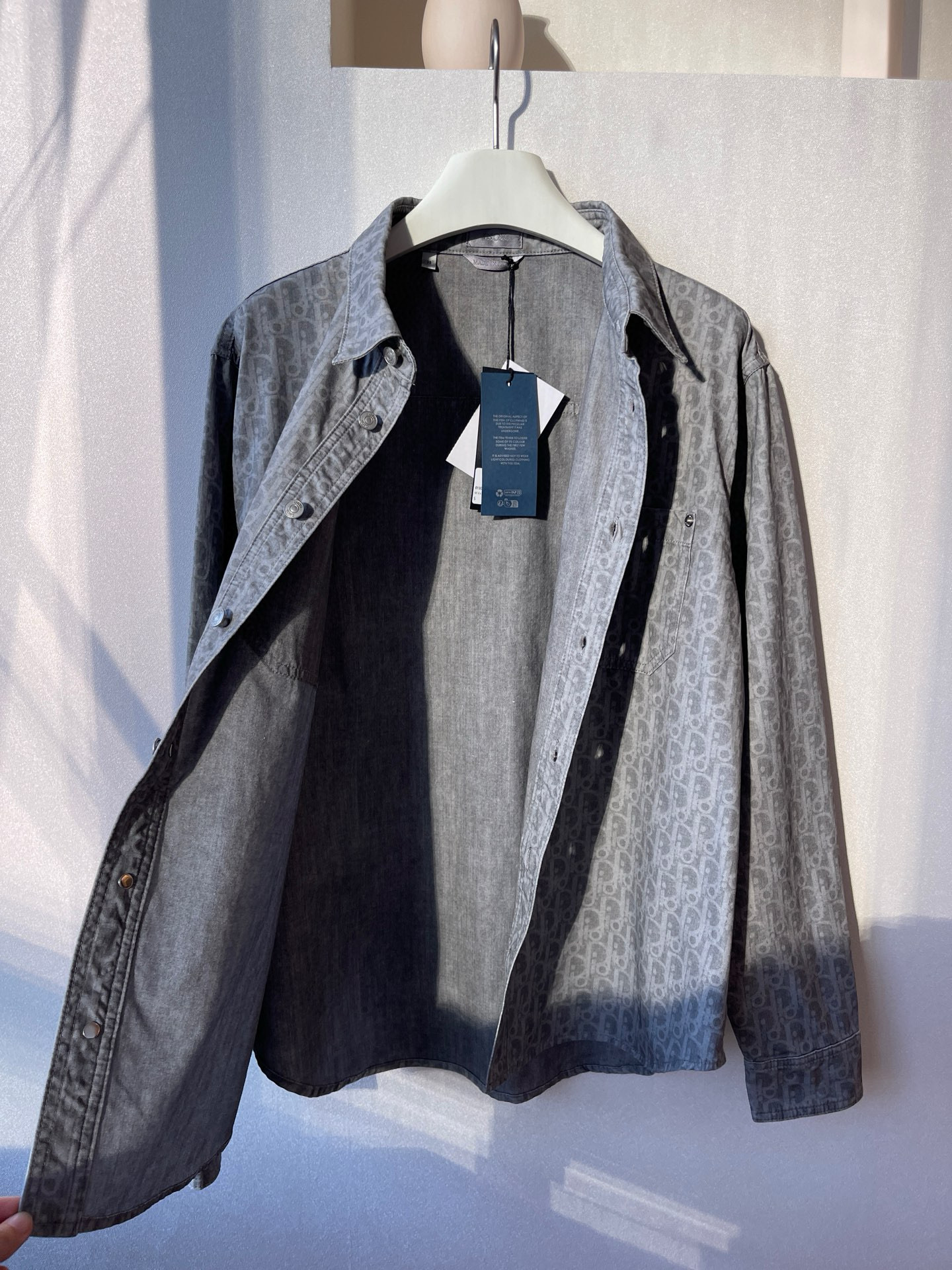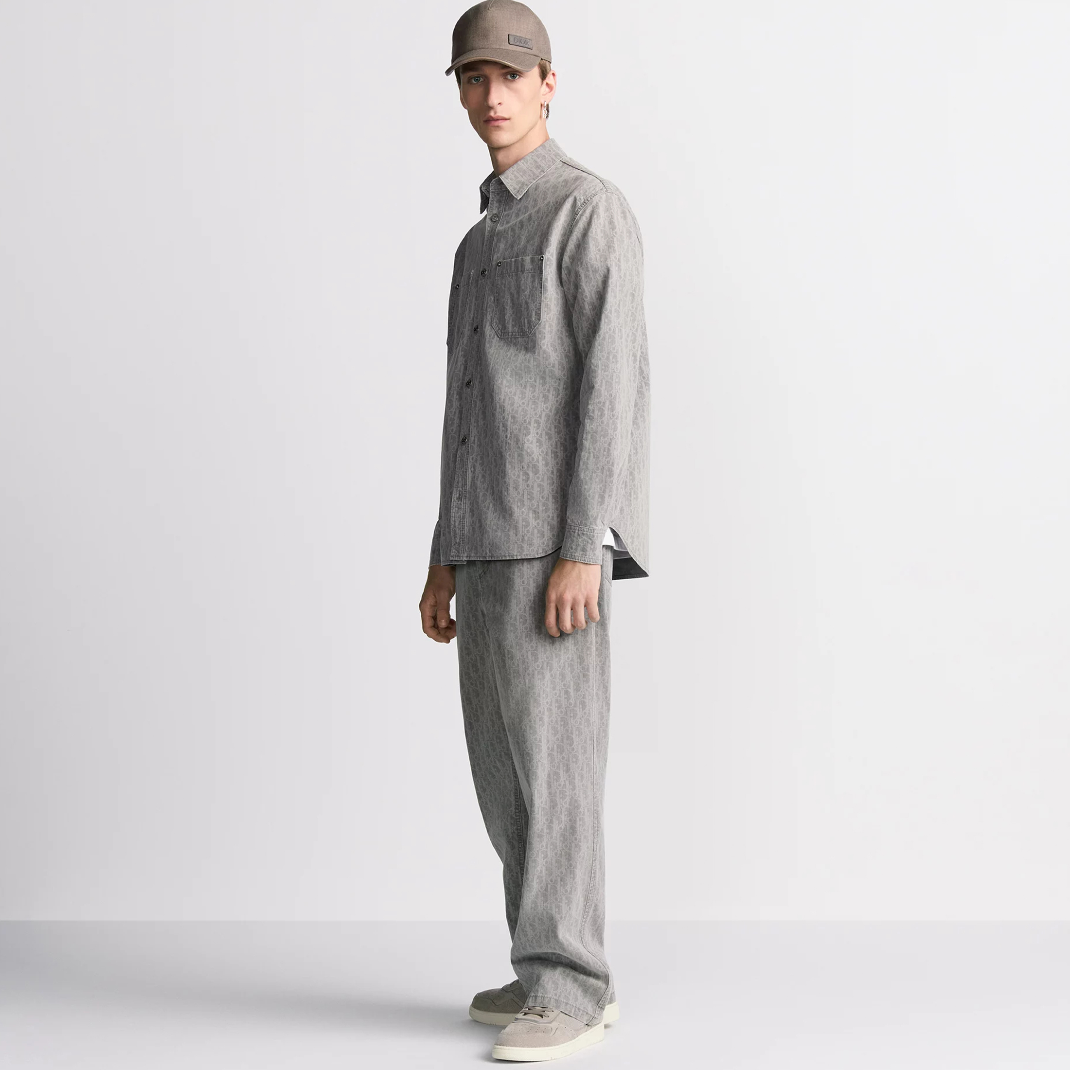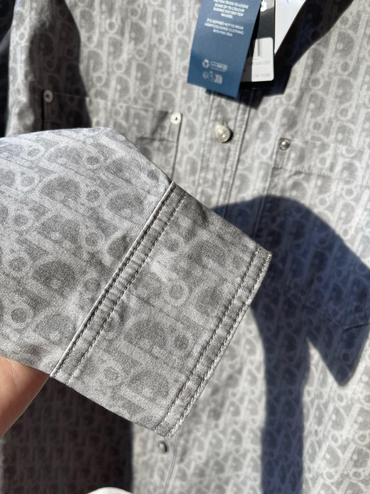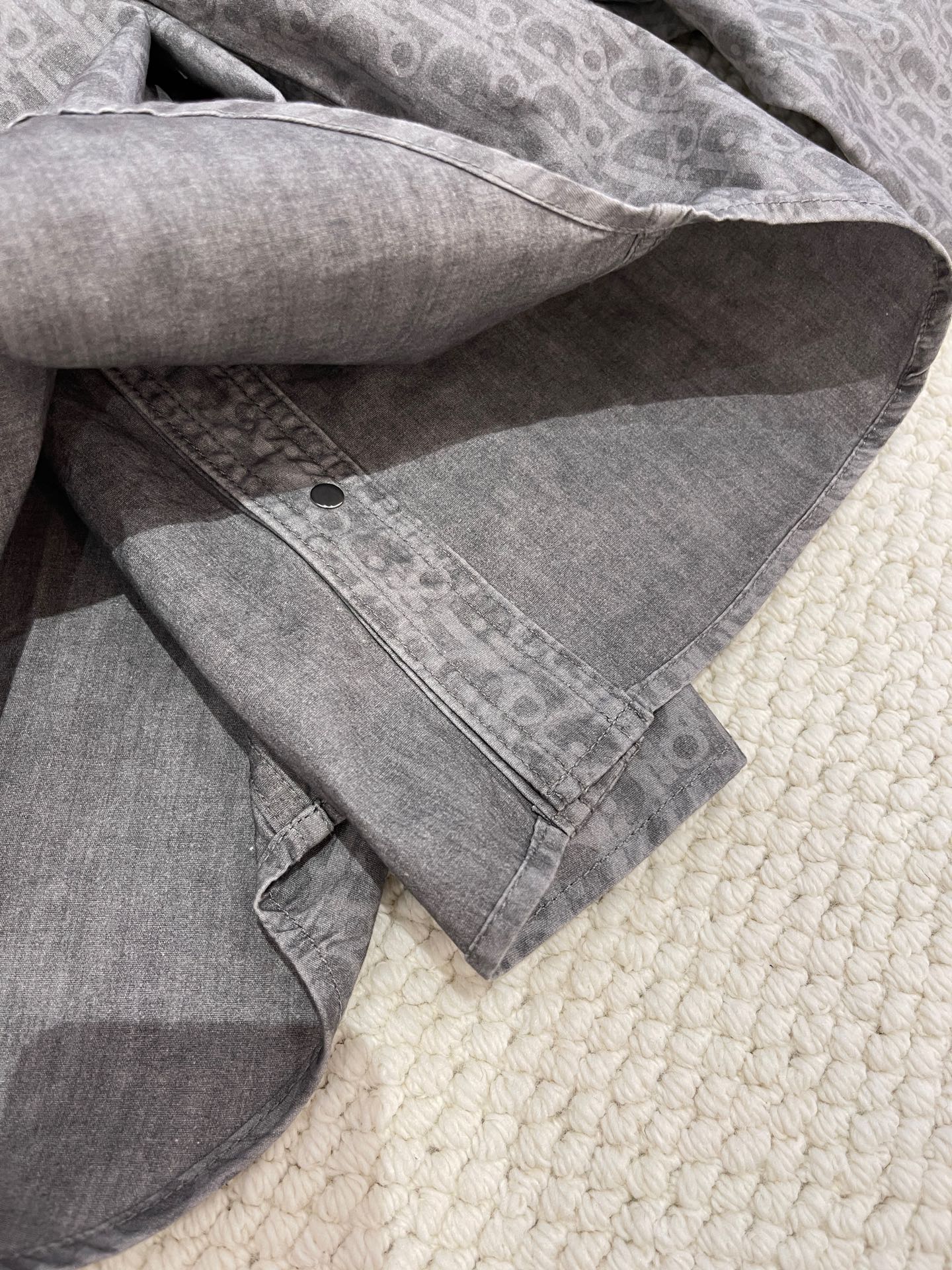 NIGO DIOR Men's Grey Cotton Denim Oblique Printed Shirt Blouse Spring Autumn Lapel Single Breasted Fashion Casual Jacket Shirt #nigo71845