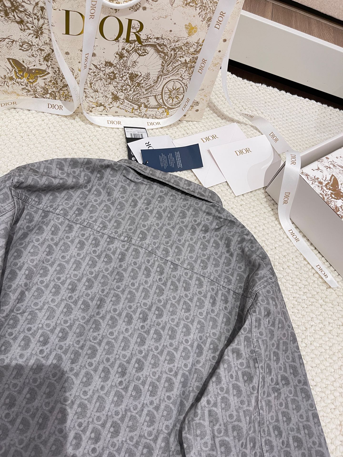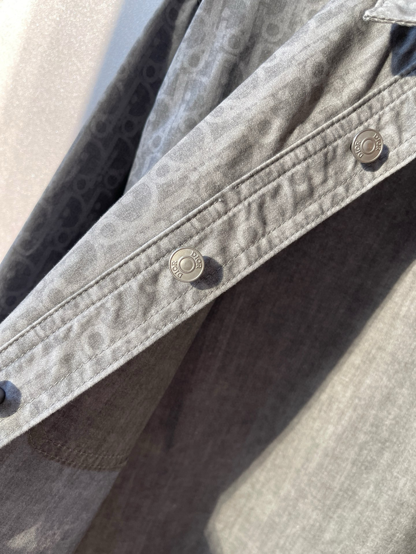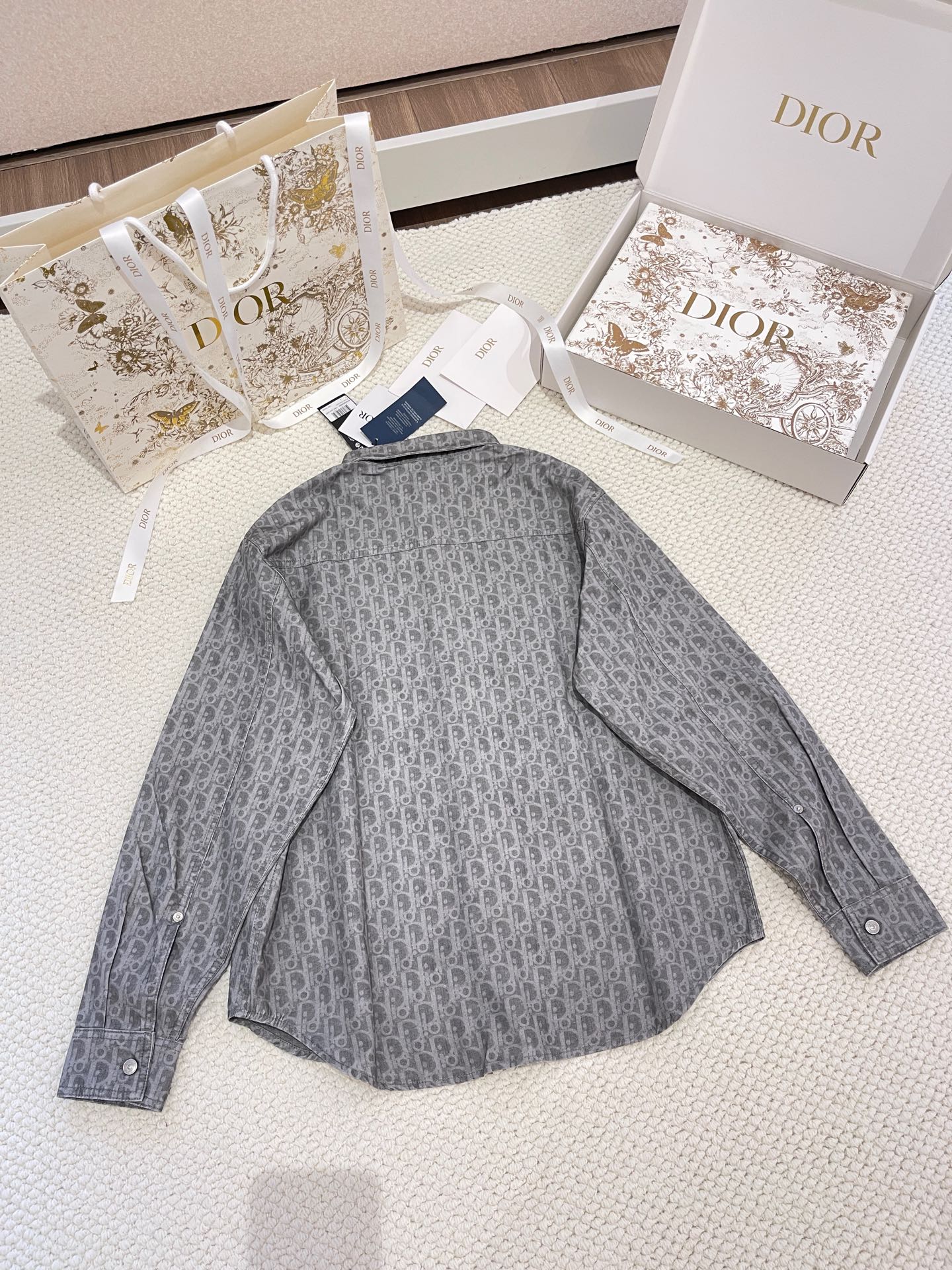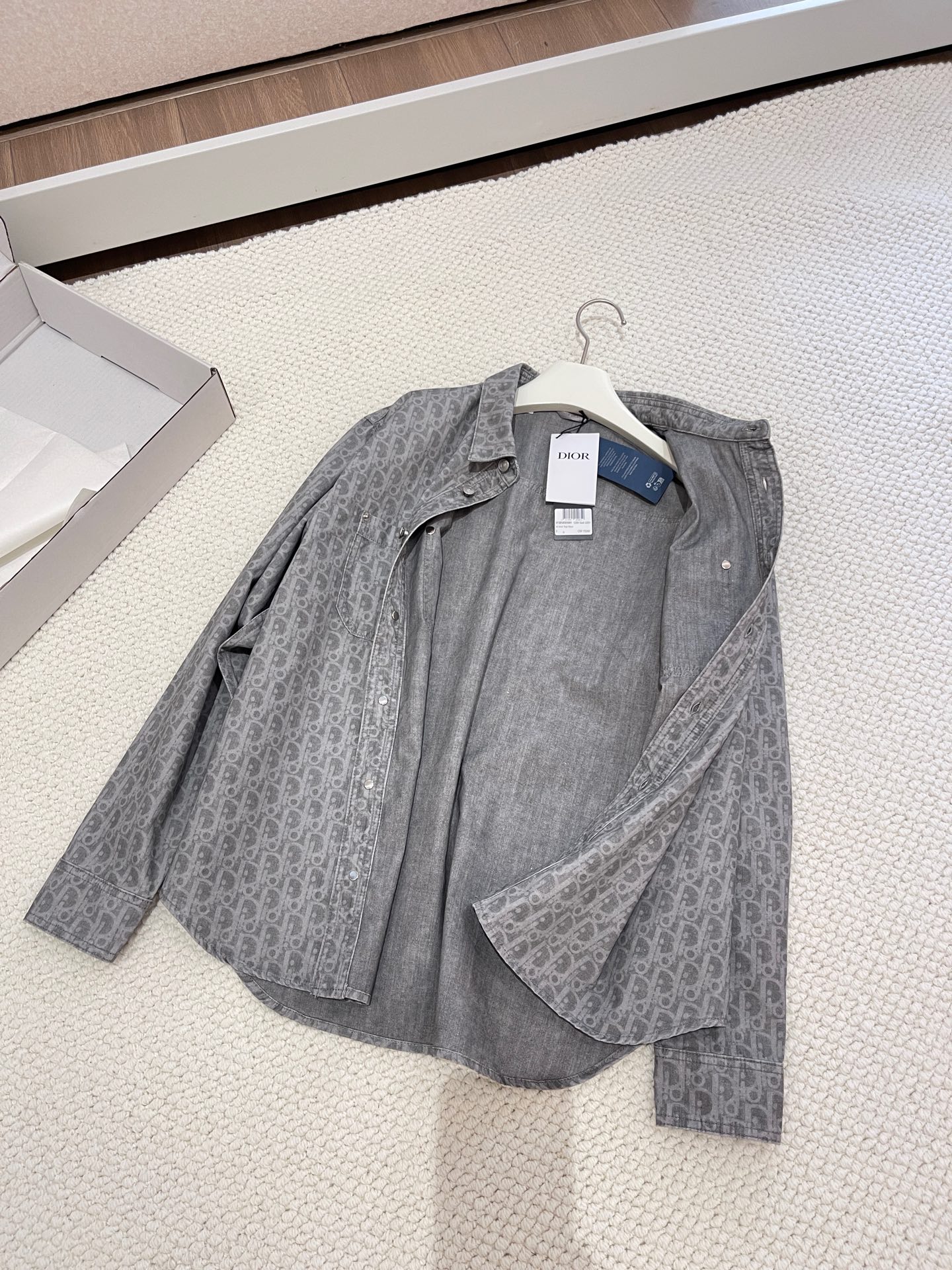 NIGO DIOR Men's Grey Cotton Denim Oblique Printed Shirt Blouse Spring Autumn Lapel Single Breasted Fashion Casual Jacket Shirt #nigo71845