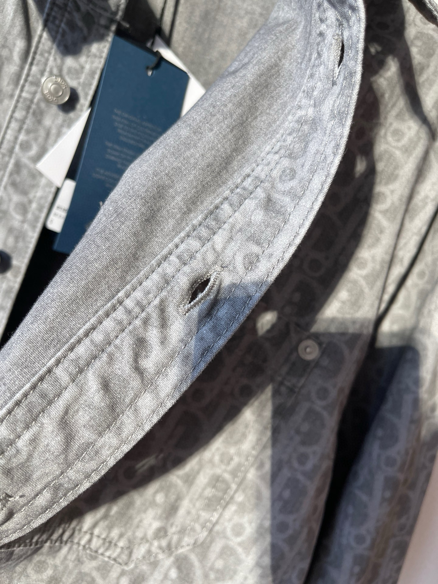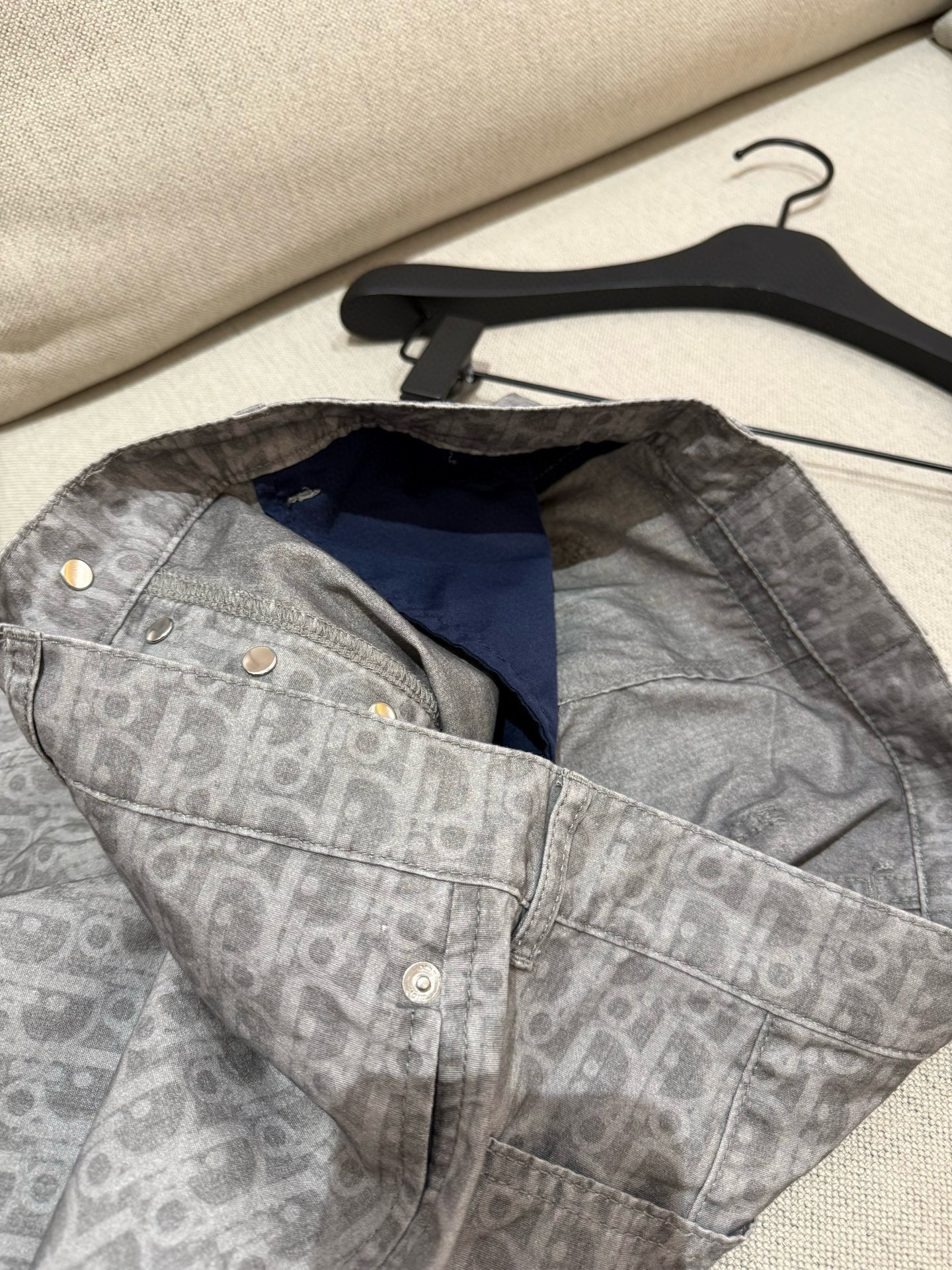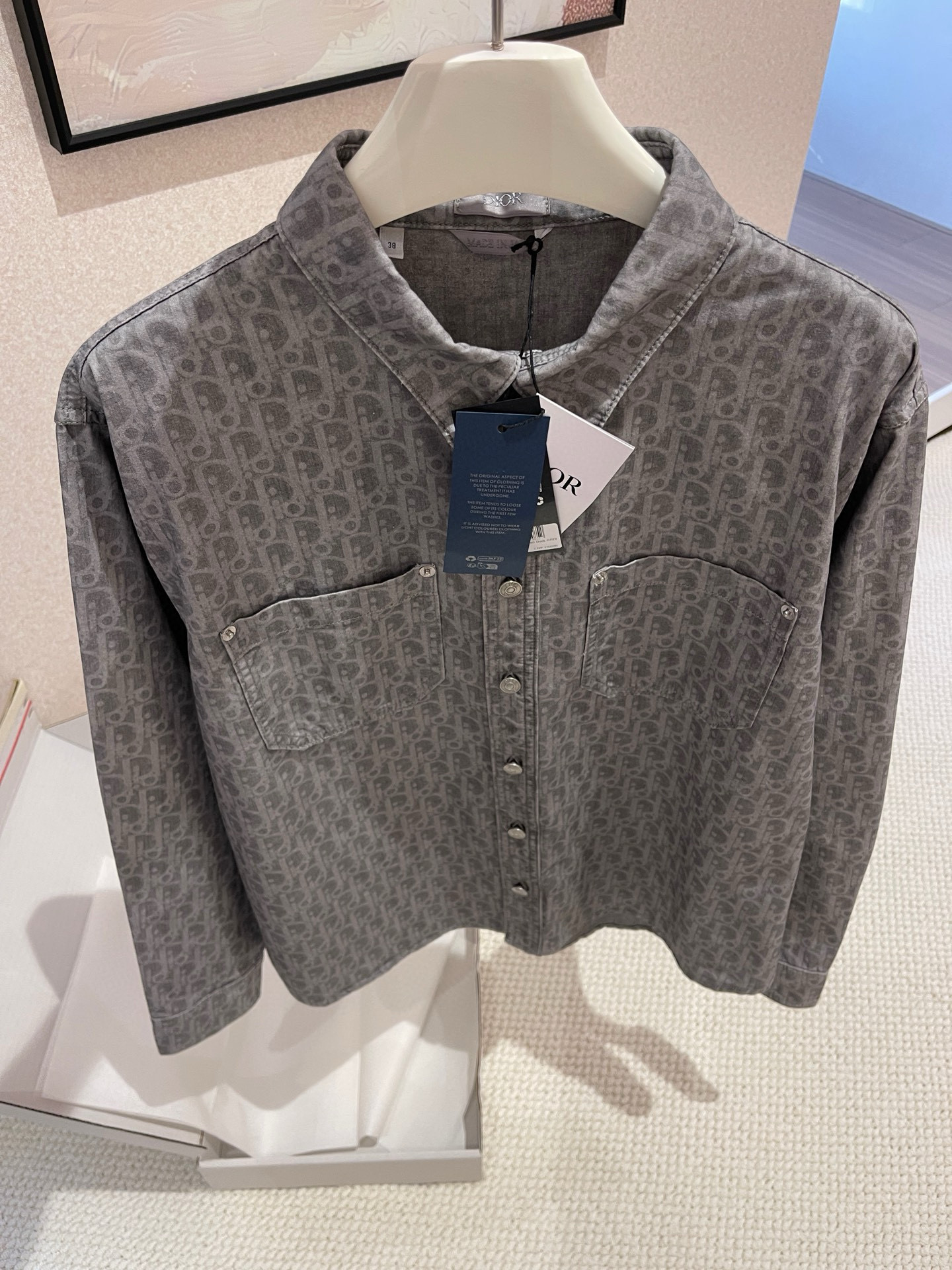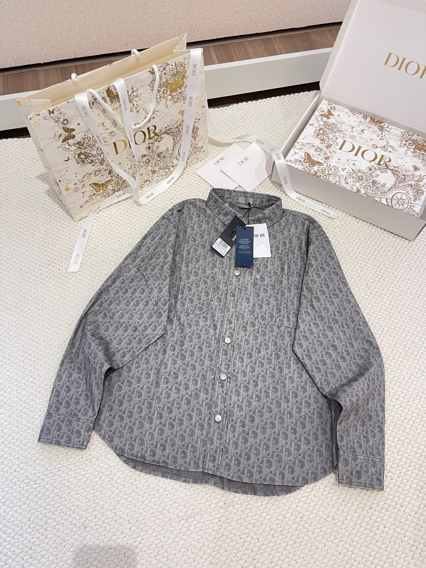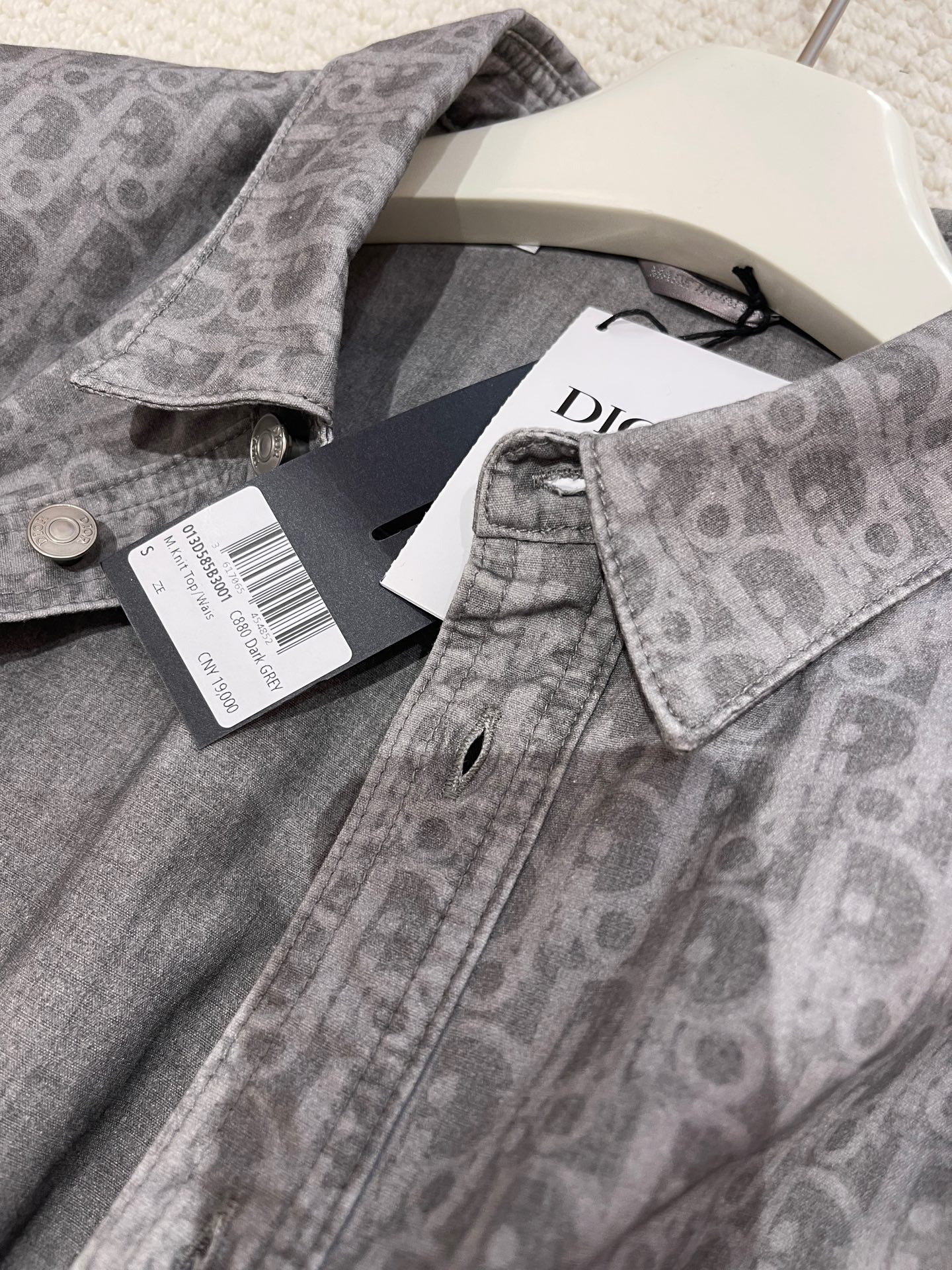 NIGO DIOR Men's Grey Cotton Denim Oblique Printed Shirt Blouse Spring Autumn Lapel Single Breasted Fashion Casual Jacket Shirt #nigo71845