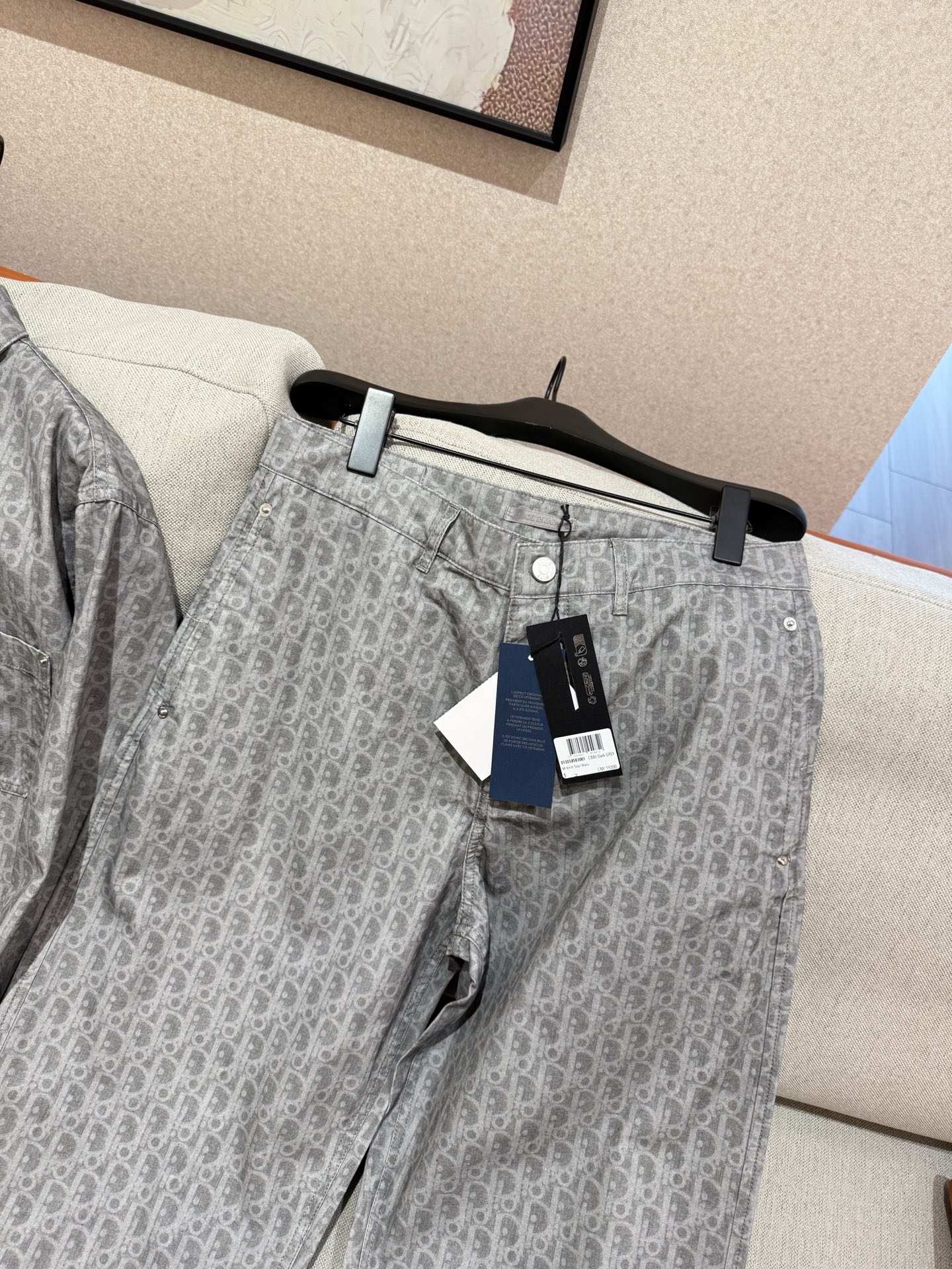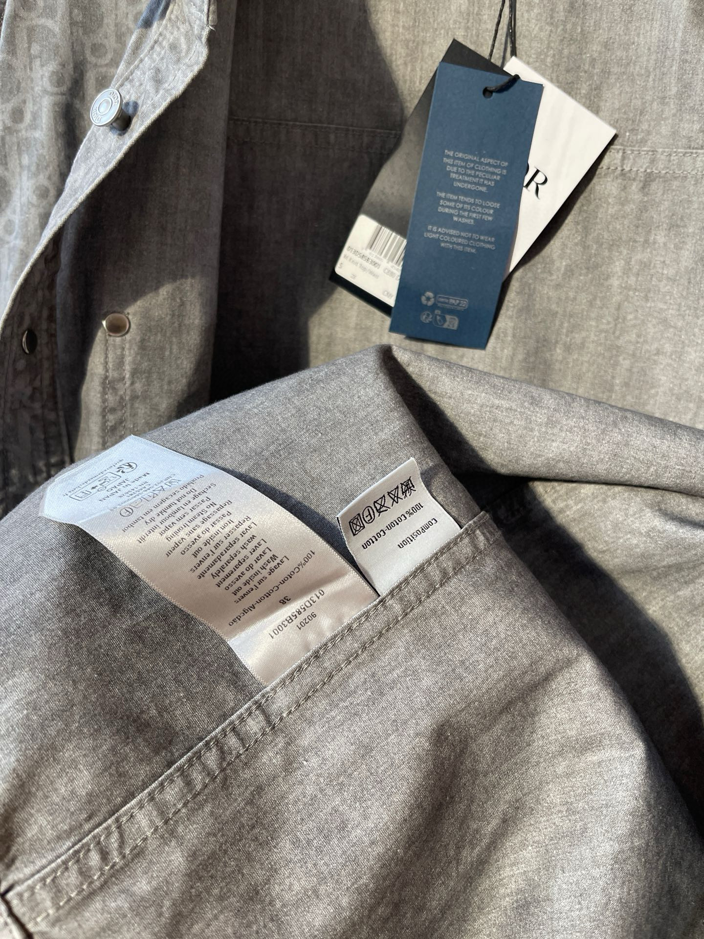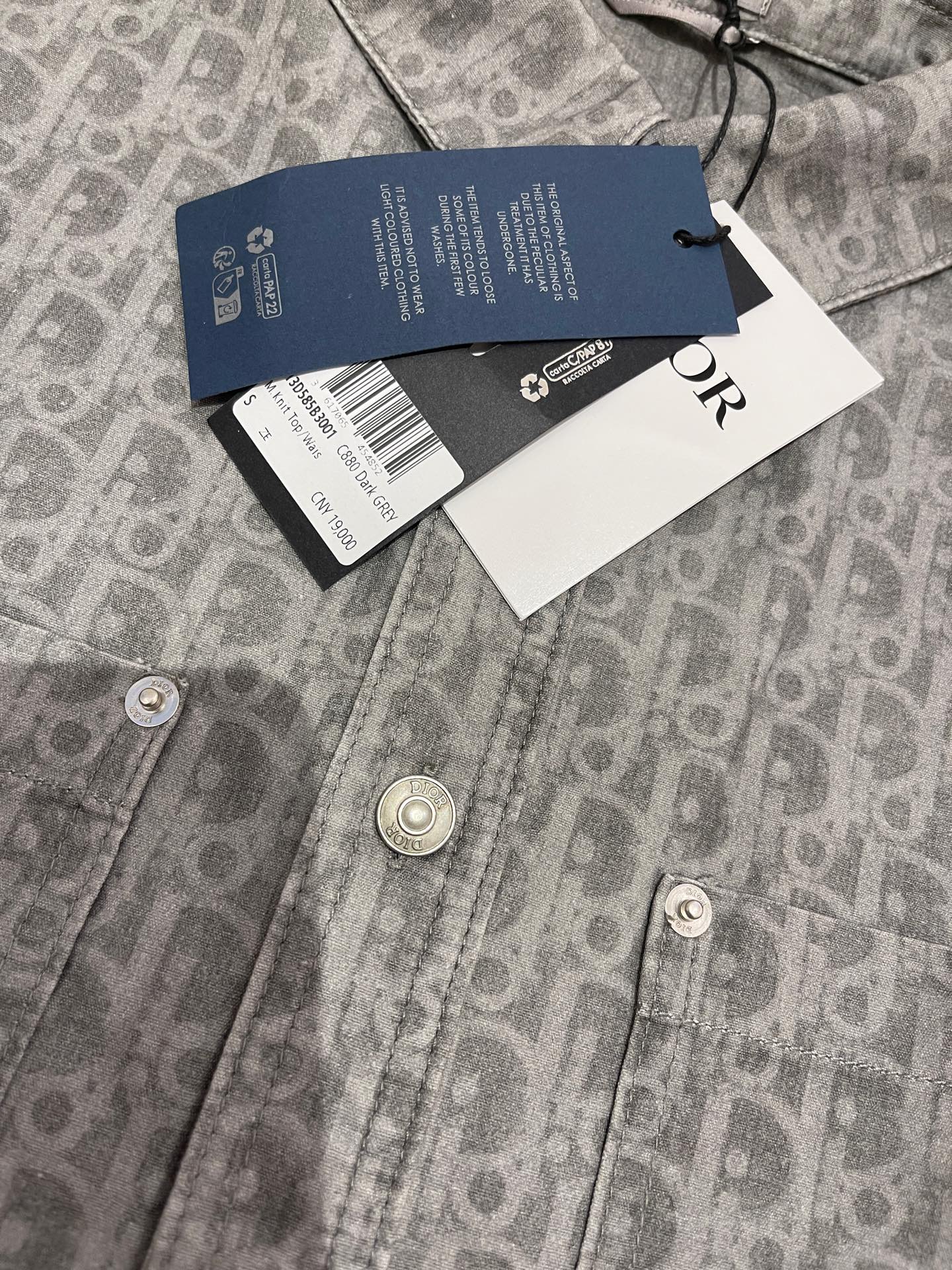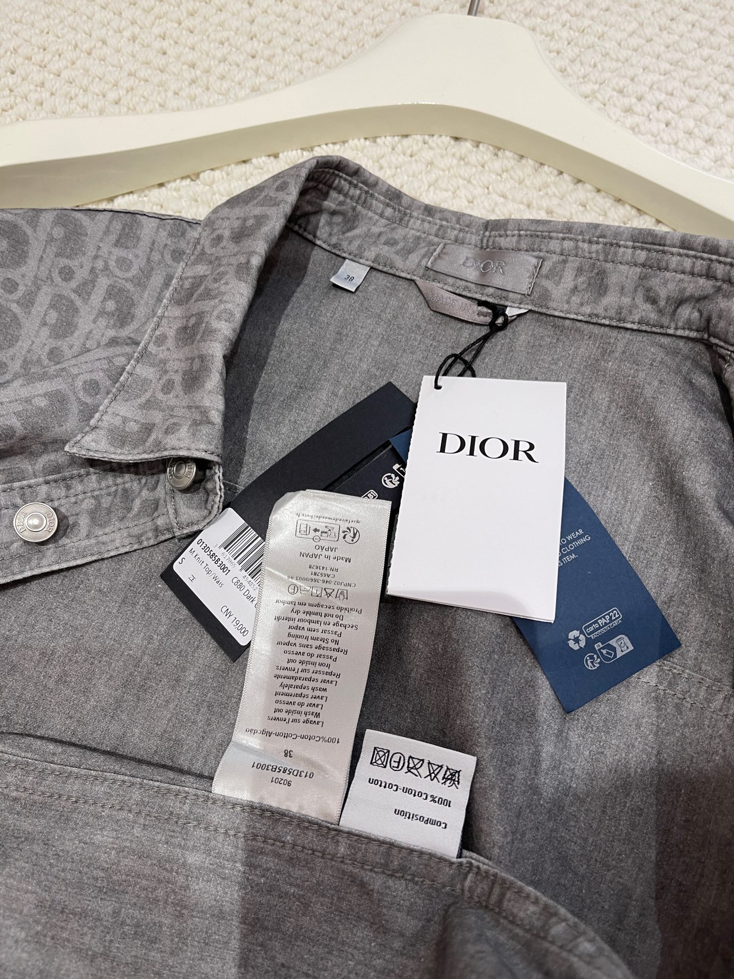 NIGO DIOR Men's Grey Cotton Denim Oblique Printed Shirt Blouse Spring Autumn Lapel Single Breasted Fashion Casual Jacket Shirt #nigo71845