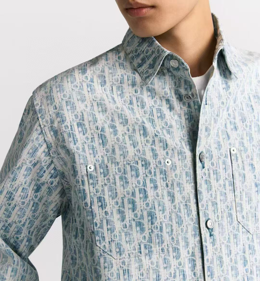 NIGO Dior Men's Spring/Autumn Alphabet Print Single-Breasted Long-Sleeved Denim Shirt #nigo77785
