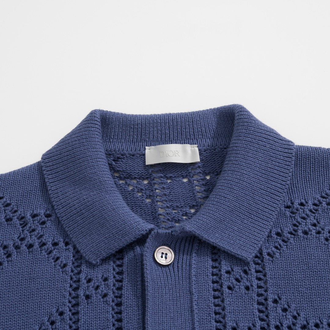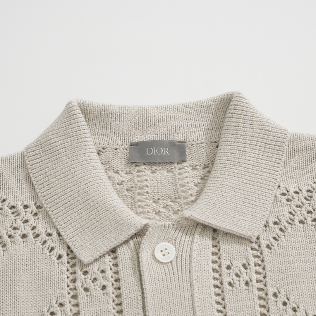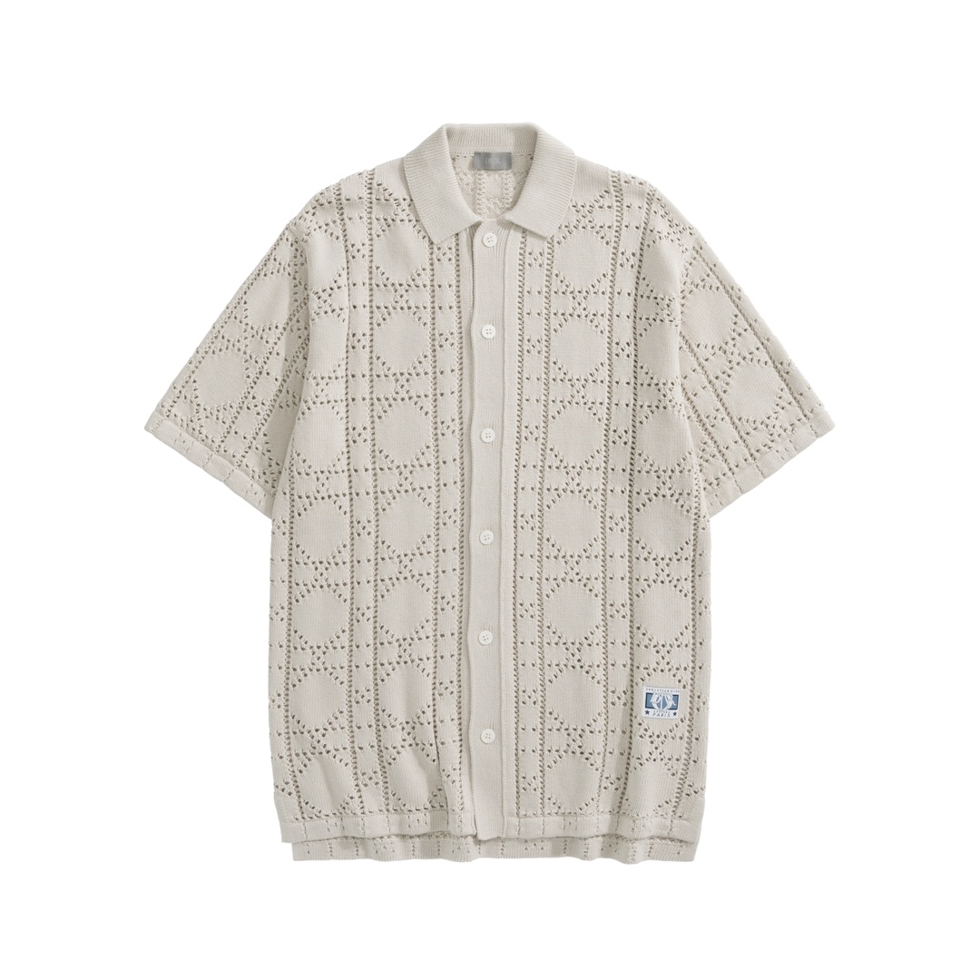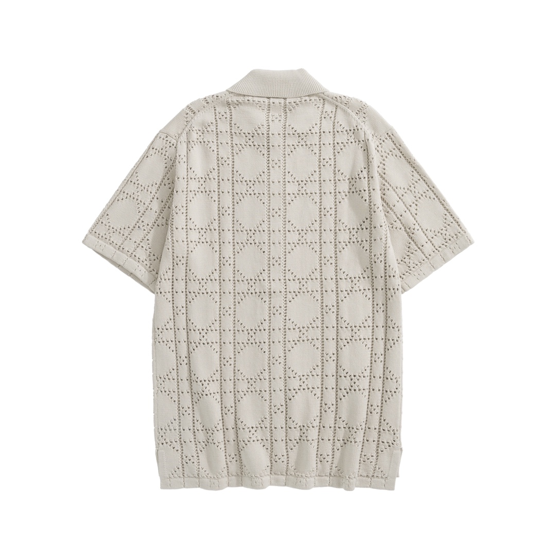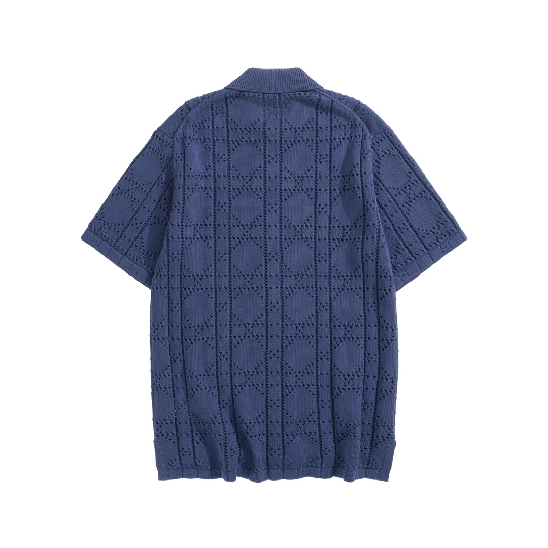 NIGO Dior Men's Summer Solid Colour Logo Letter Applique Hollow Out Lapel Single Breasted Knitted Short Sleeve Shirt #nigo99534