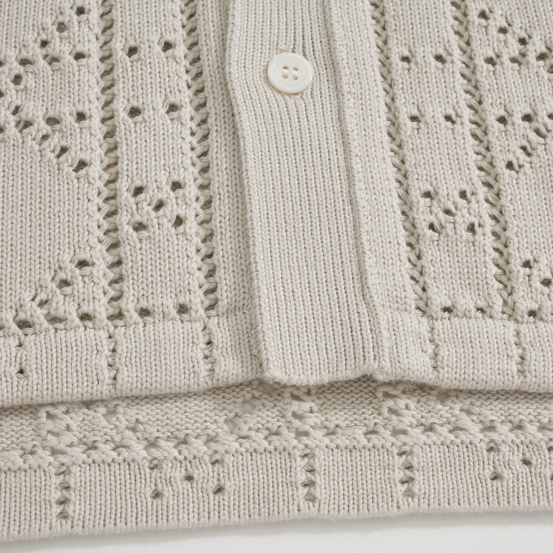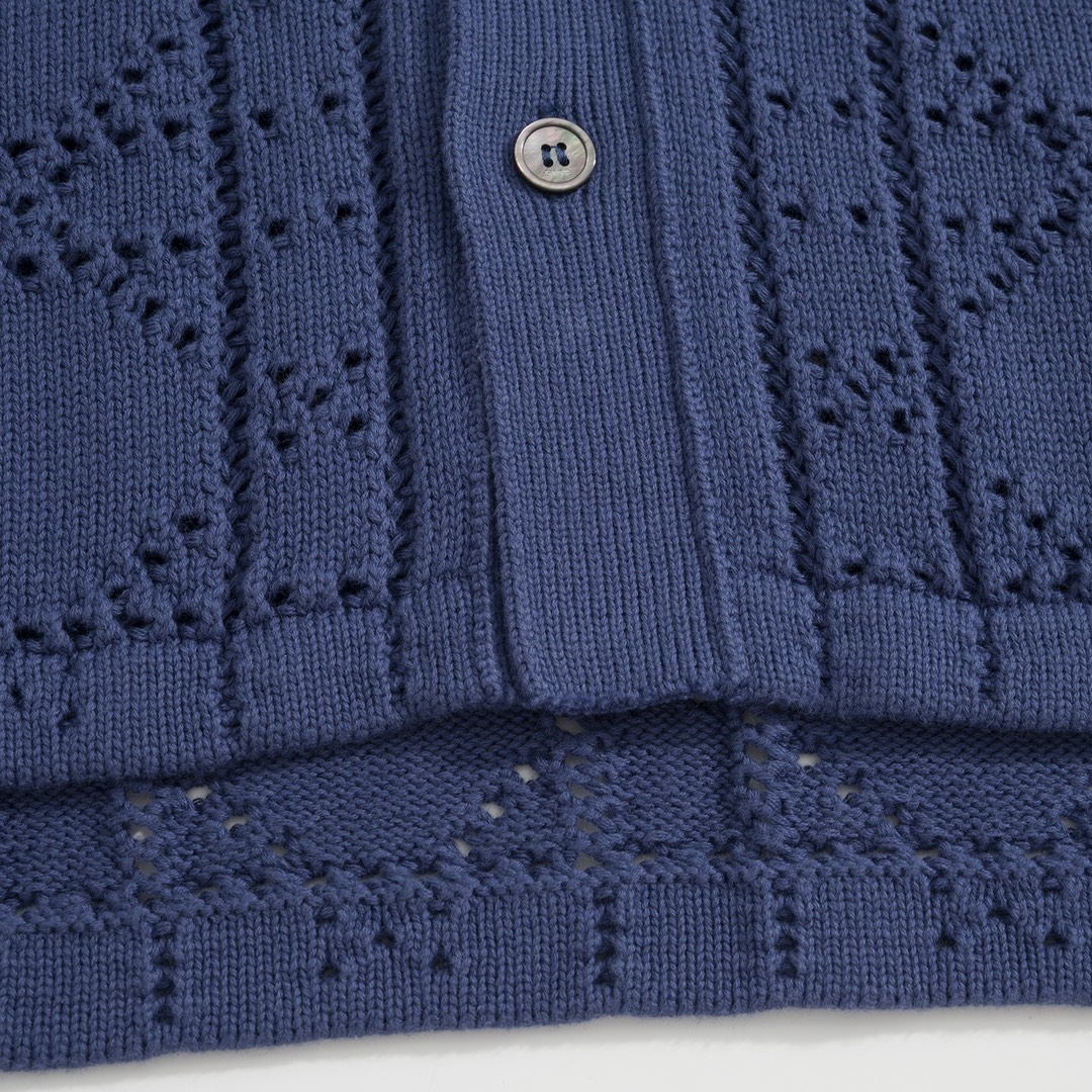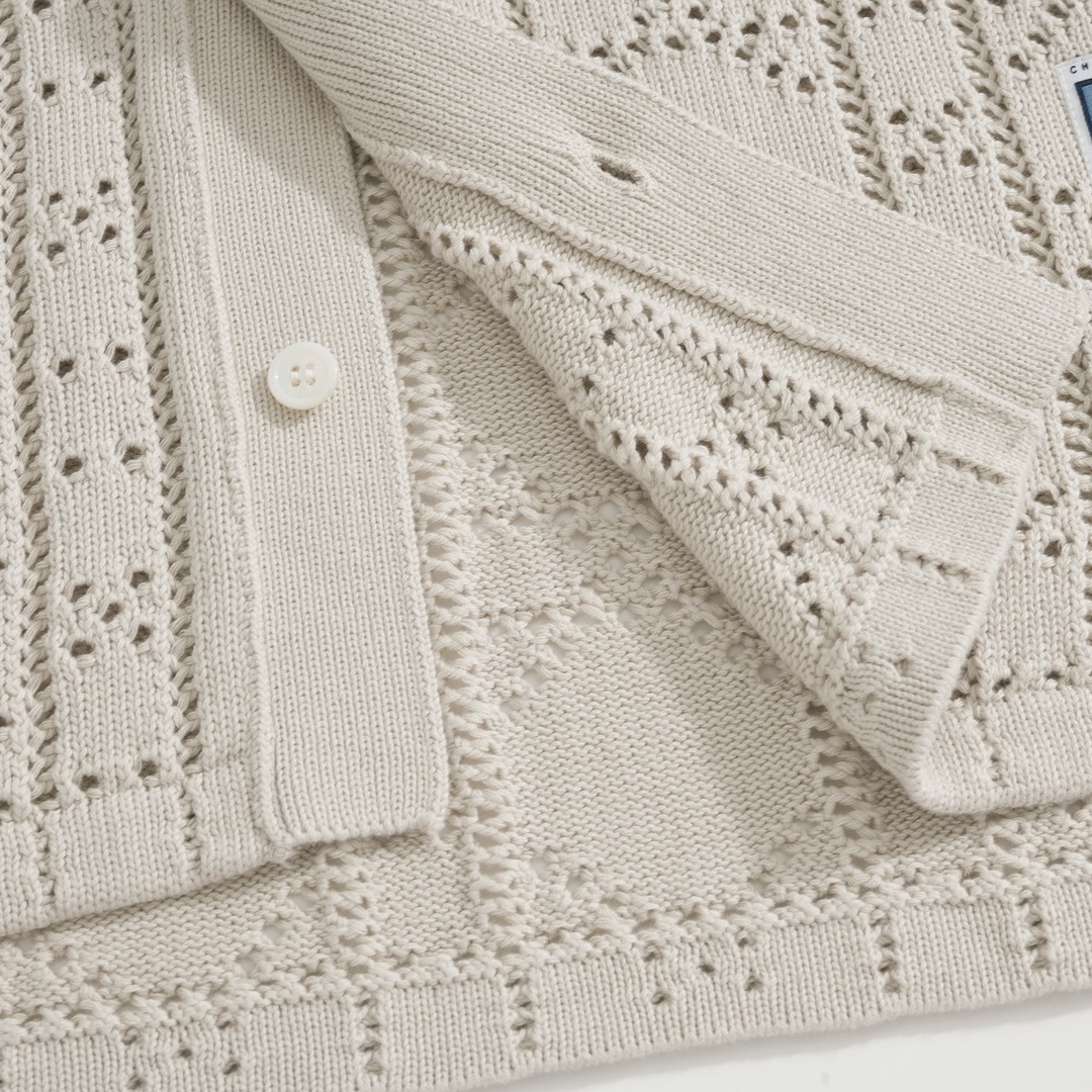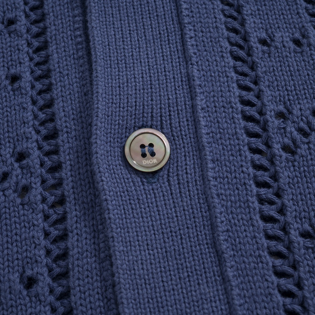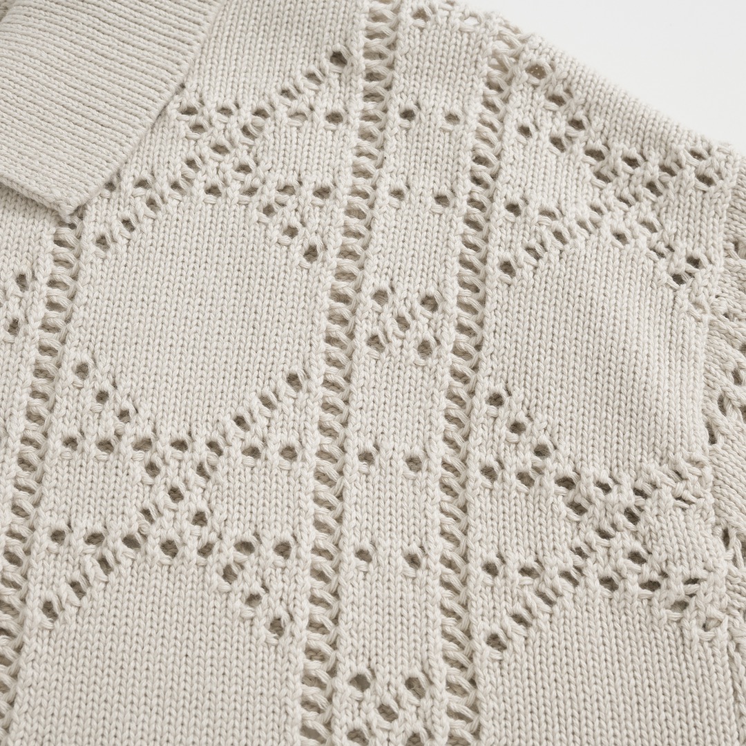 NIGO Dior Men's Summer Solid Colour Logo Letter Applique Hollow Out Lapel Single Breasted Knitted Short Sleeve Shirt #nigo99534