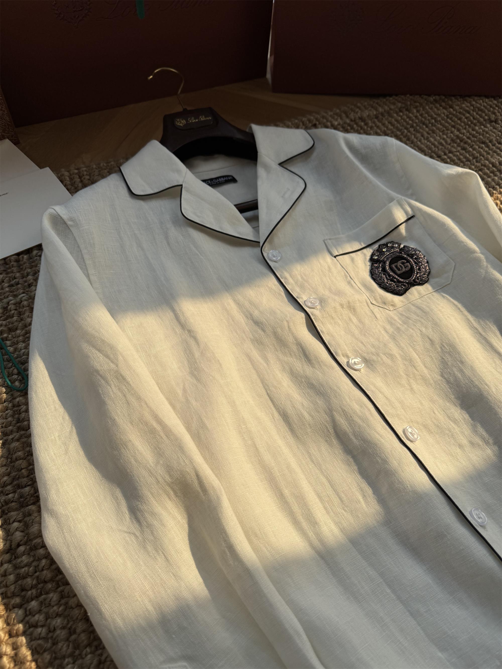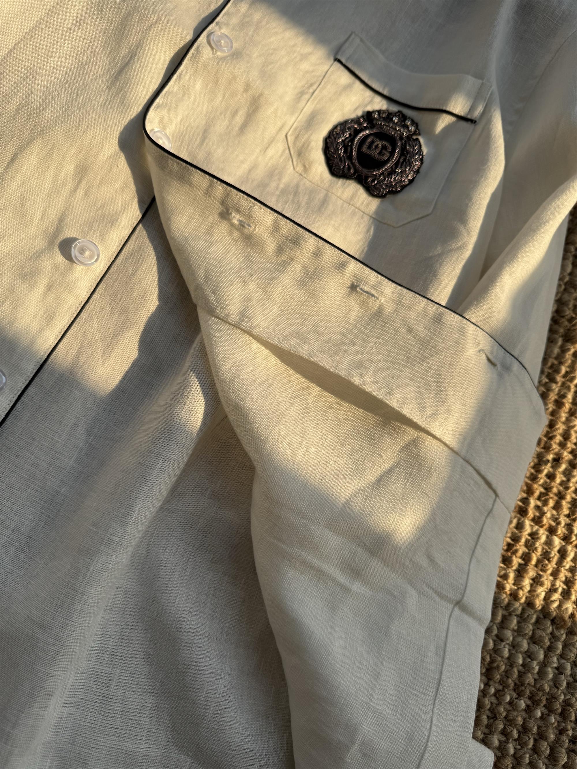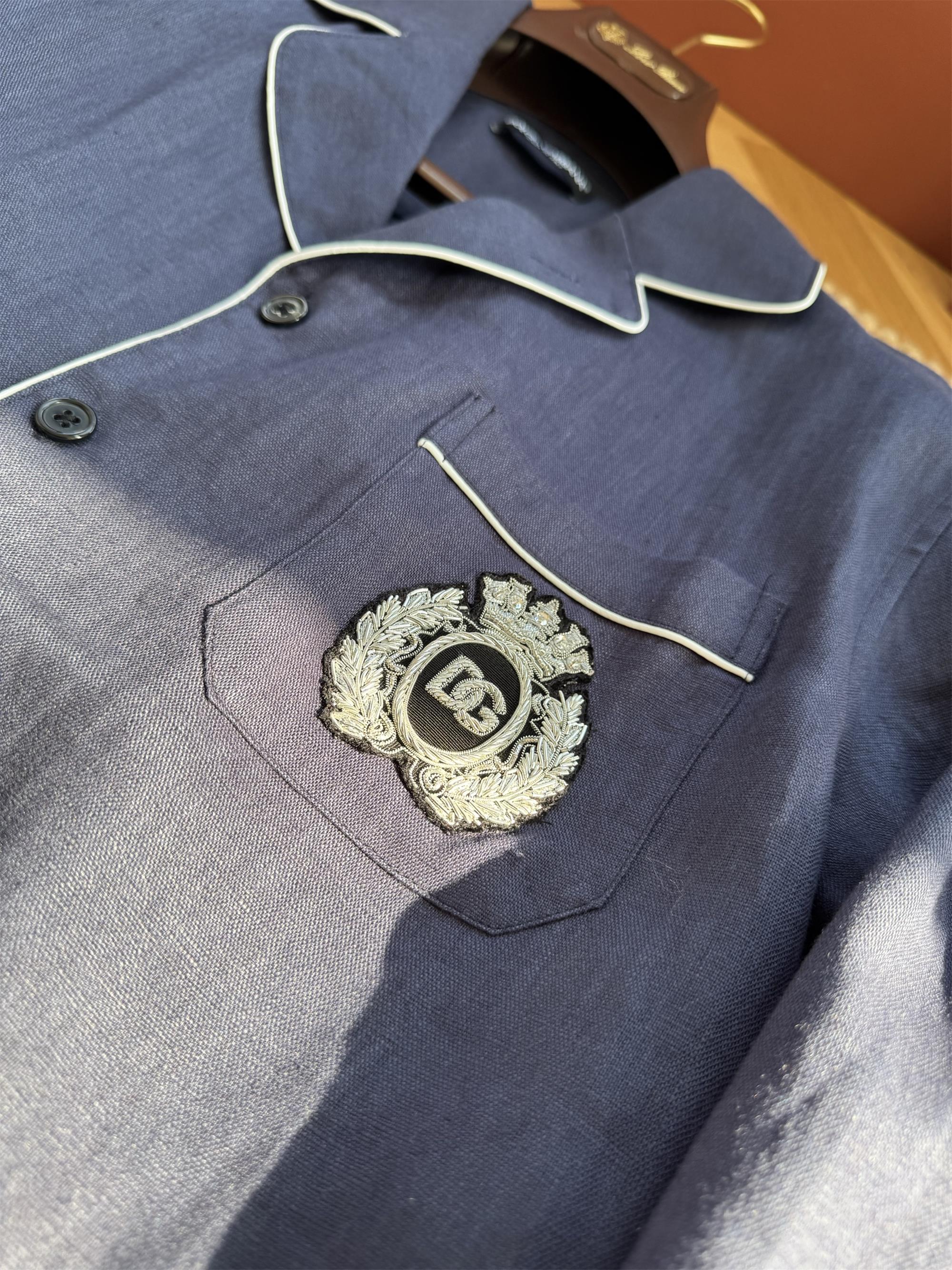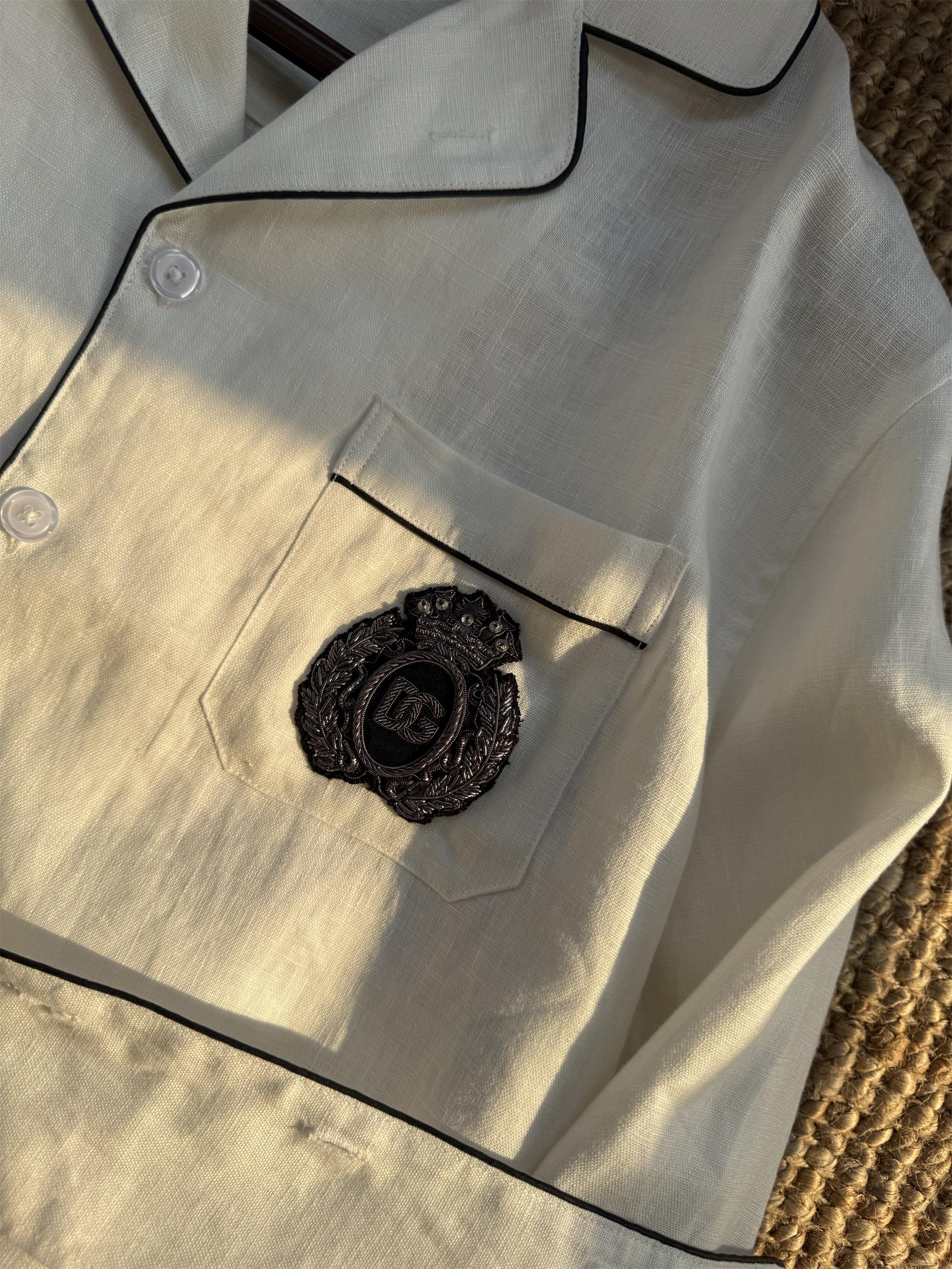 NIGO Dolce & Gabbana Men's Spring/Summer Solid Colour Embroidered Pattern Printed Single-Breasted Linen Fabric Long-Sleeved Shirt #nigo77136