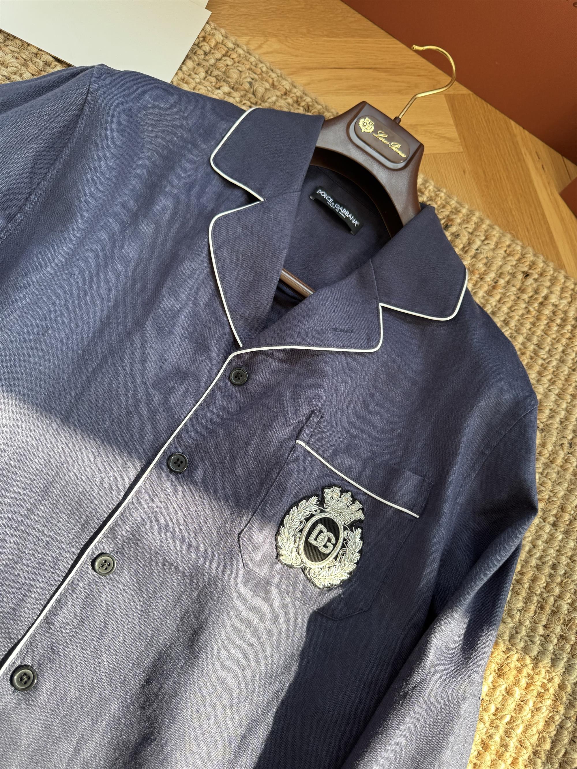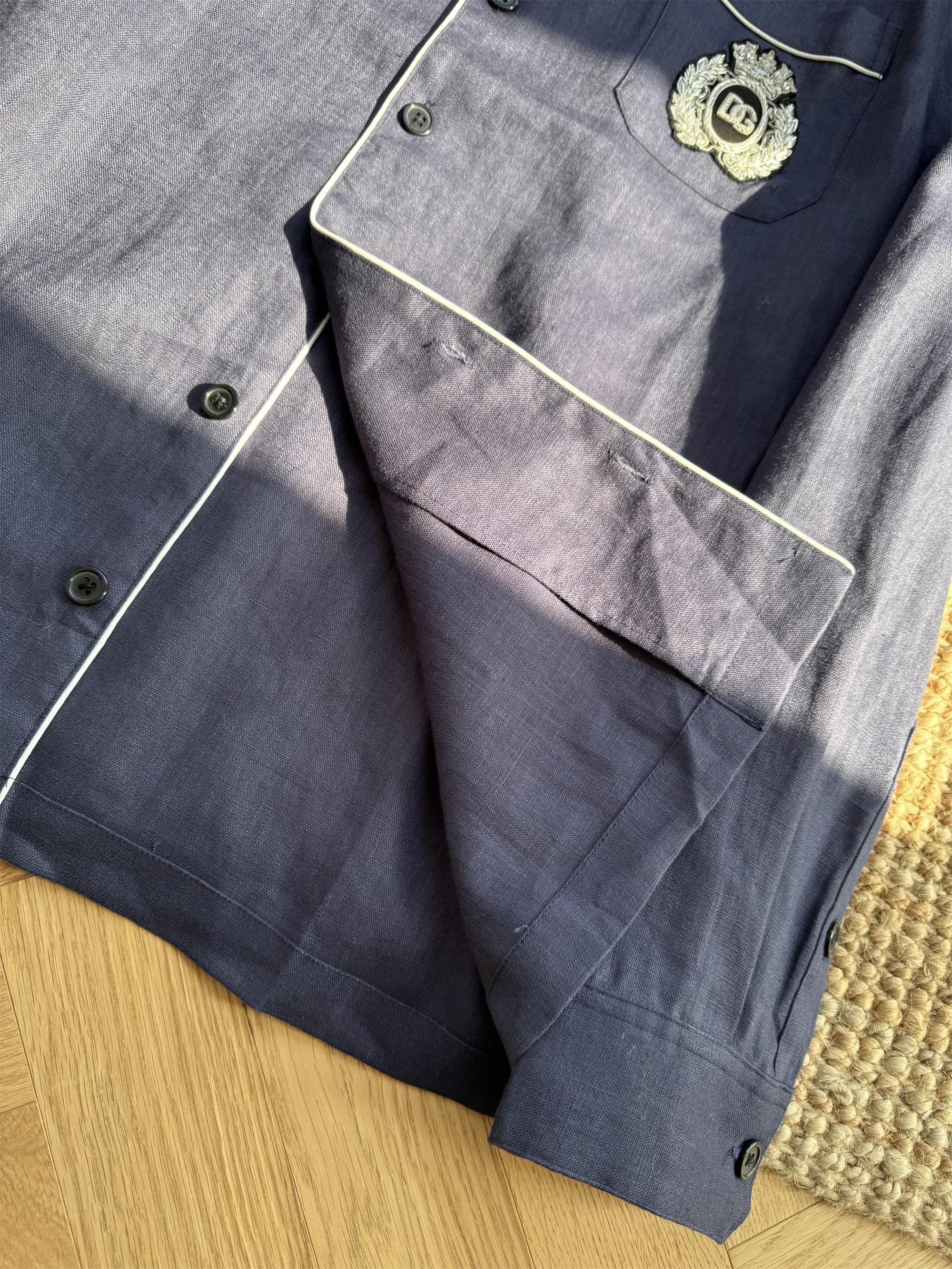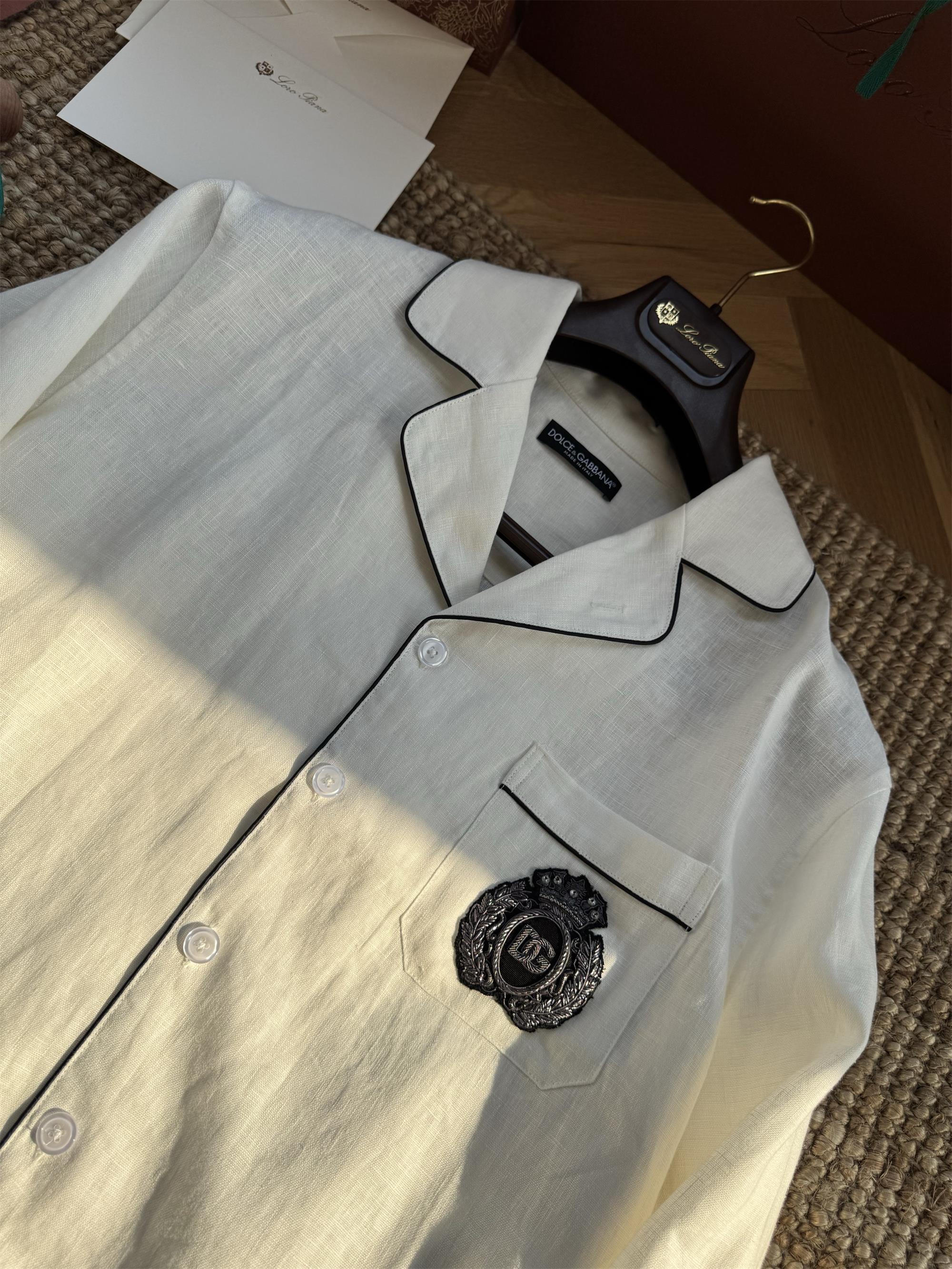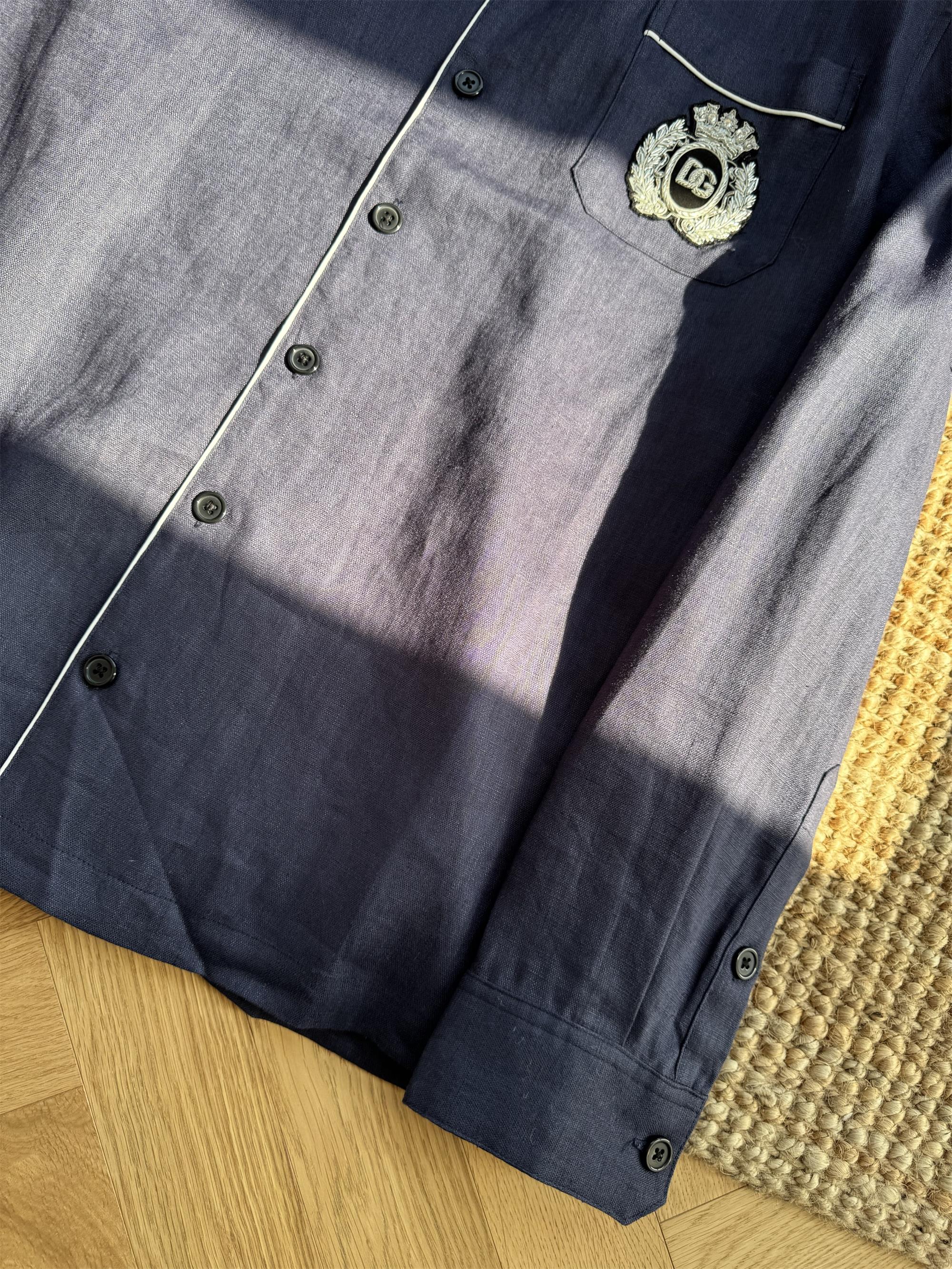 NIGO Dolce & Gabbana Men's Spring/Summer Solid Colour Embroidered Pattern Printed Single-Breasted Linen Fabric Long-Sleeved Shirt #nigo77136