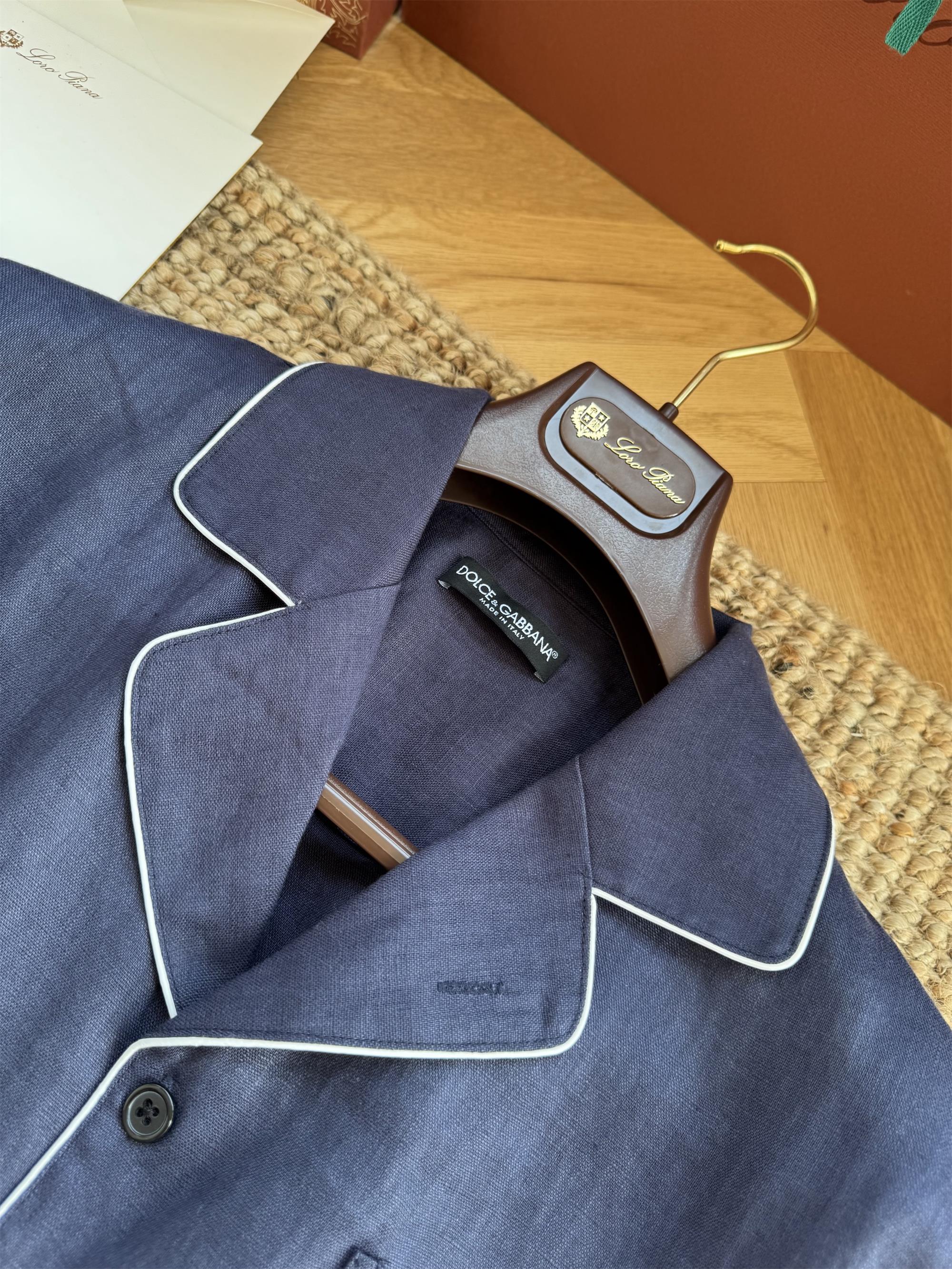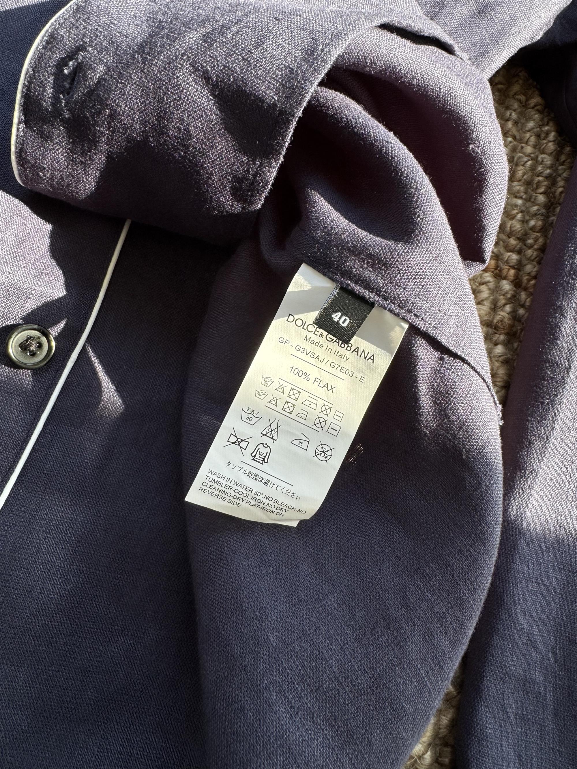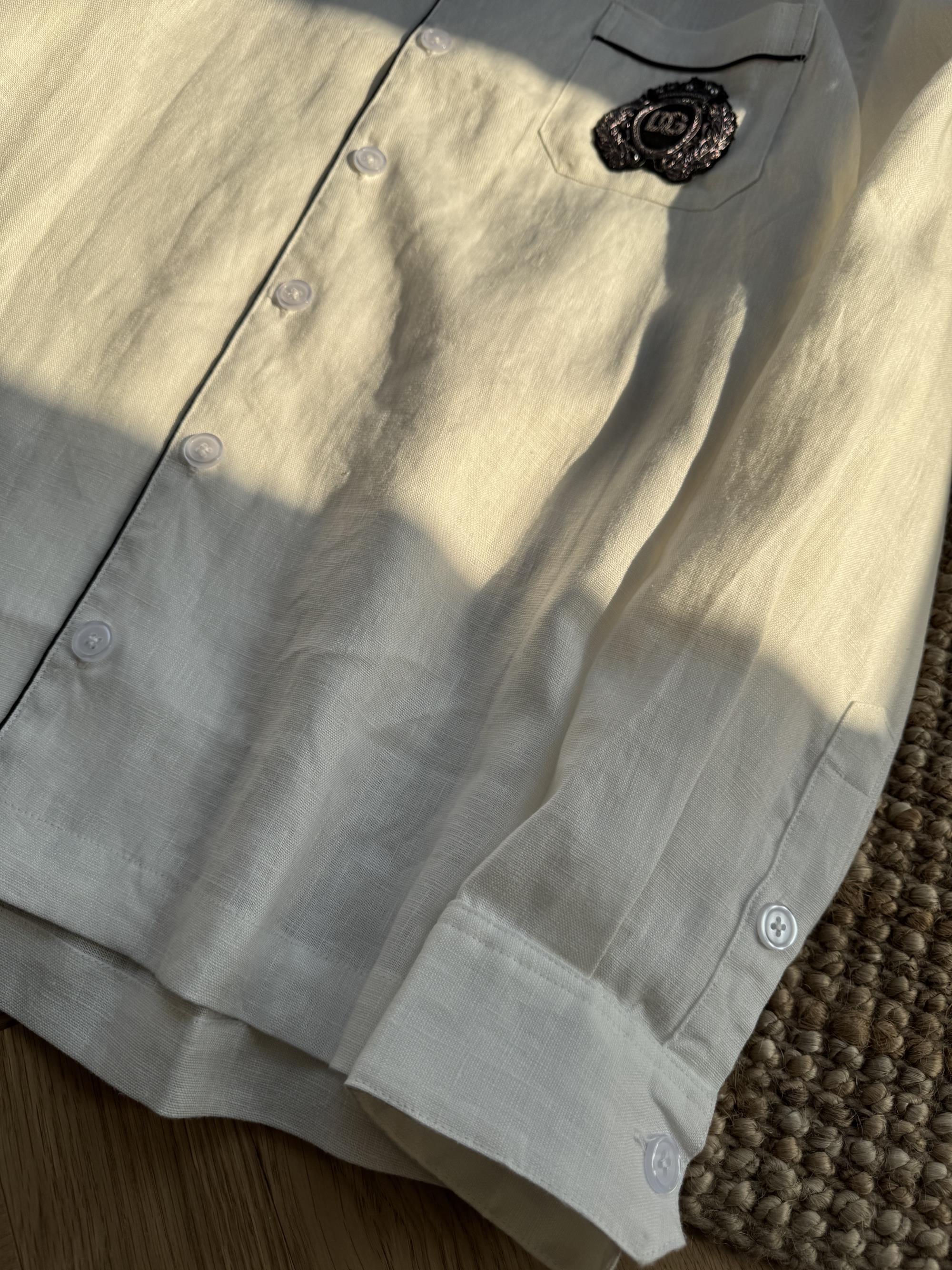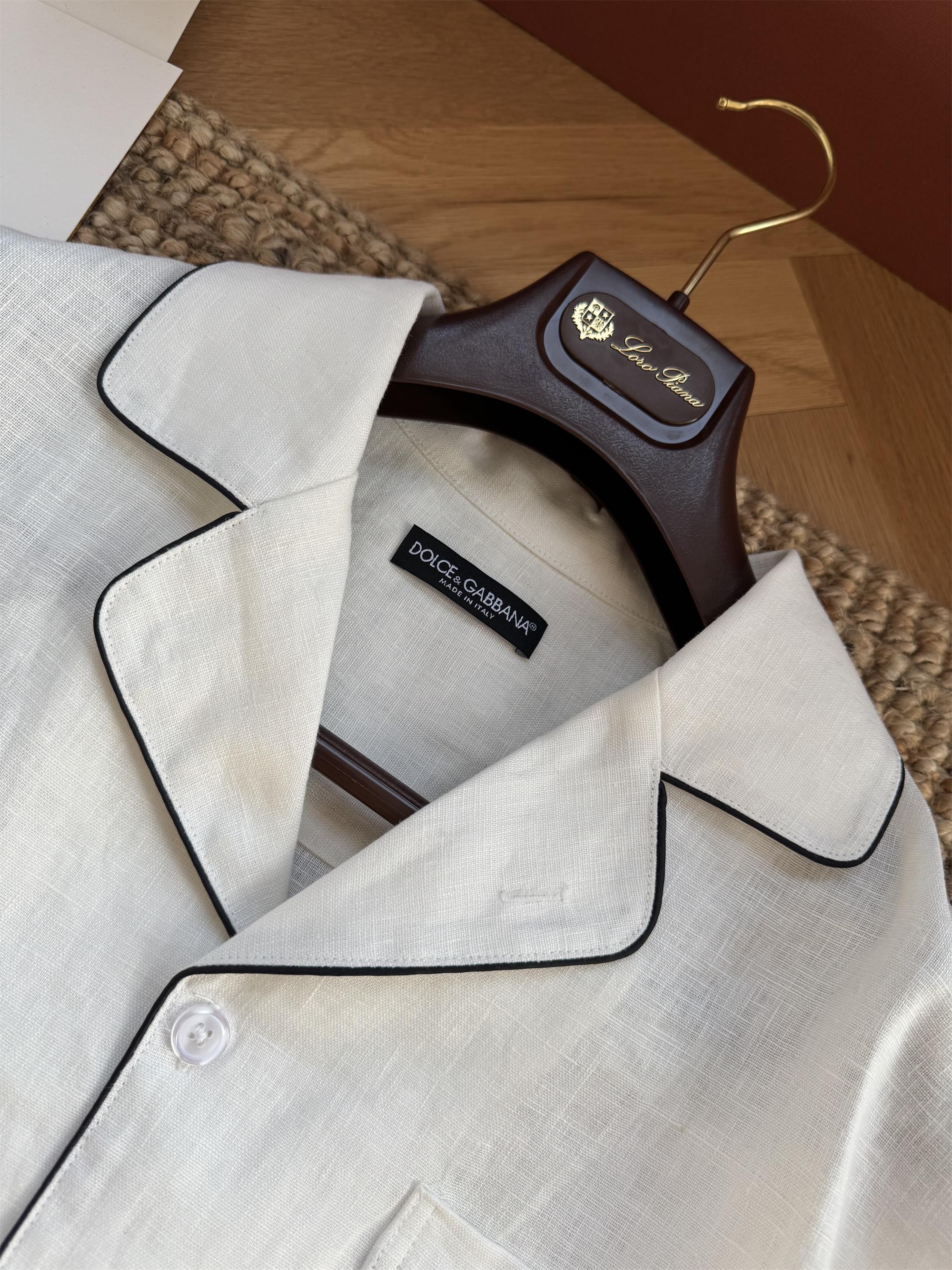 NIGO Dolce & Gabbana Men's Spring/Summer Solid Colour Embroidered Pattern Printed Single-Breasted Linen Fabric Long-Sleeved Shirt #nigo77136