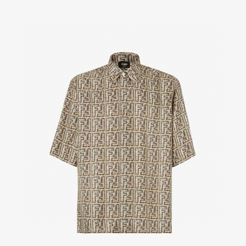 NIGO Fendi Men's Summer Letter Logo Full Print Single Breasted Short Sleeve Shirt #nigo99165
