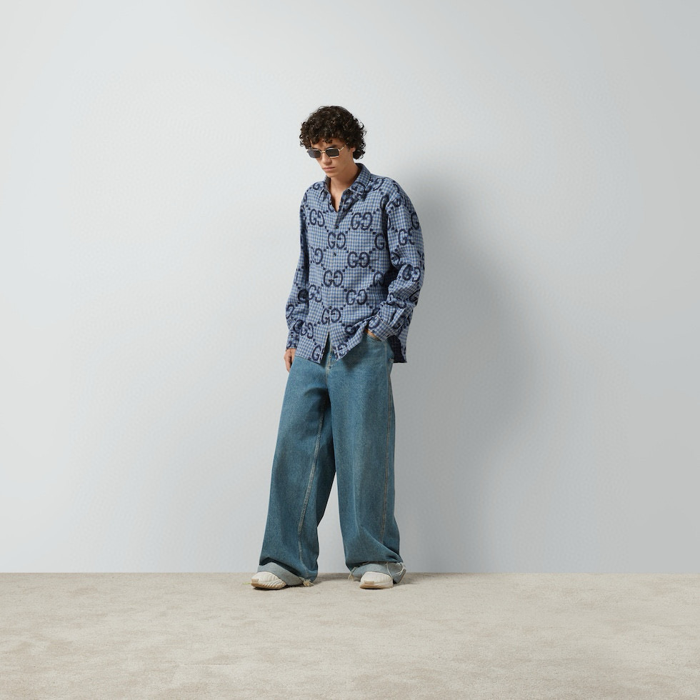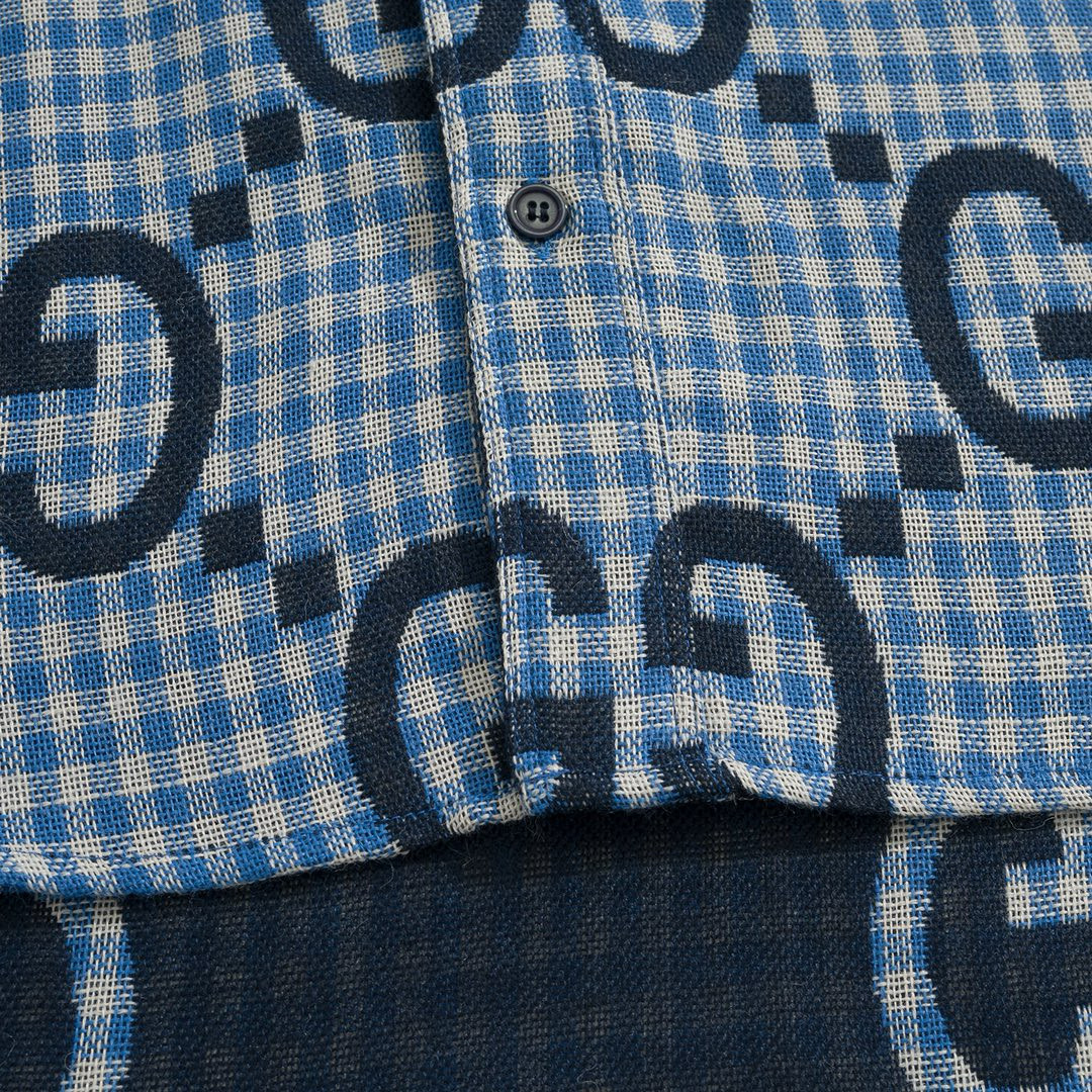 NIGO Gucci Men's Spring and Autumn Blue Letter Printed Single Breasted Long Sleeve Lapel Shirt #nigo98873