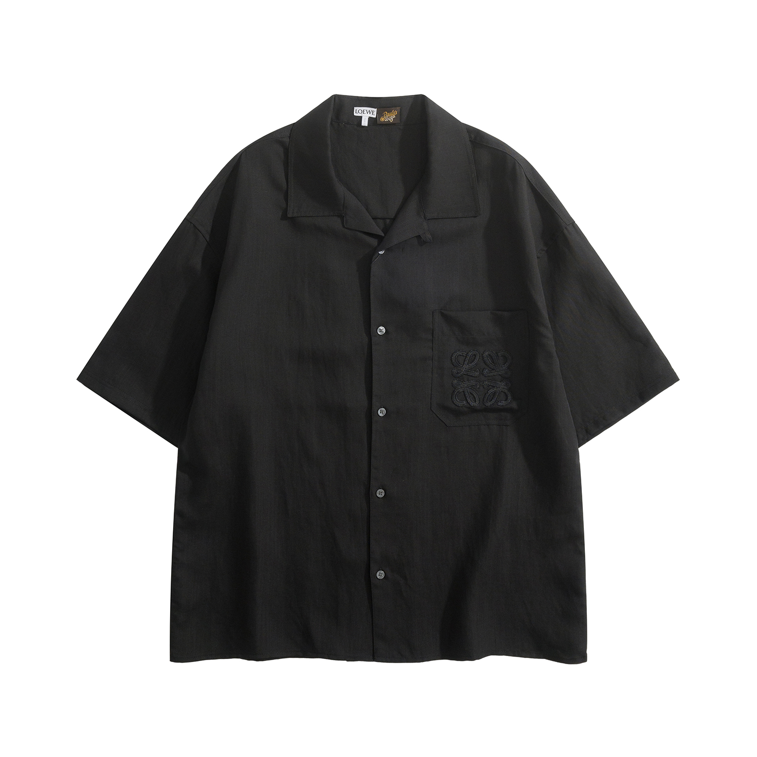 NIGO Loewe Men's Summer Solid Colour Embroidered Logo Printed Linen Single Breasted Short Sleeve Shirt #nigo76797