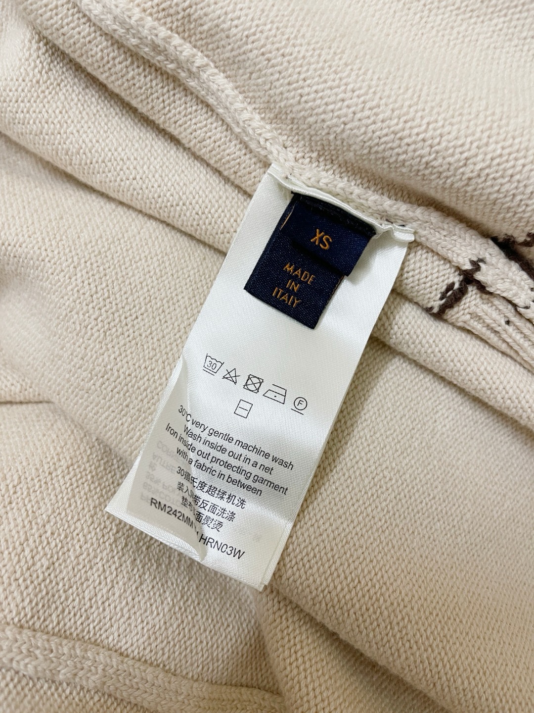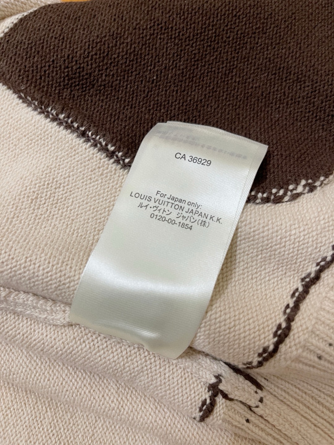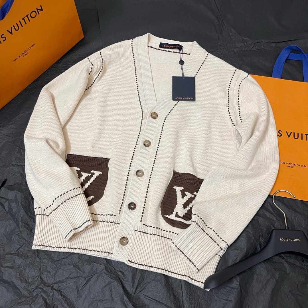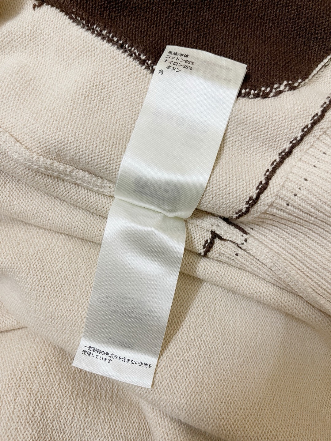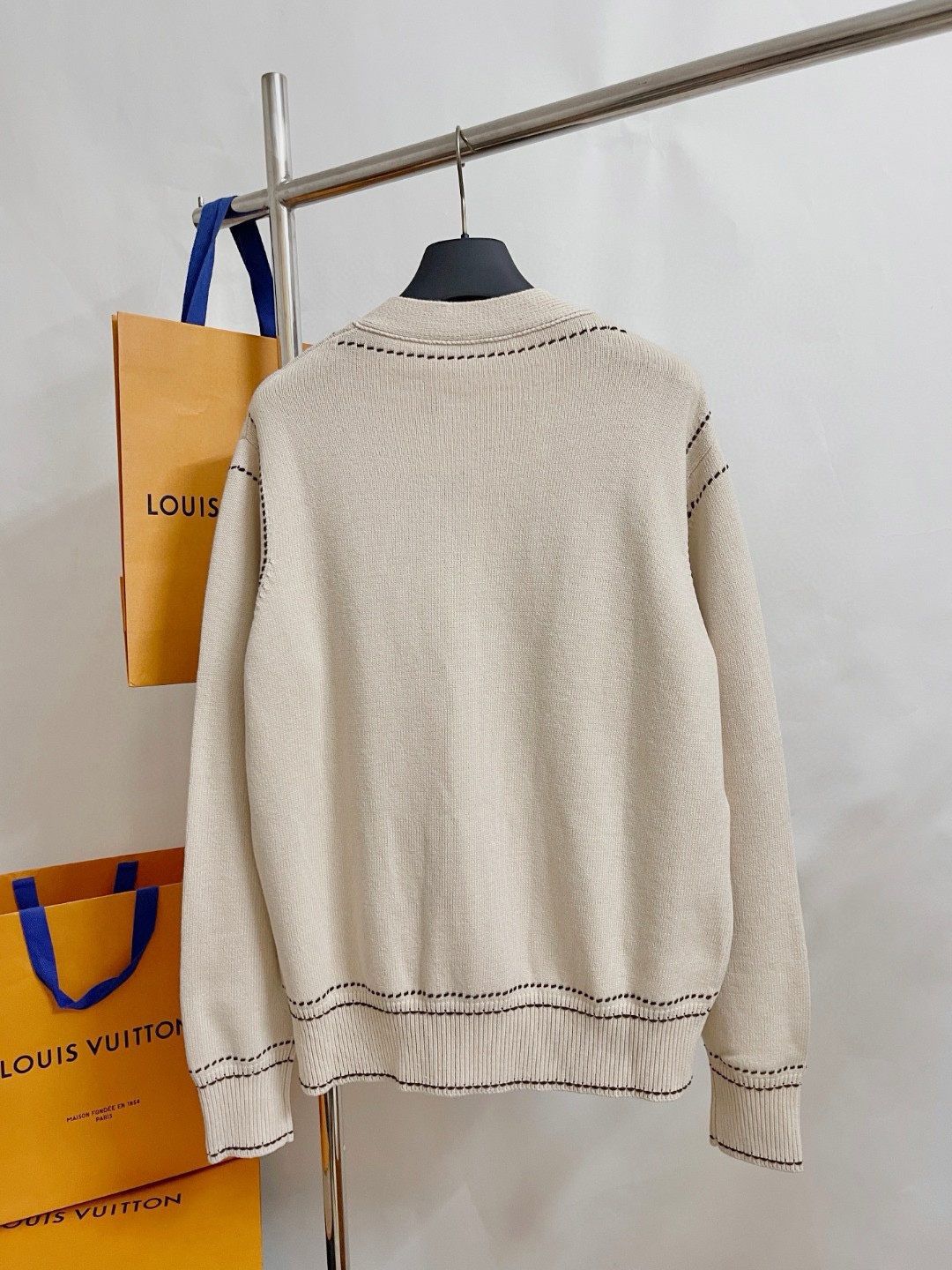 NIGO Louis Vuitton Men's Spring & Autumn Cream Logo Letter Applique Single Breasted V-Neck Long Sleeve Knit Shirt #nigo72477