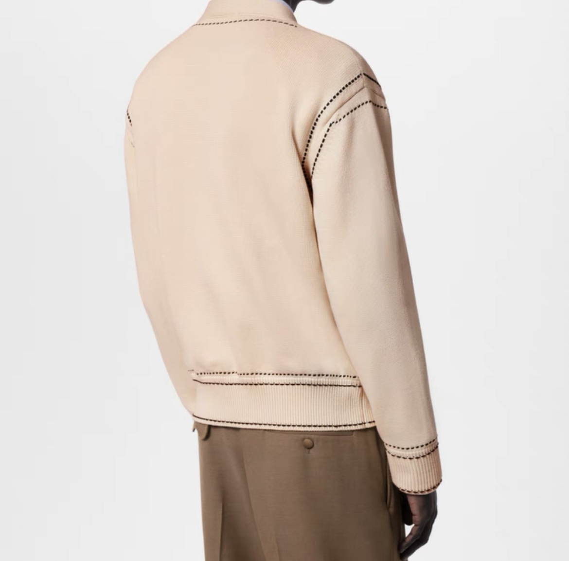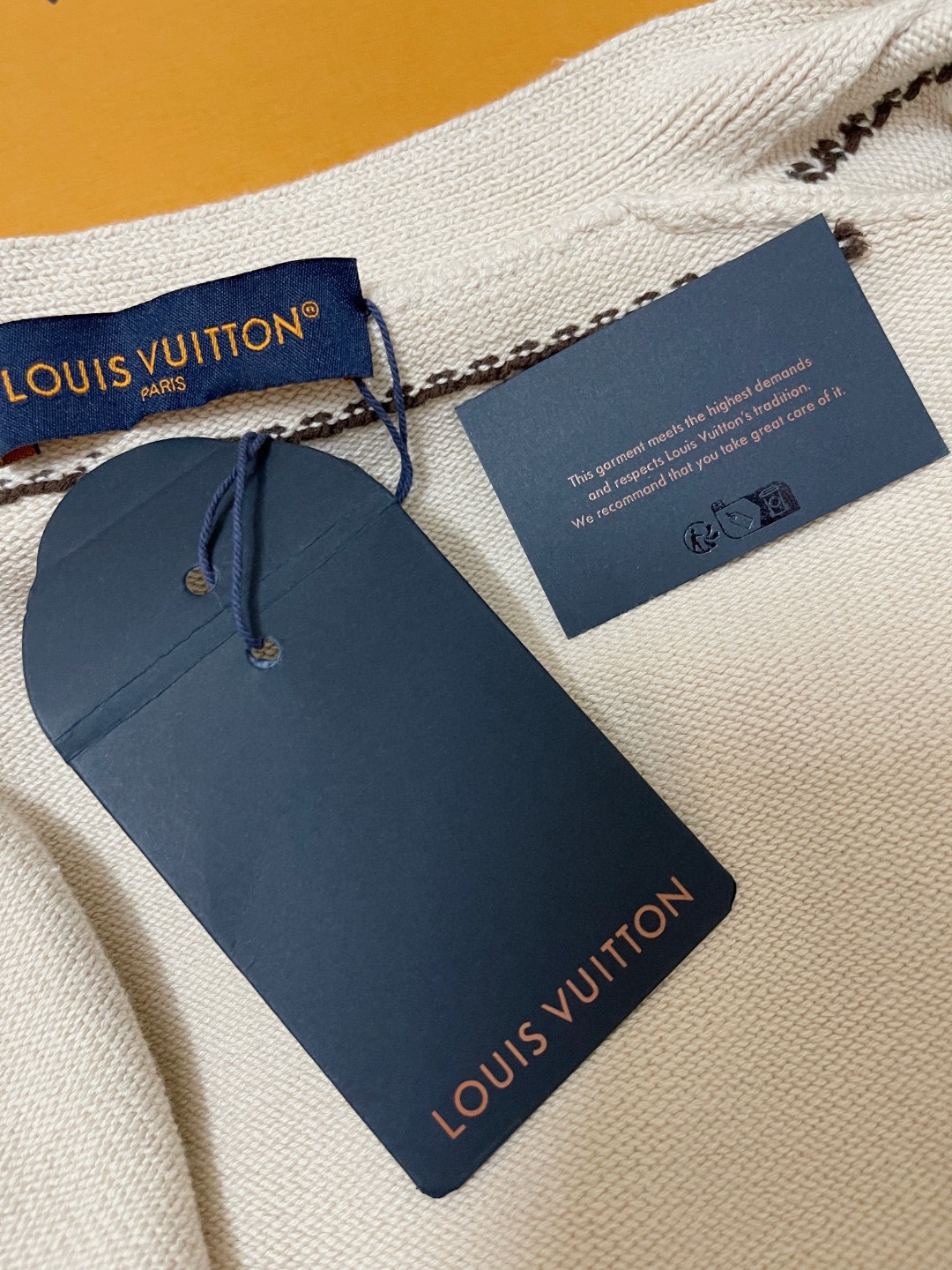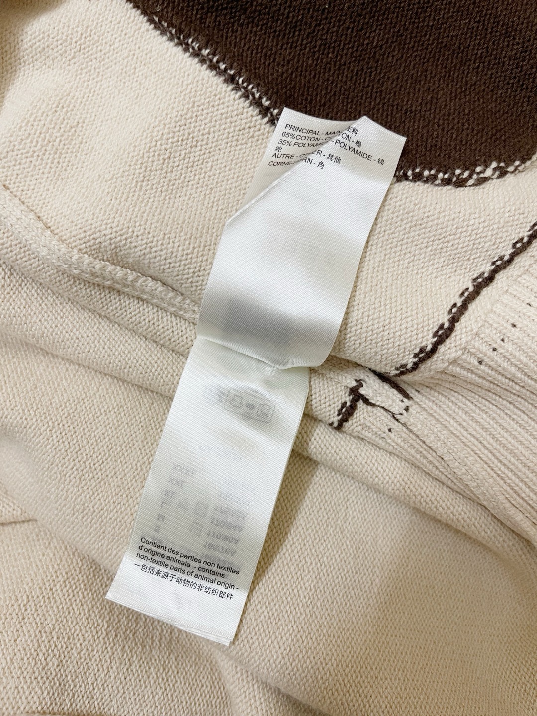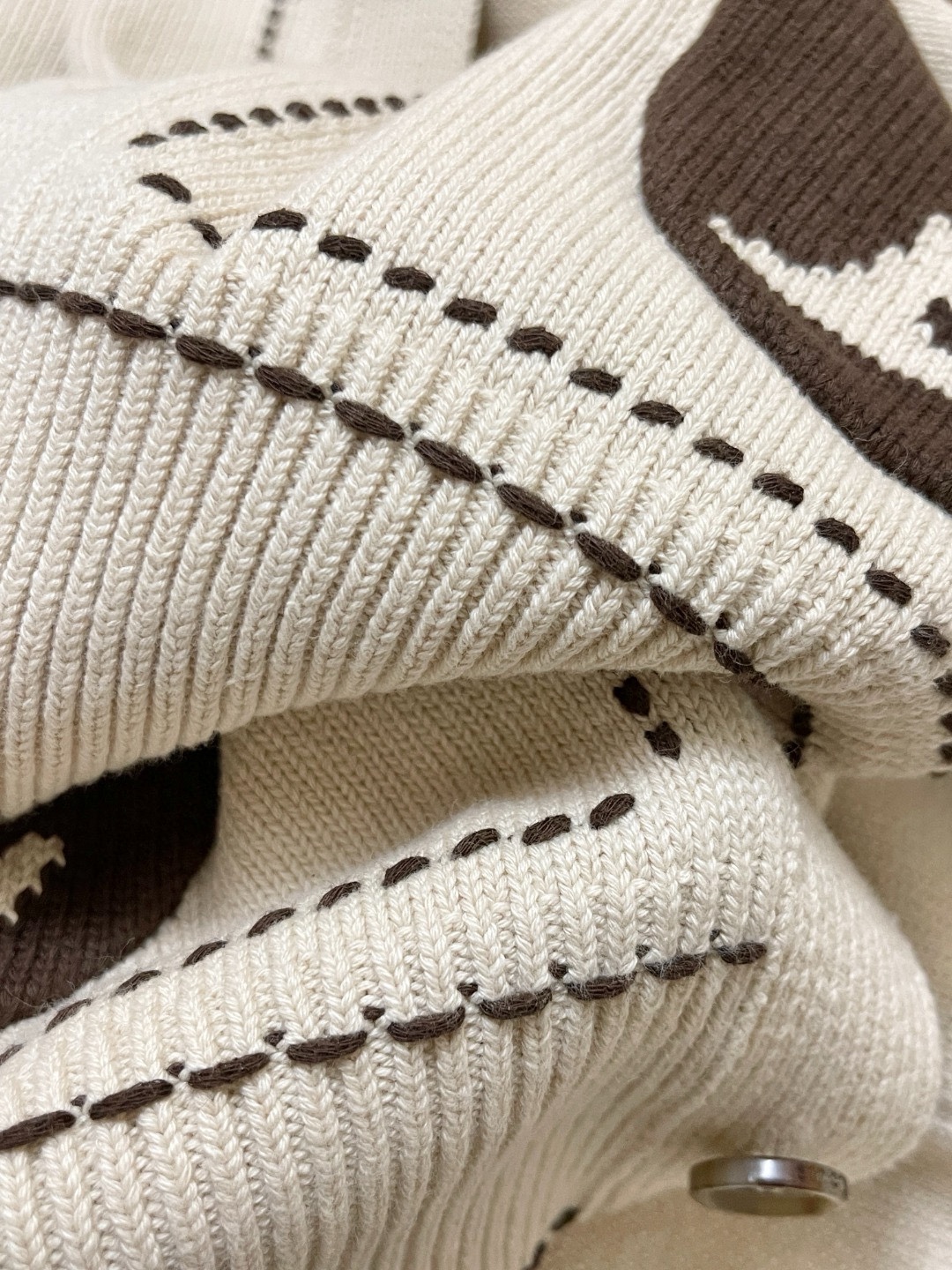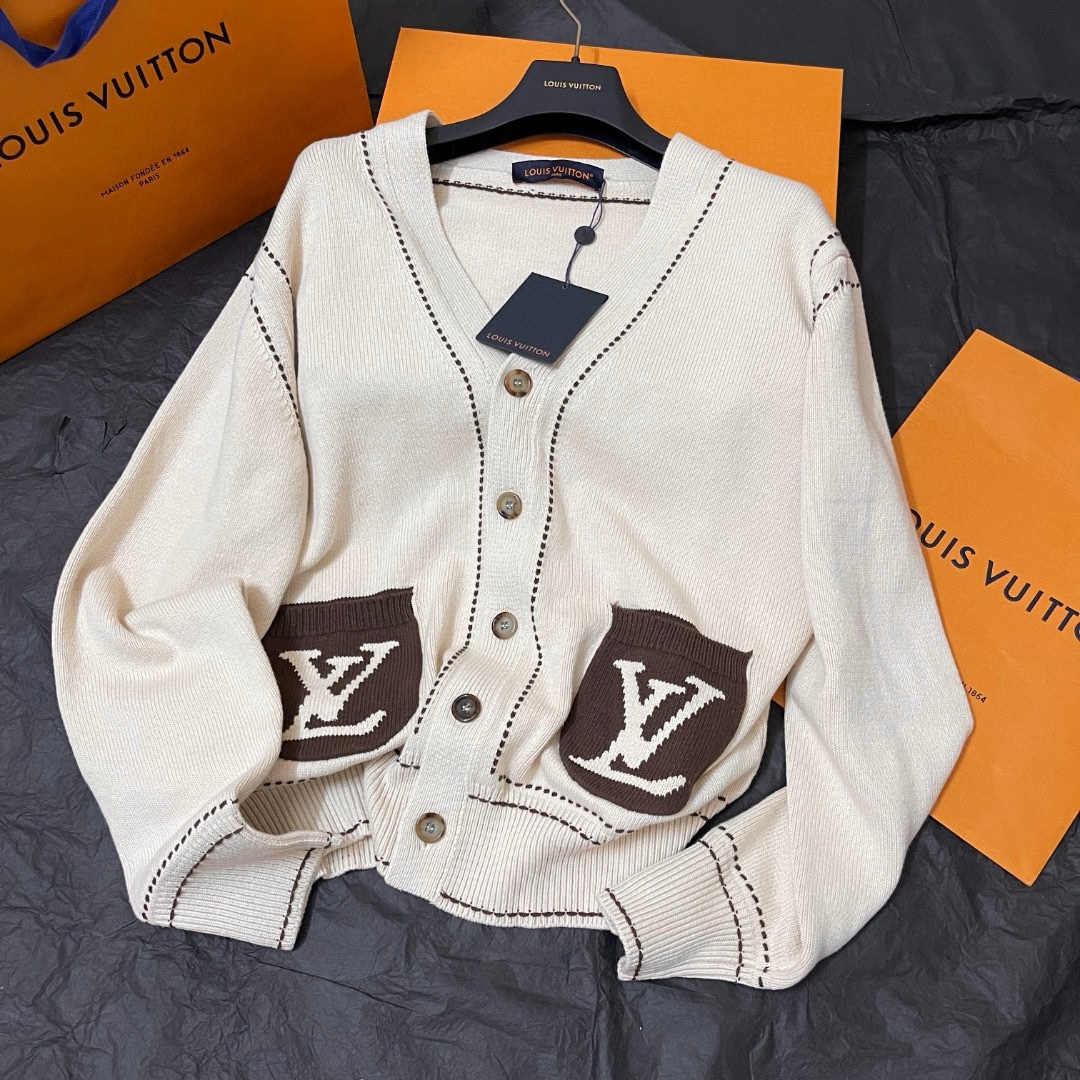 NIGO Louis Vuitton Men's Spring & Autumn Cream Logo Letter Applique Single Breasted V-Neck Long Sleeve Knit Shirt #nigo72477