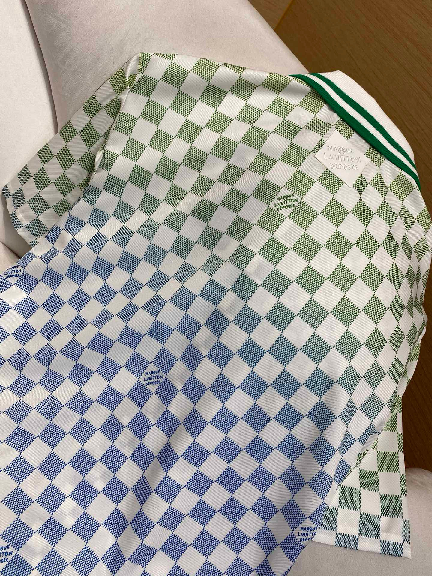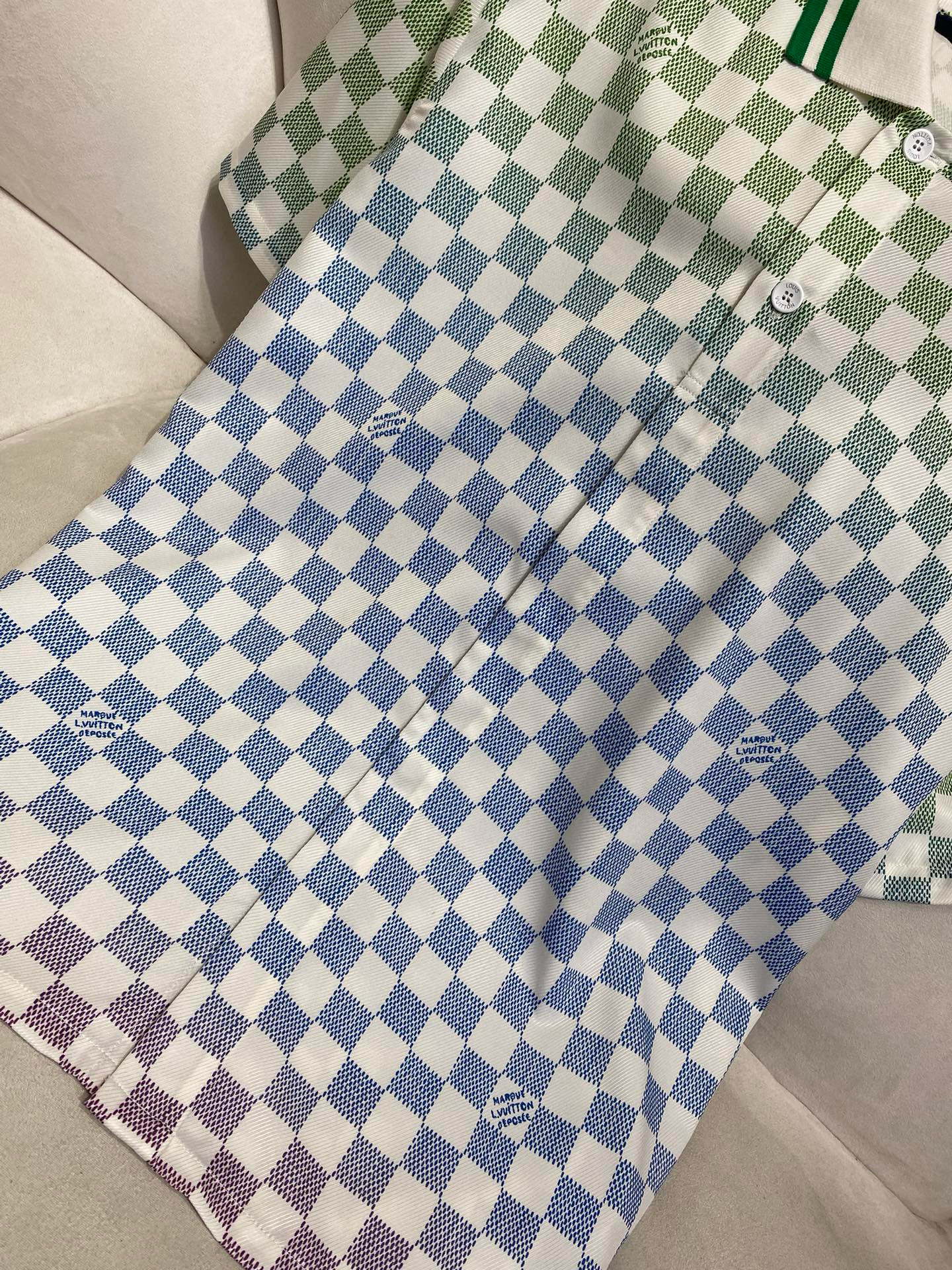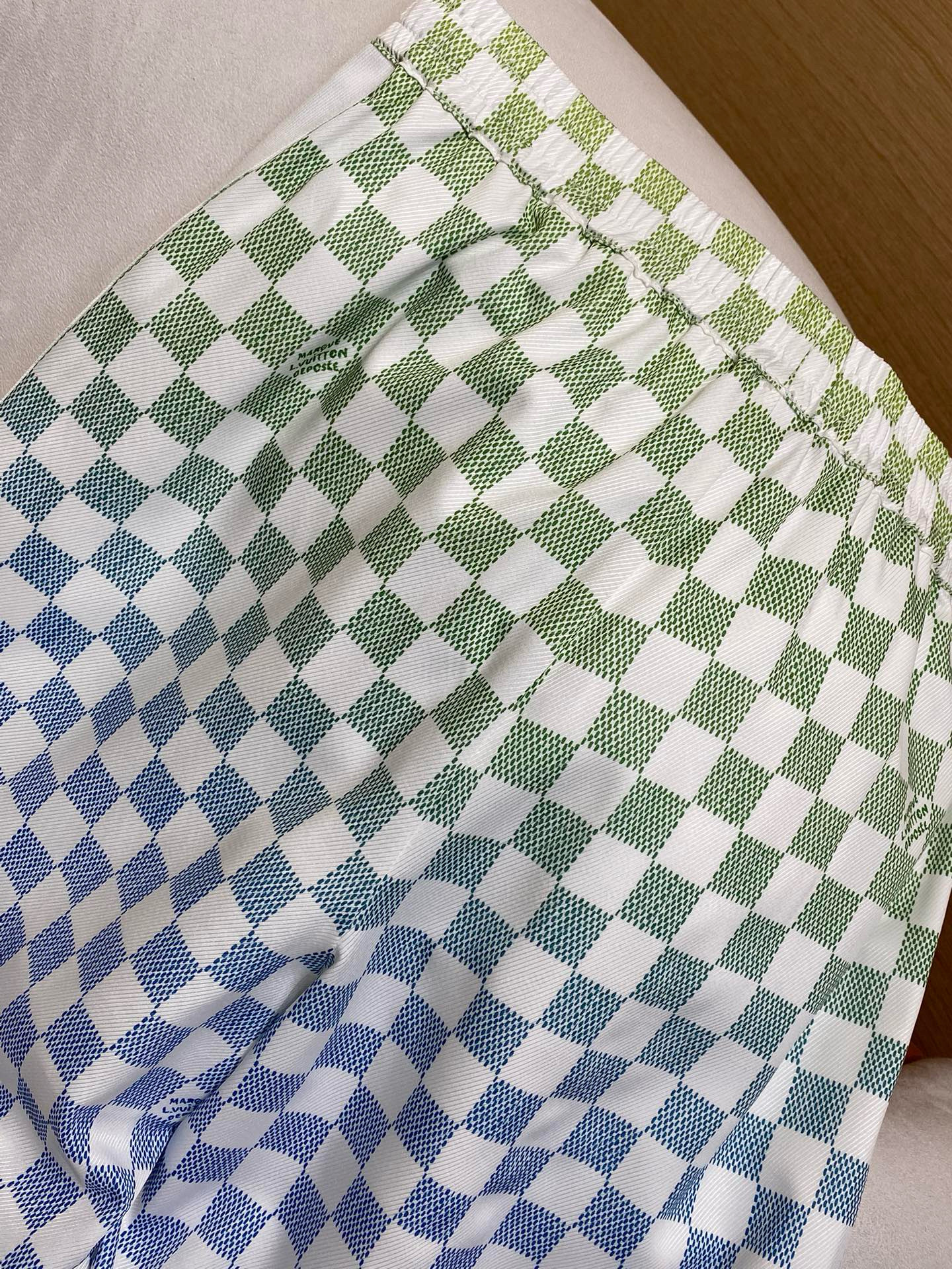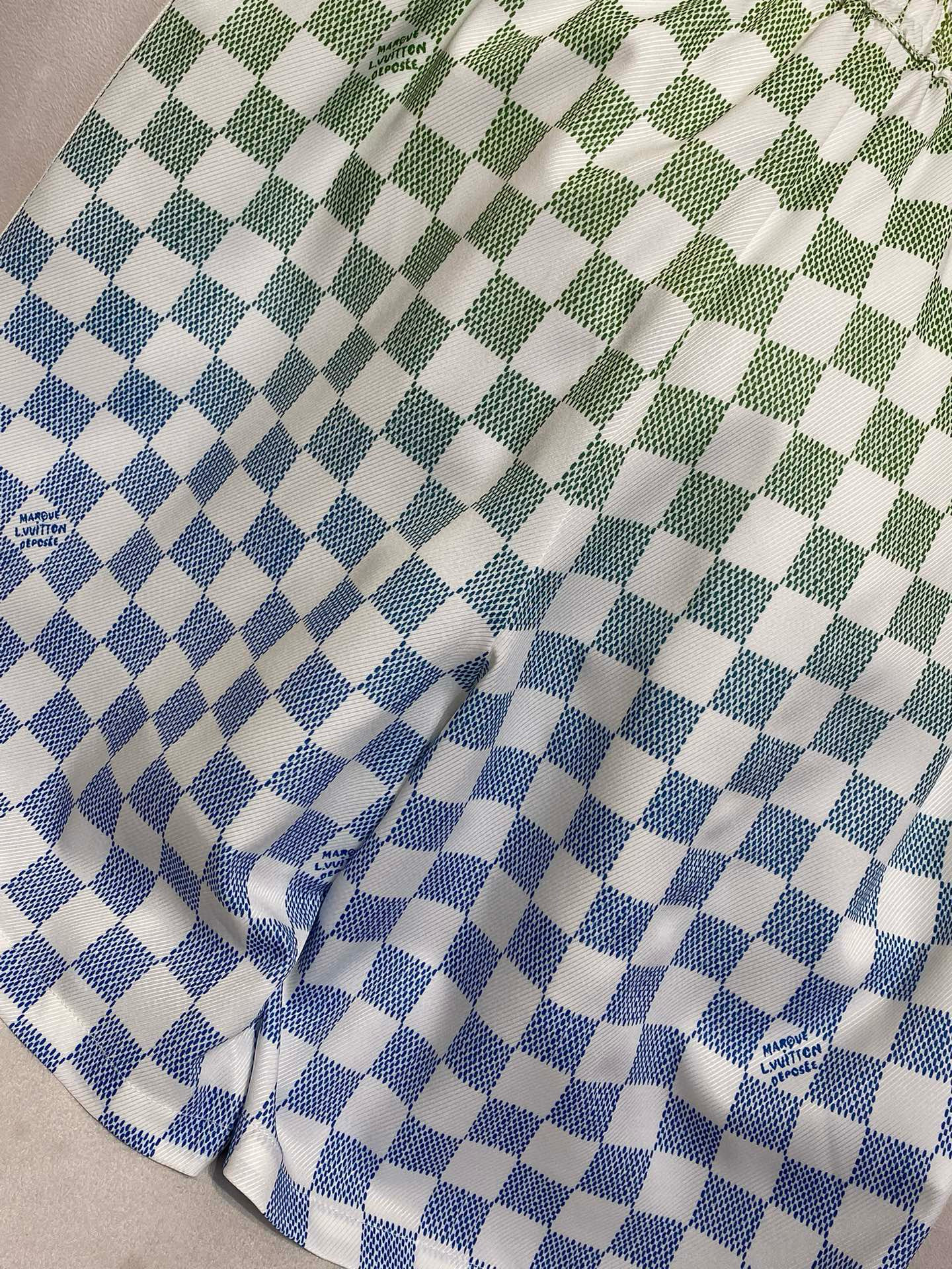 NIGO Louis Vuitton Men's Spring/Summer Damier Gradient Printed Mulberry Silk Short Sleeve Polo Shirt Casual Elastic Waist Shorts #nigo81171