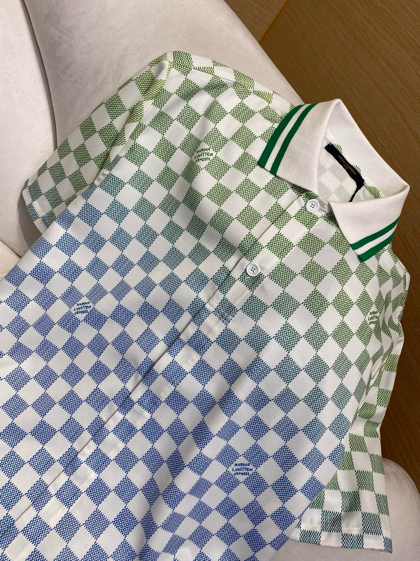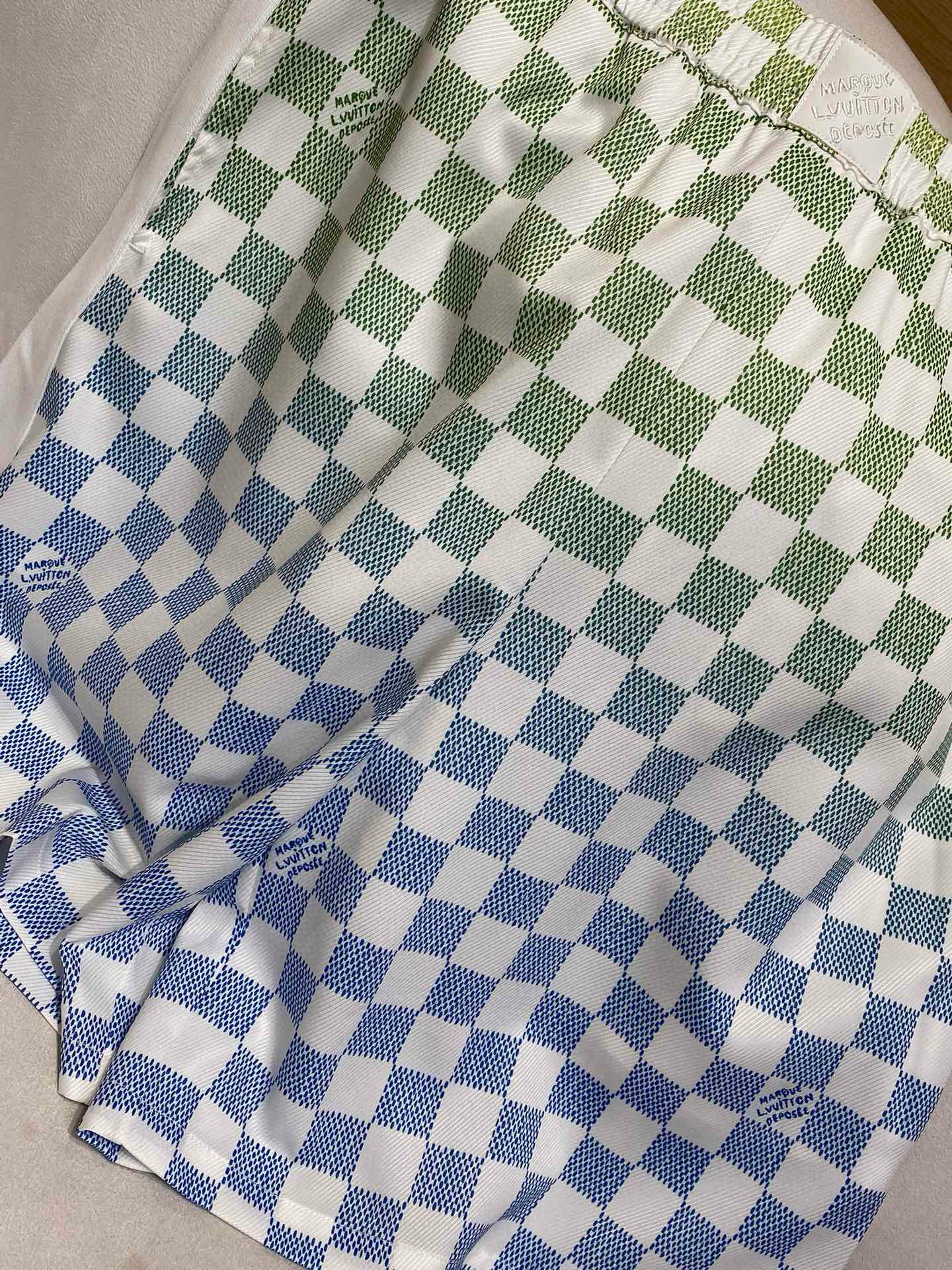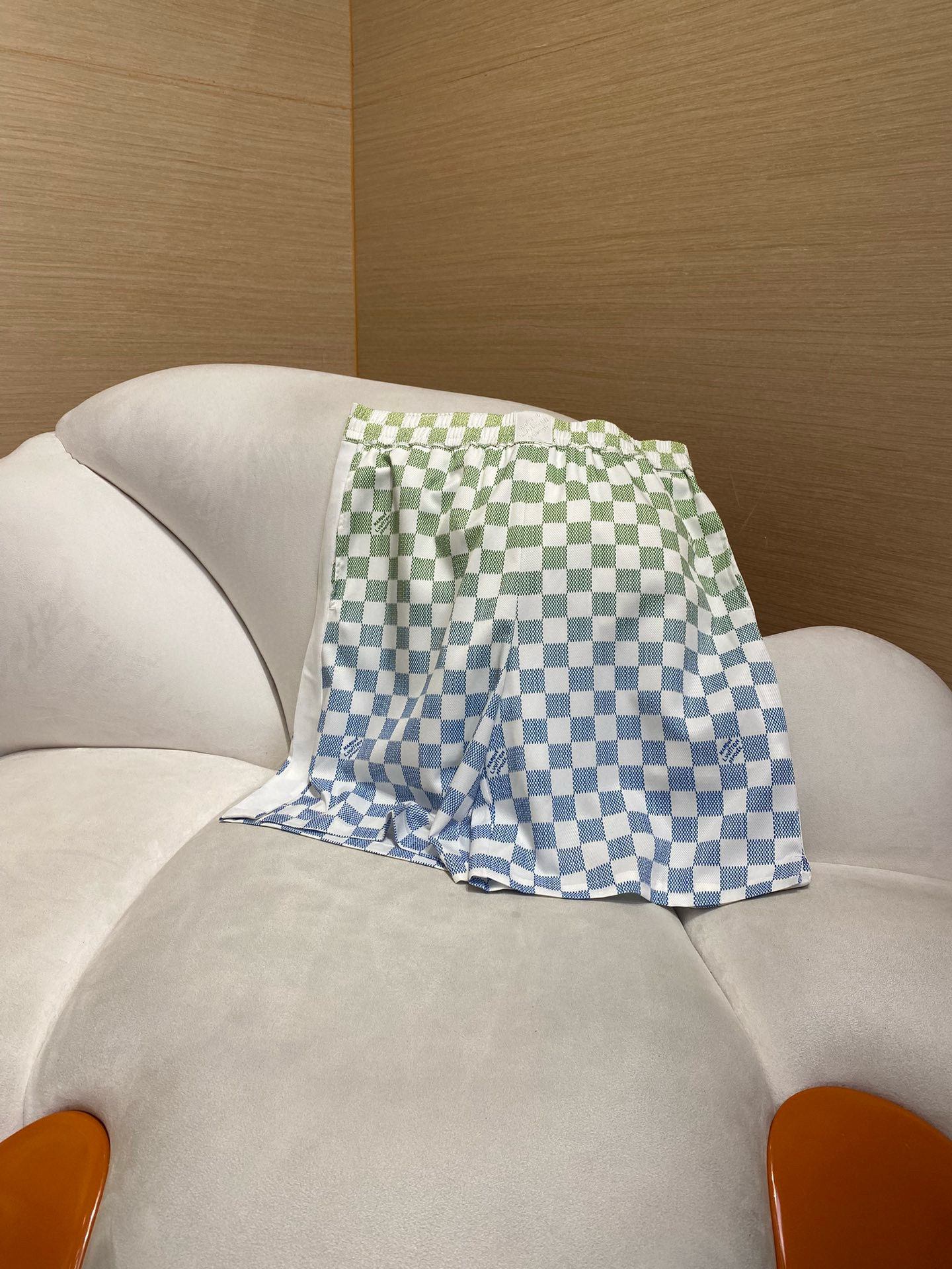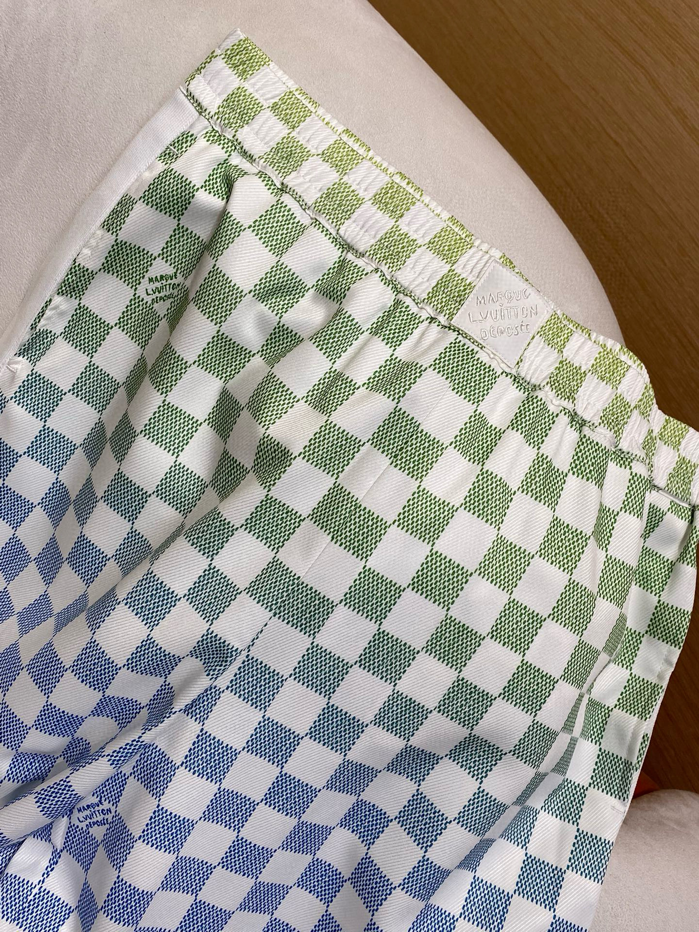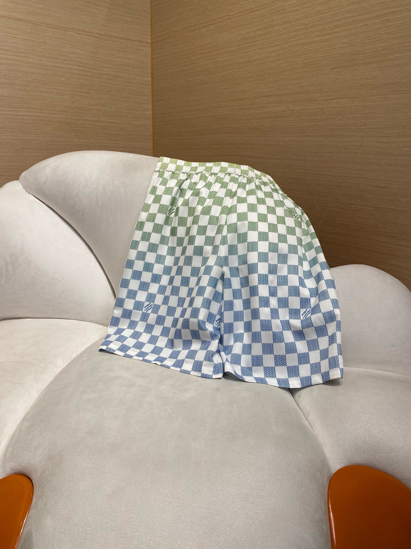 NIGO Louis Vuitton Men's Spring/Summer Damier Gradient Printed Mulberry Silk Short Sleeve Polo Shirt Casual Elastic Waist Shorts #nigo81171