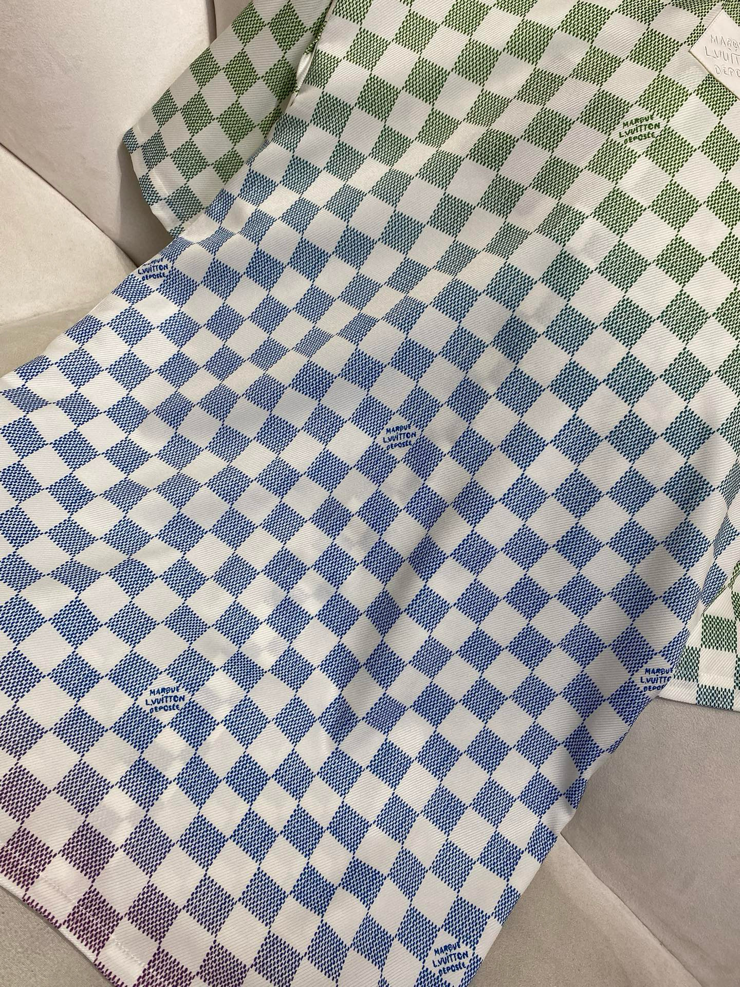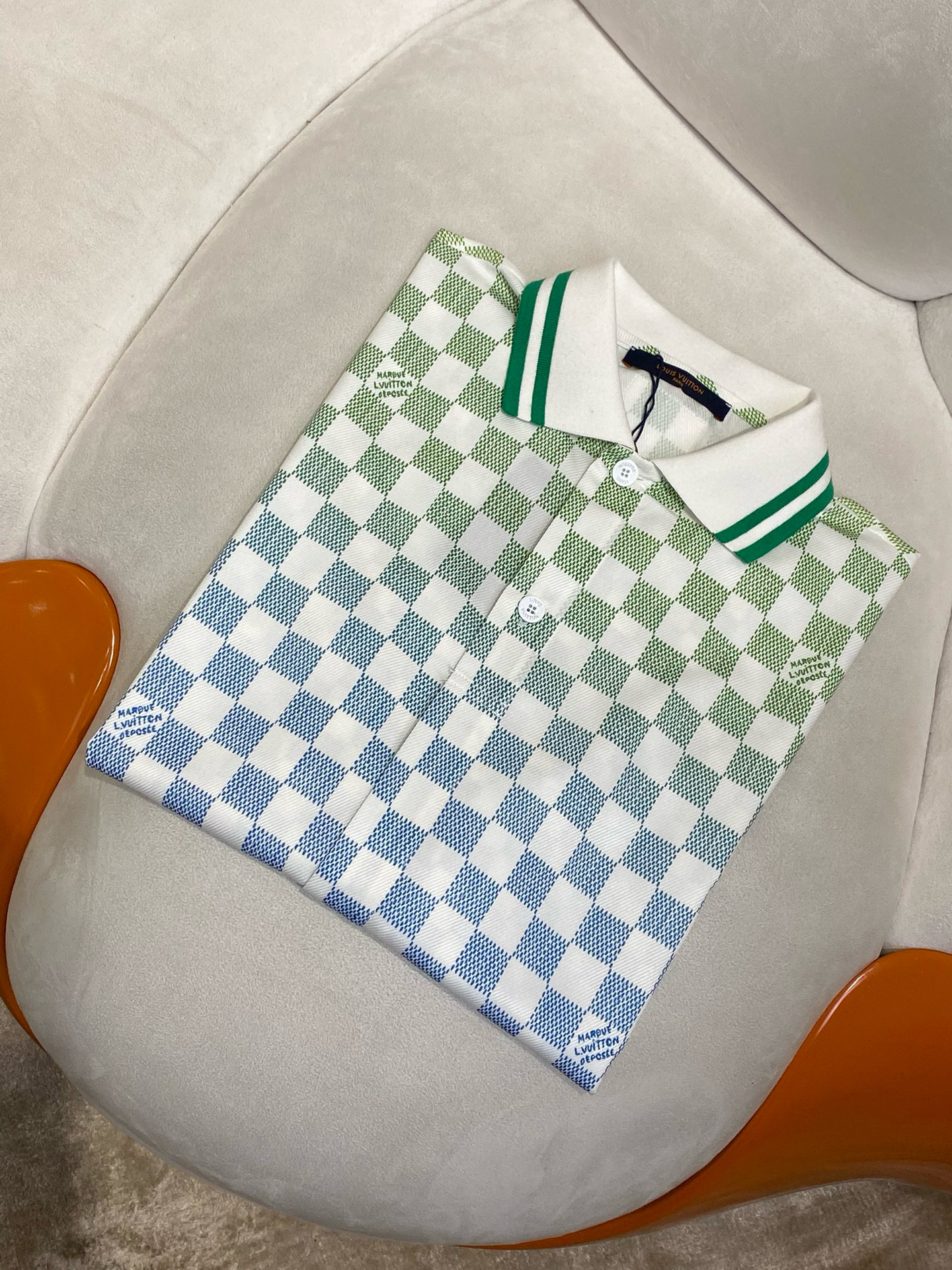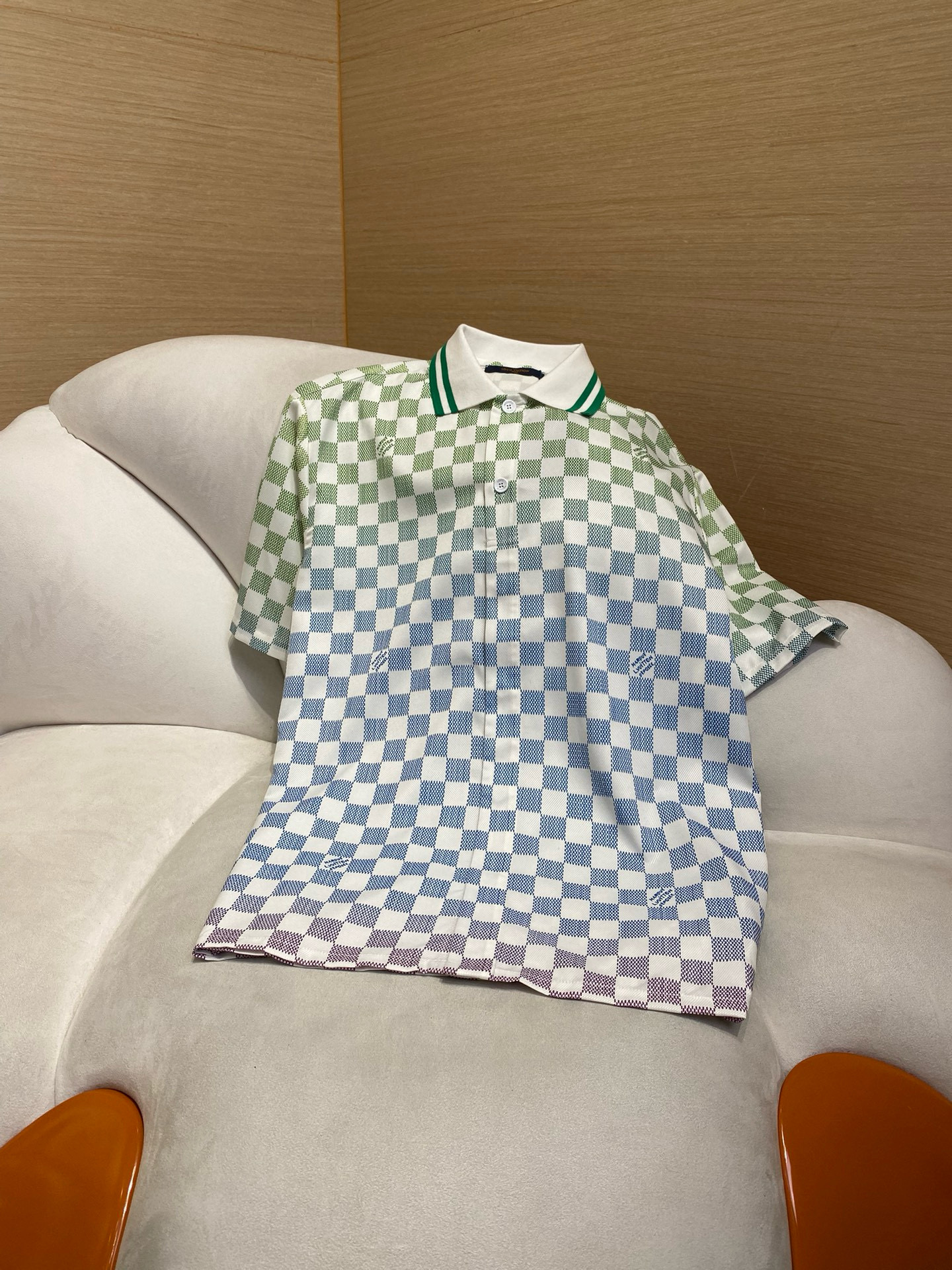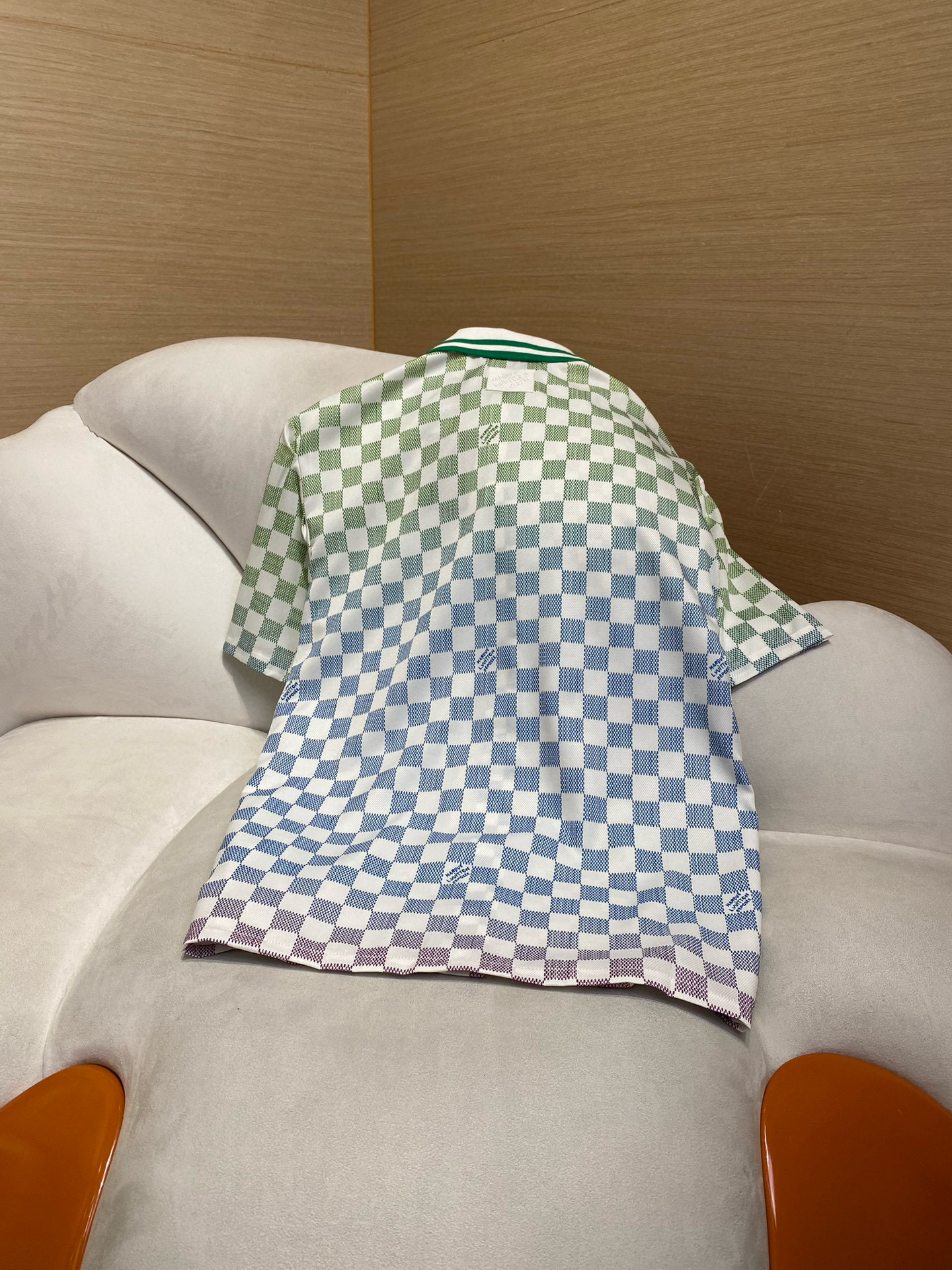 NIGO Louis Vuitton Men's Spring/Summer Damier Gradient Printed Mulberry Silk Short Sleeve Polo Shirt Casual Elastic Waist Shorts #nigo81171