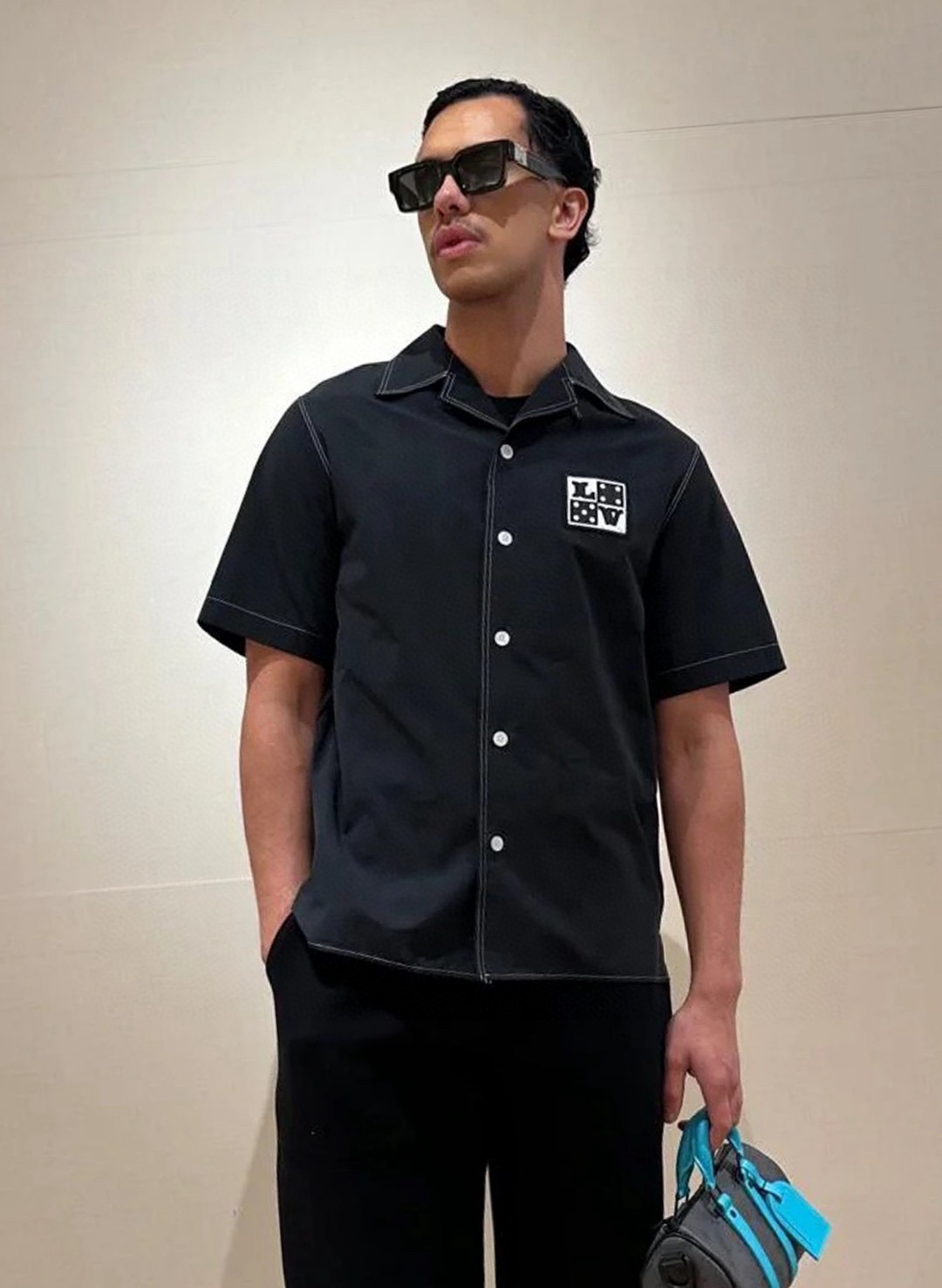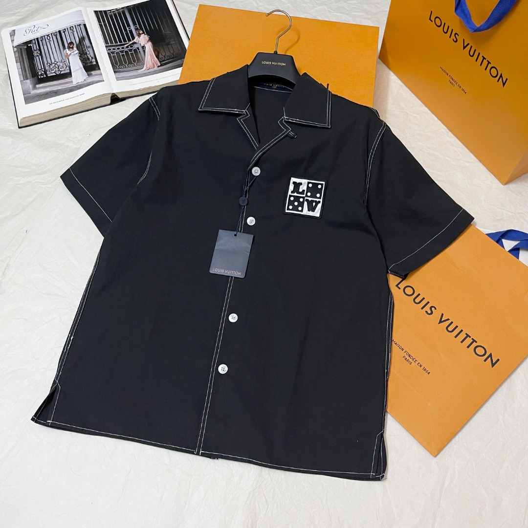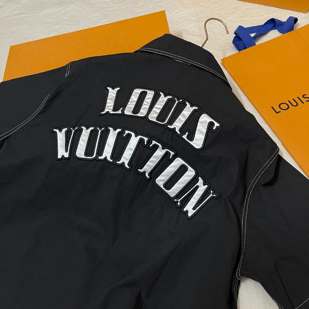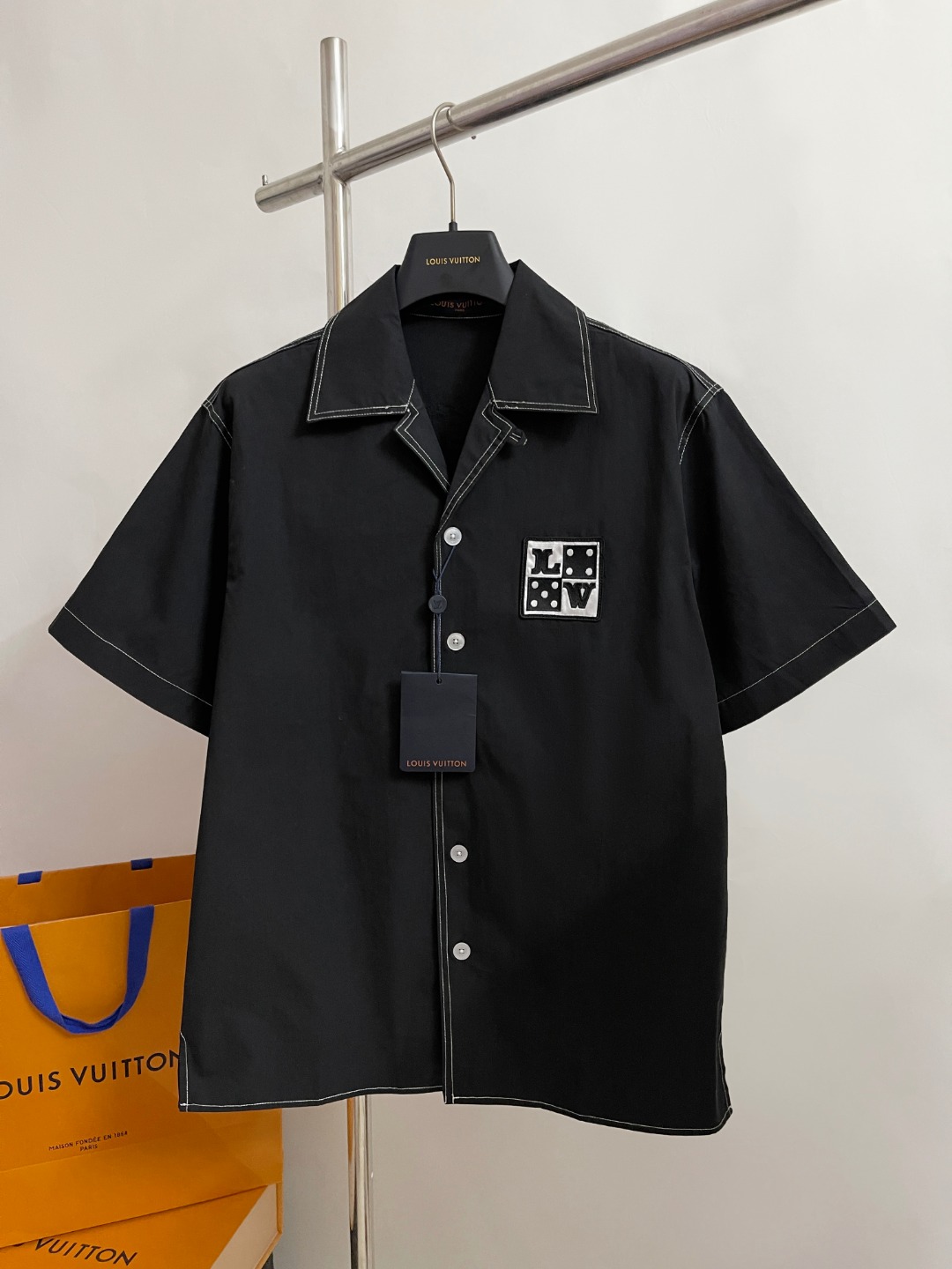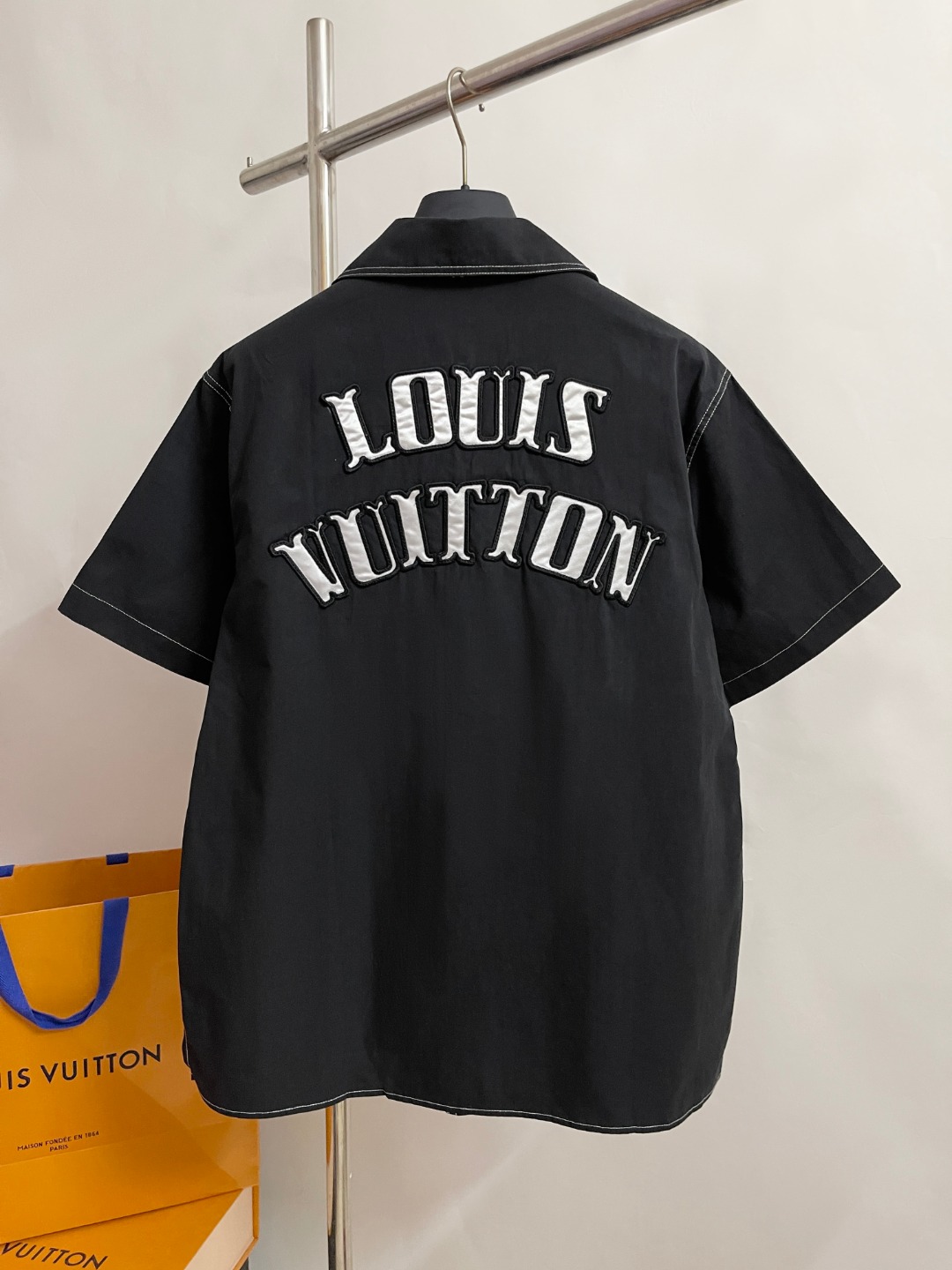 NIGO Louis Vuitton Men's Summer Black Letter Logo Embroidery Single Breasted Short Sleeve Shirt #nigo72968