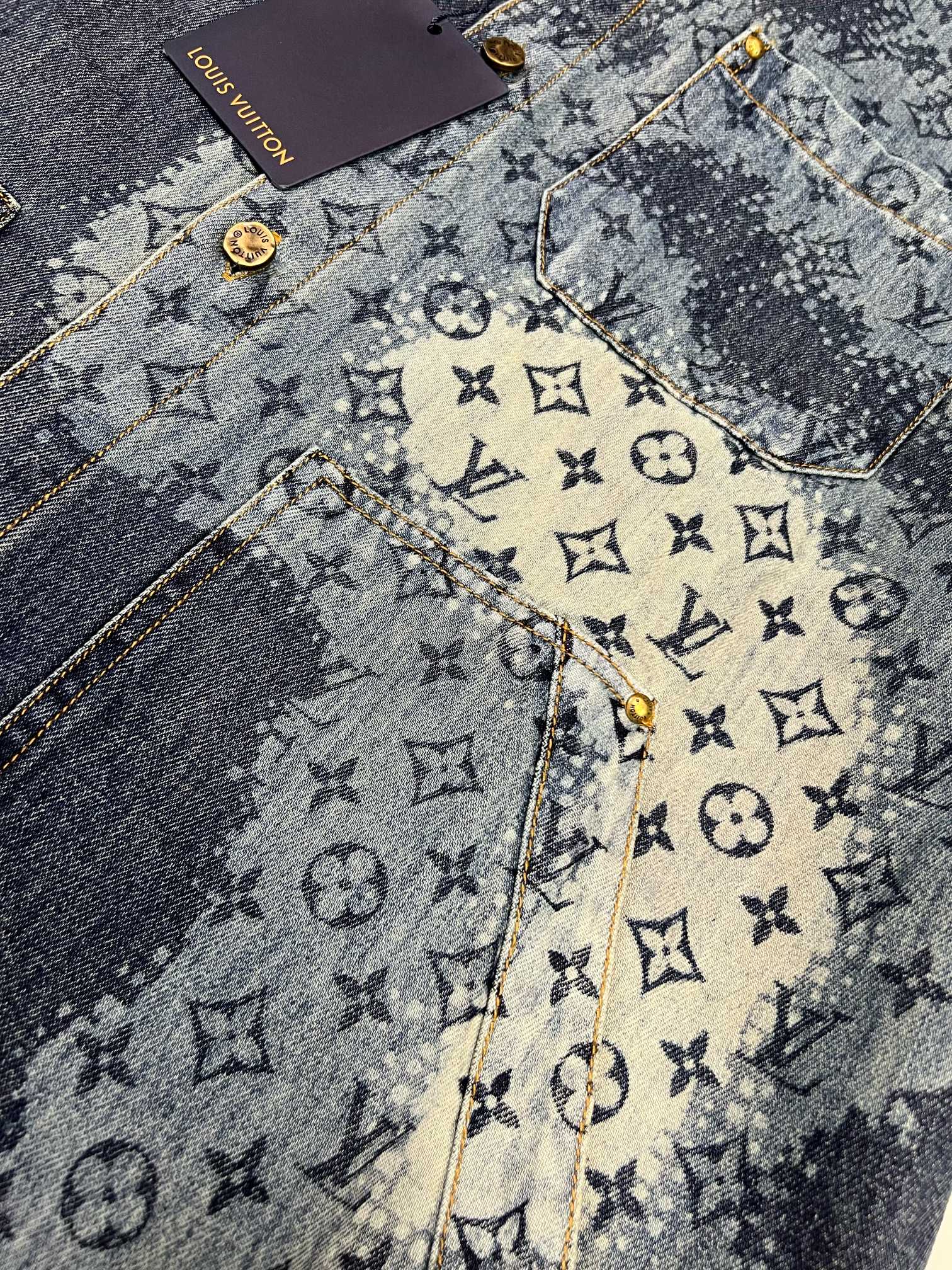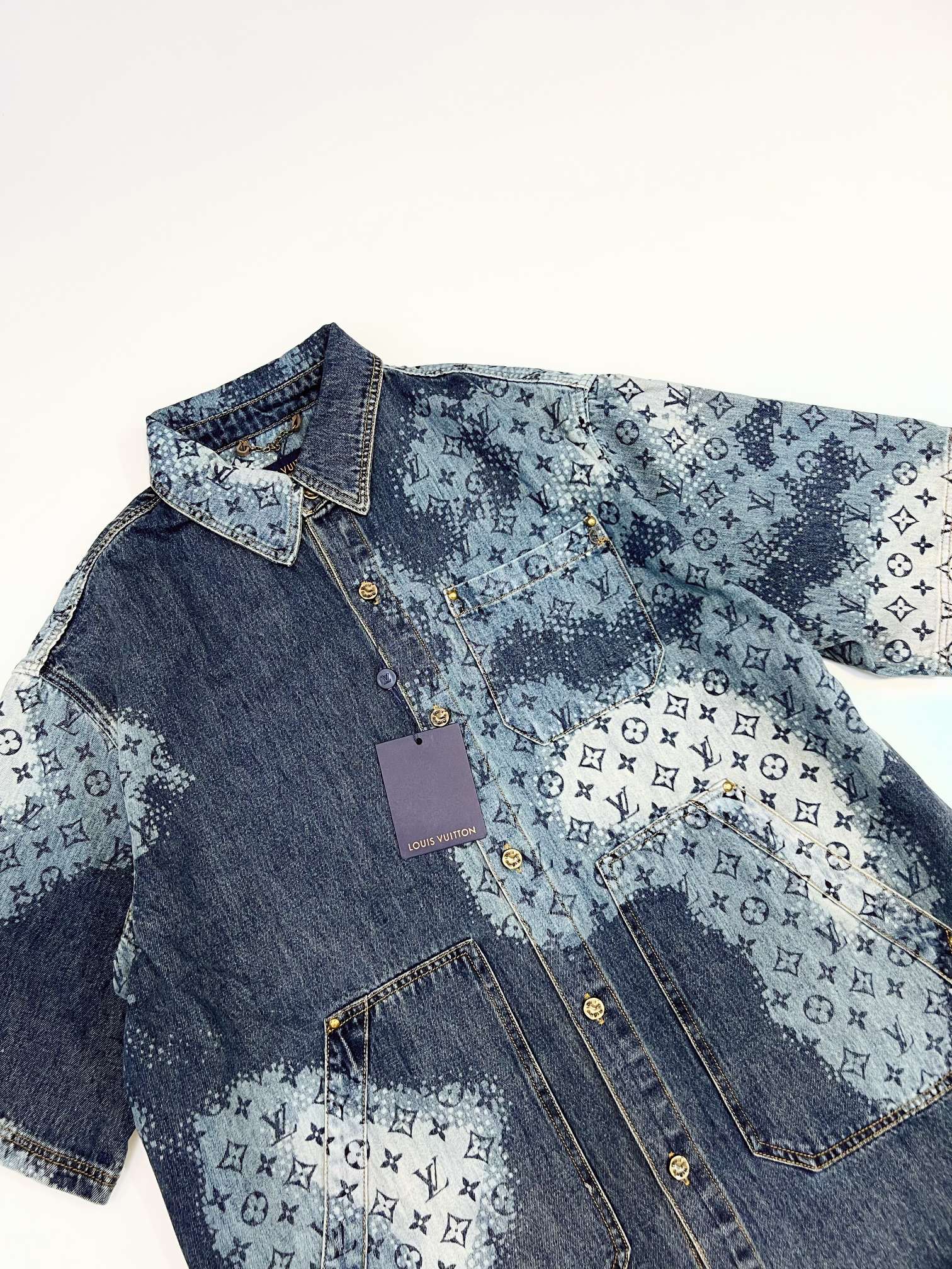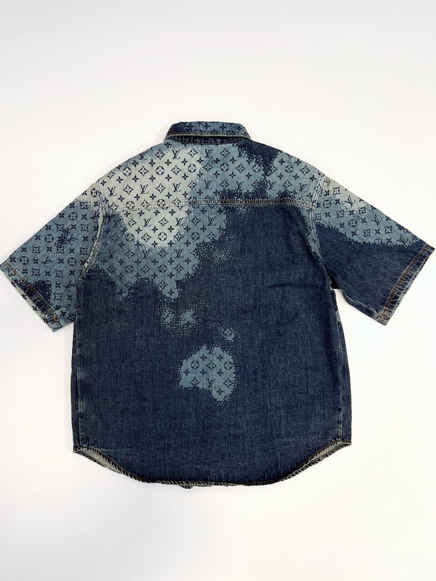 NIGO Louis Vuitton Men's Summer Blue Letter All Over Print Single Breasted With Short Sleeve Denim Jacket Style Shirt #nigo72124