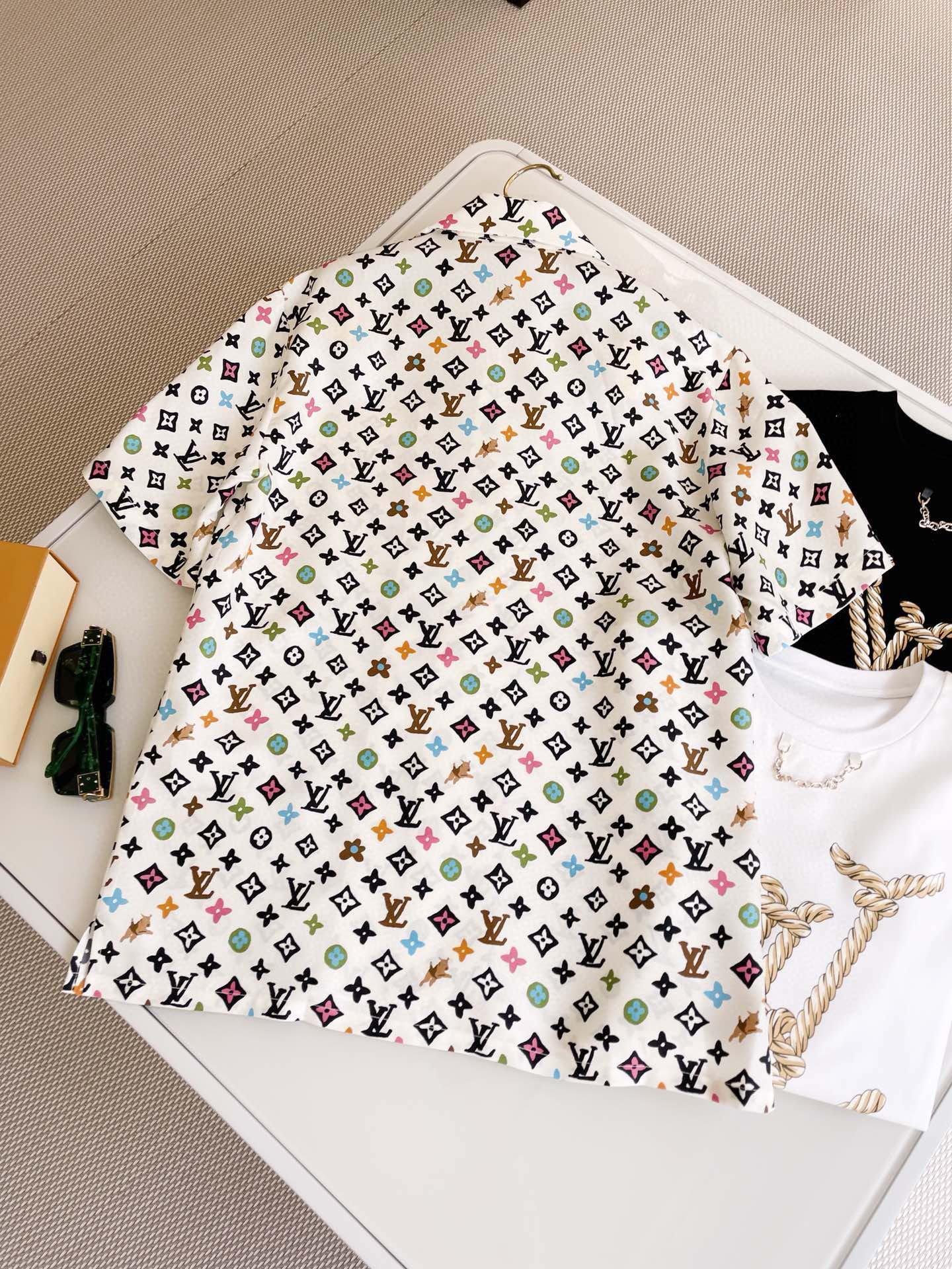 NIGO Louis Vuitton Men's Summer Logo Full Print Single Breasted Silk Short Sleeve Shirt #nigo99595