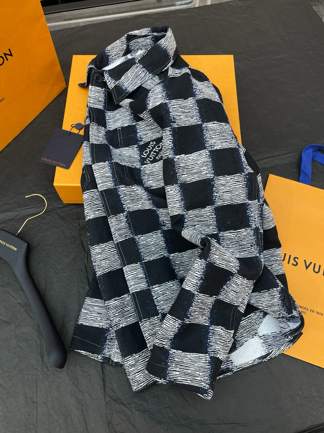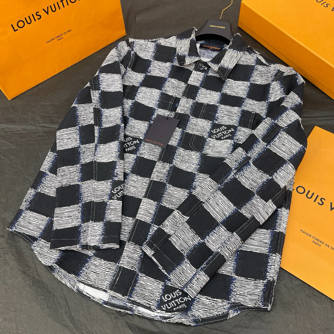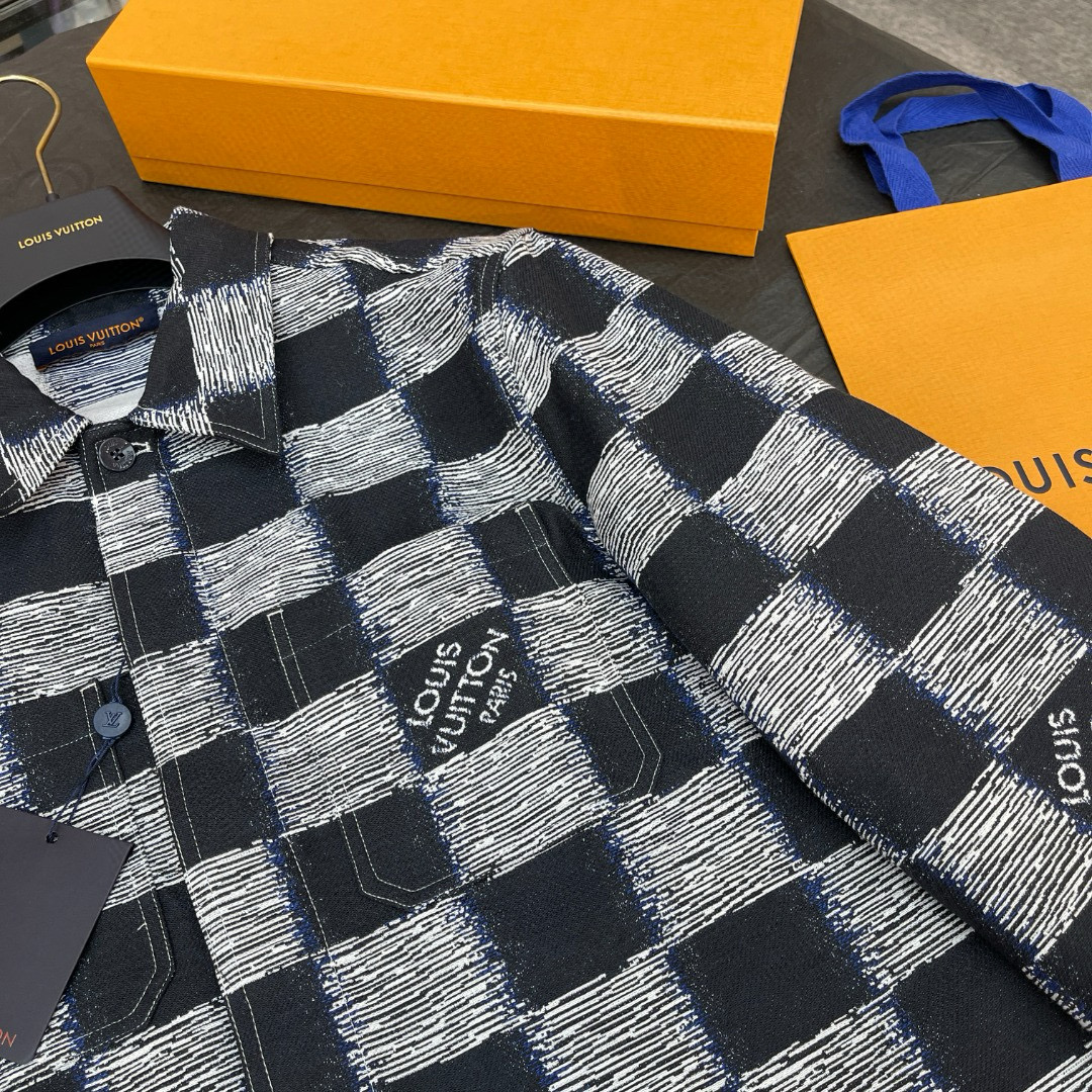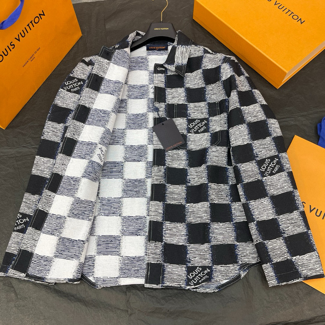 NIGO Louis Vuitton Men's Summer Logo Print Checkerboard Lapel Single Breasted Long Sleeve Shirt #nigo97631