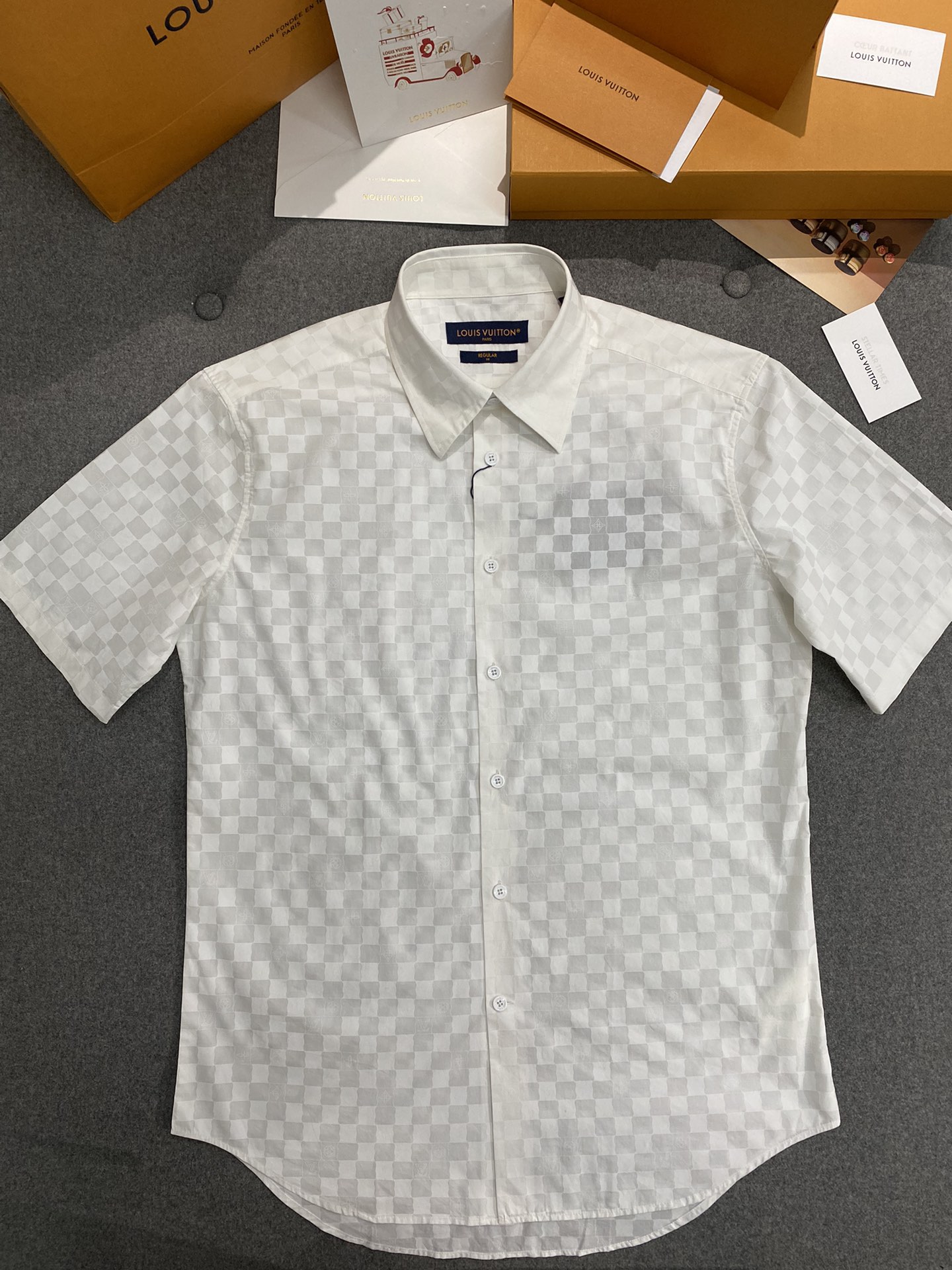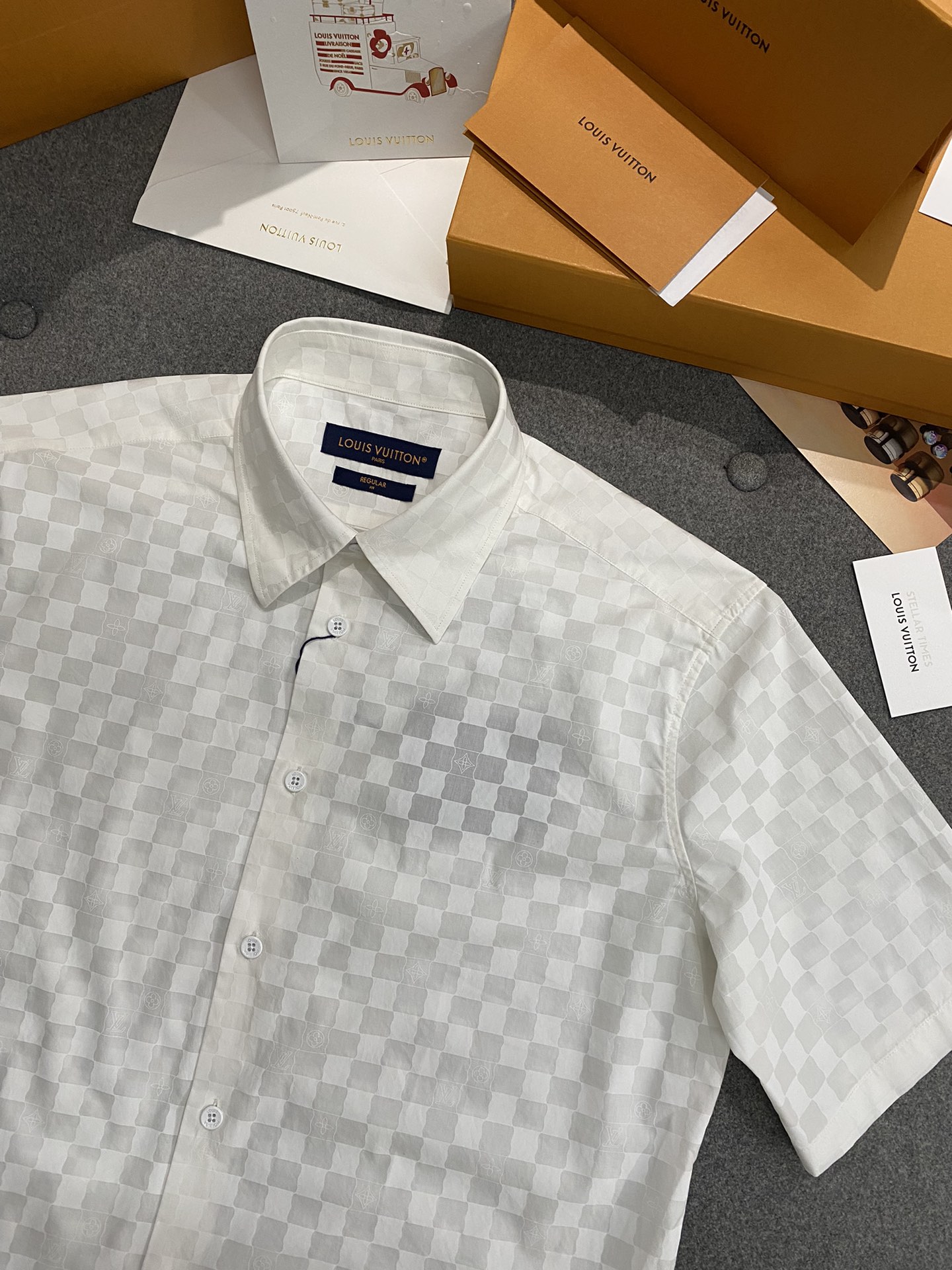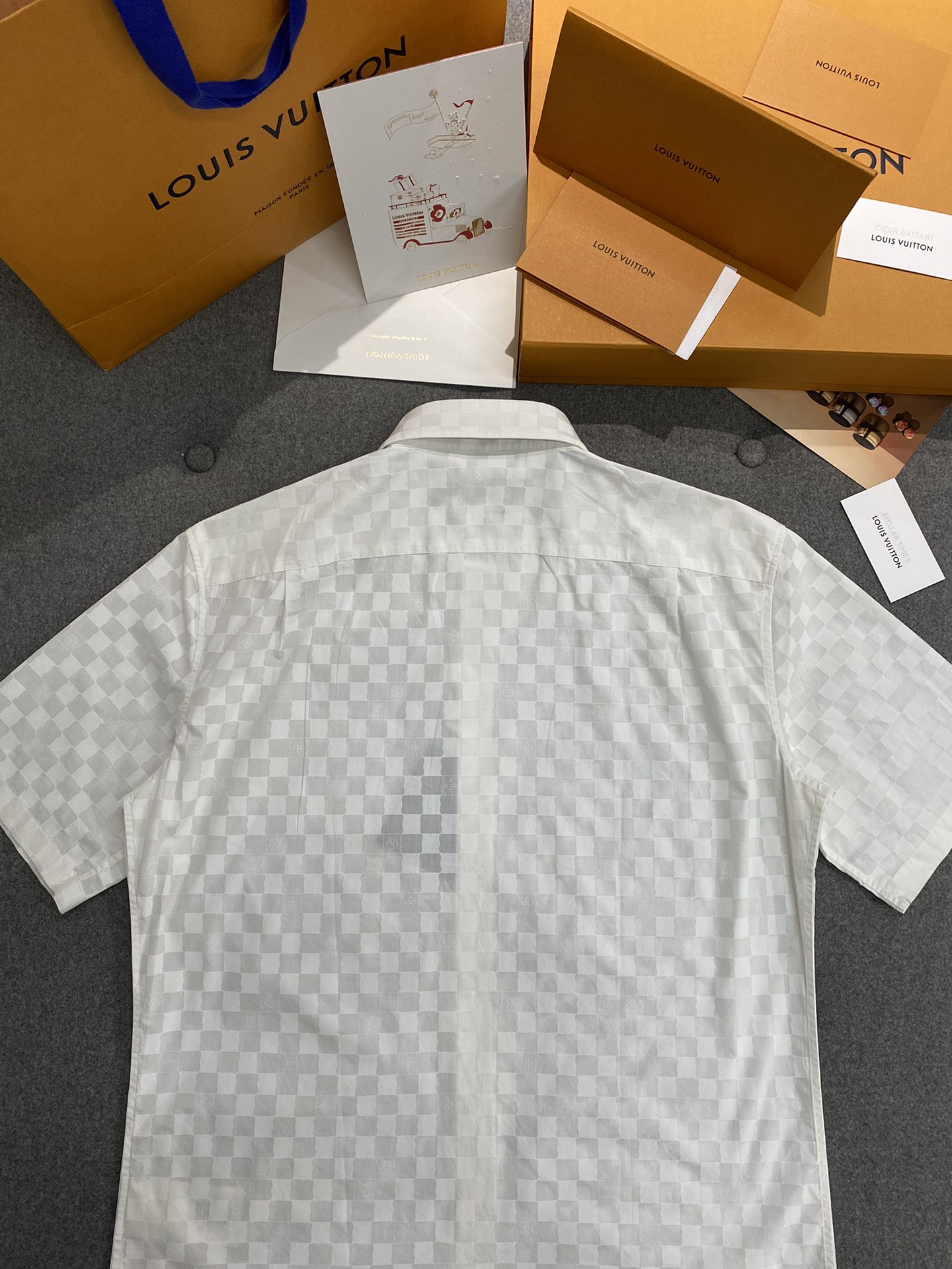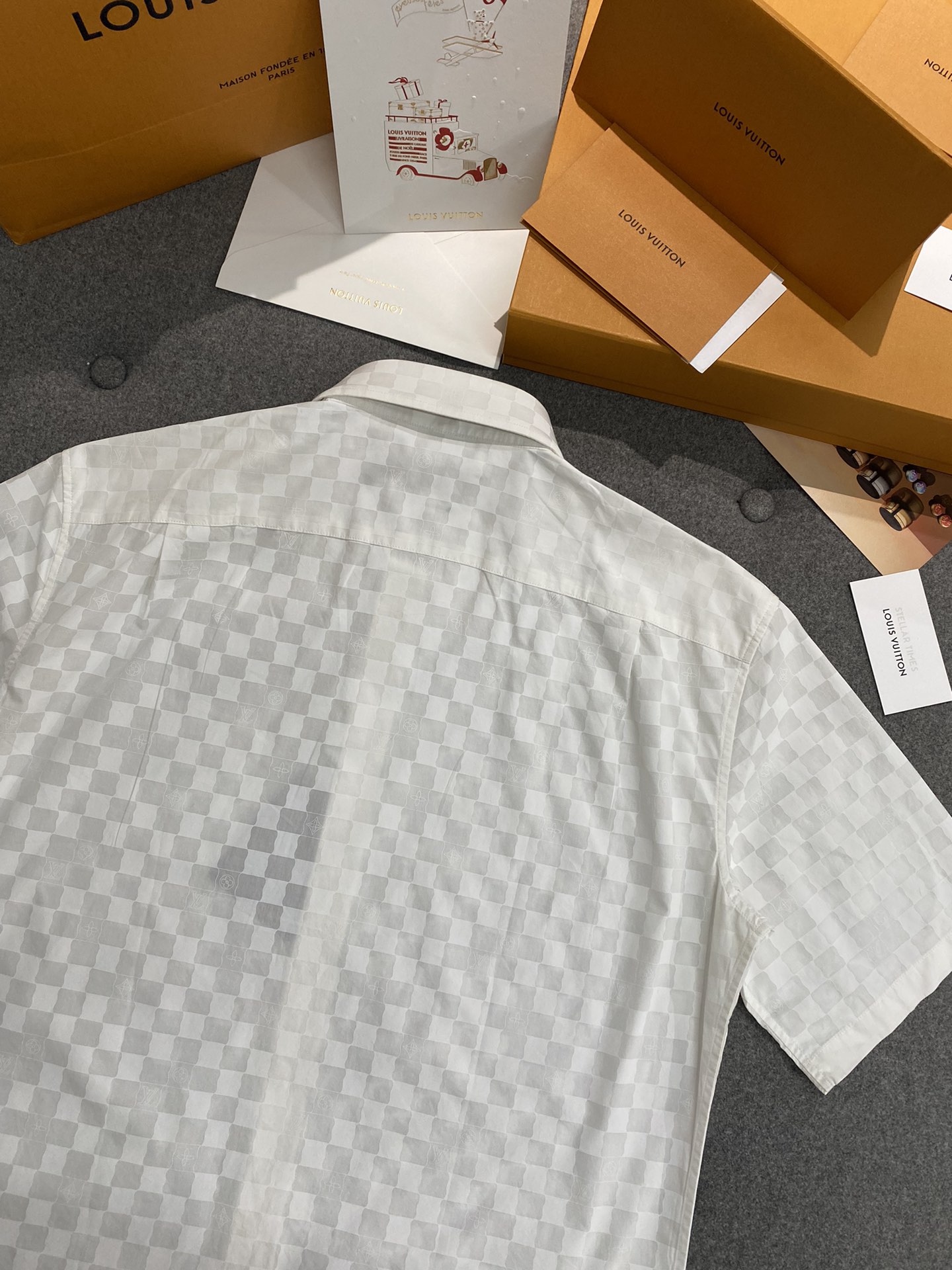 NIGO Louis Vuitton Men's Summer White Check Printed Lapel Single Breasted Short Sleeve Shirt #nigo99199