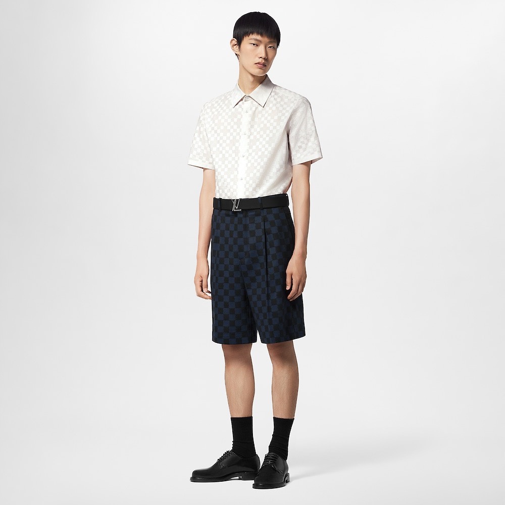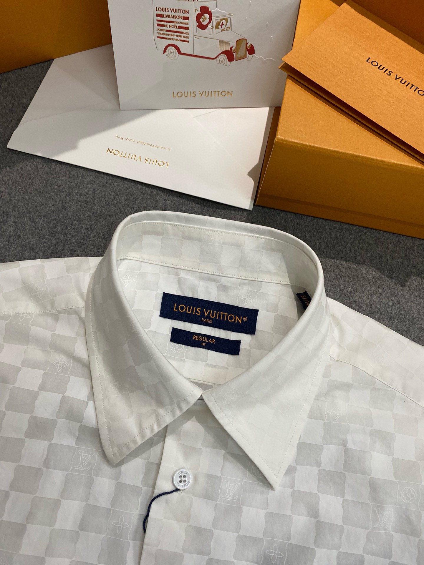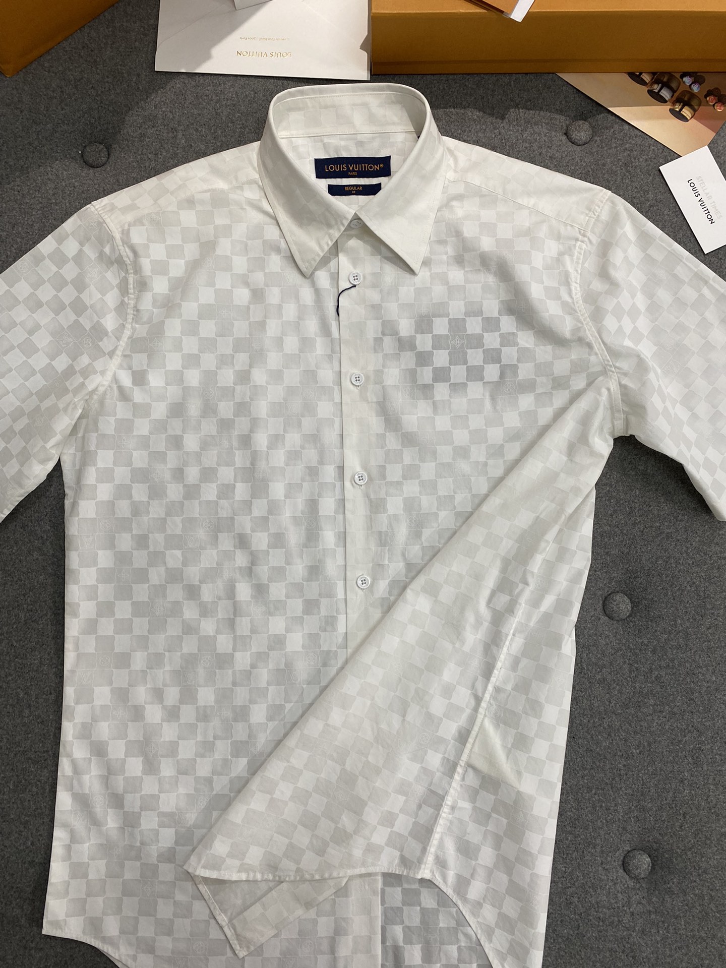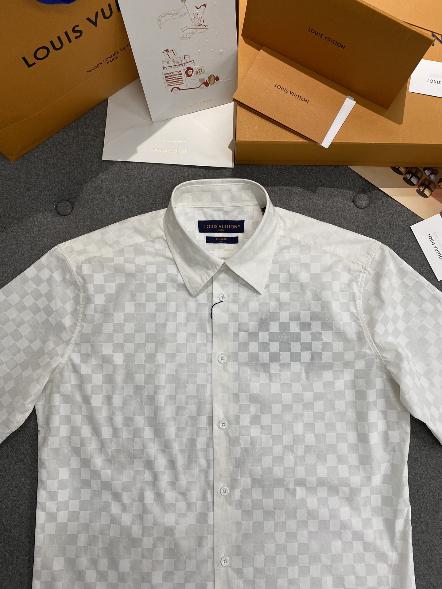 NIGO Louis Vuitton Men's Summer White Check Printed Lapel Single Breasted Short Sleeve Shirt #nigo99199