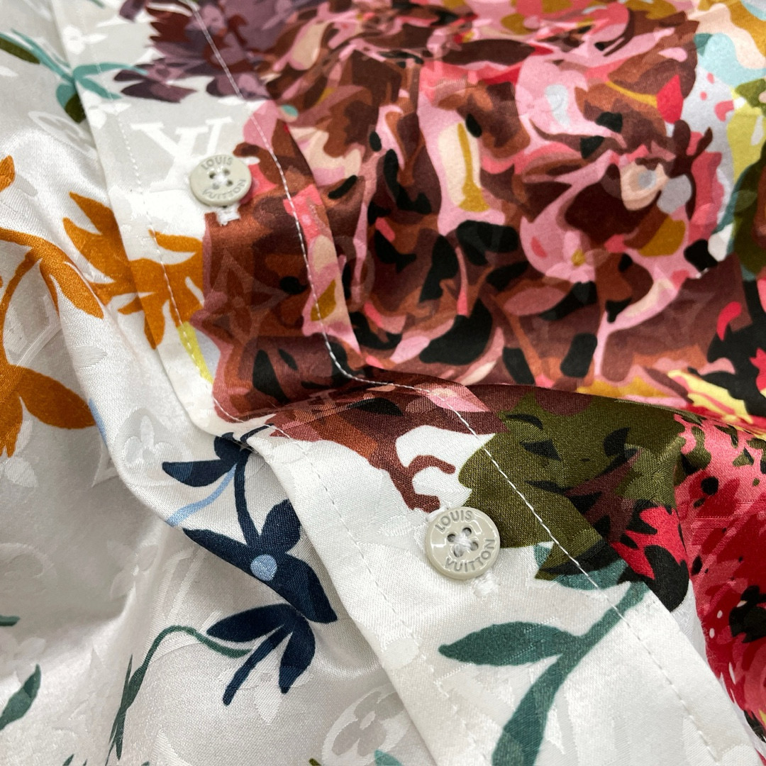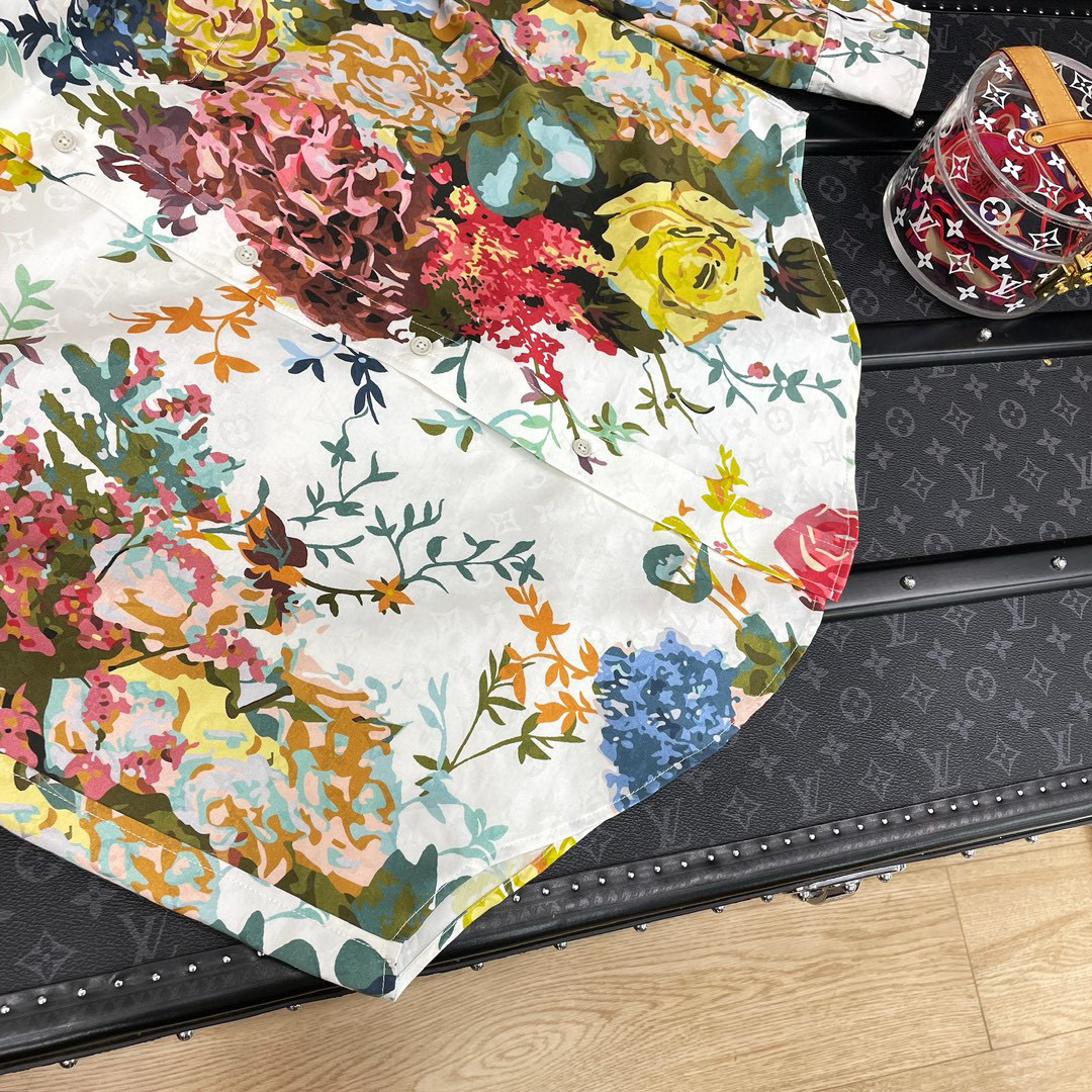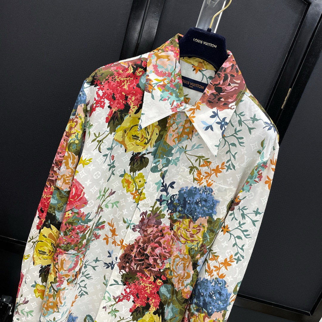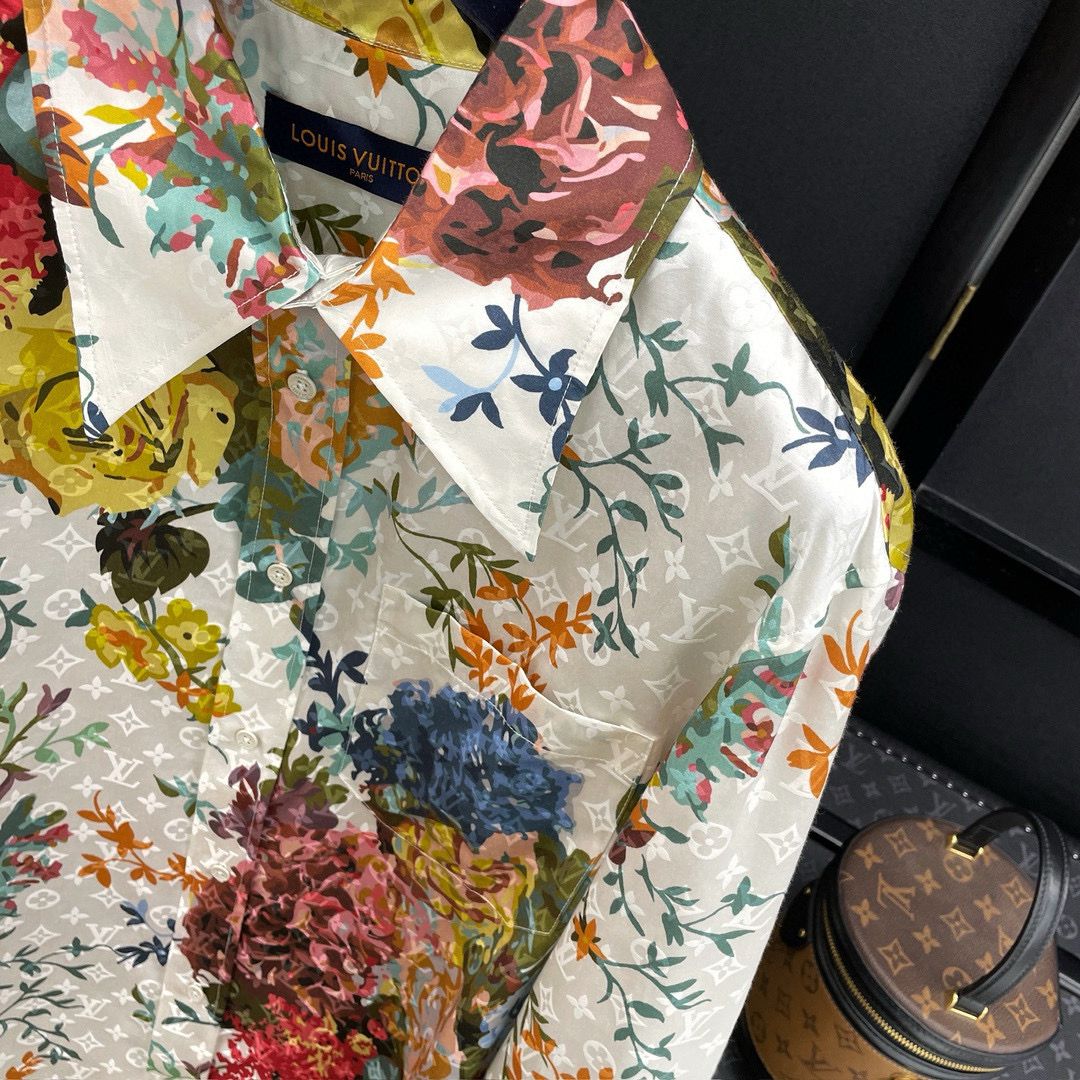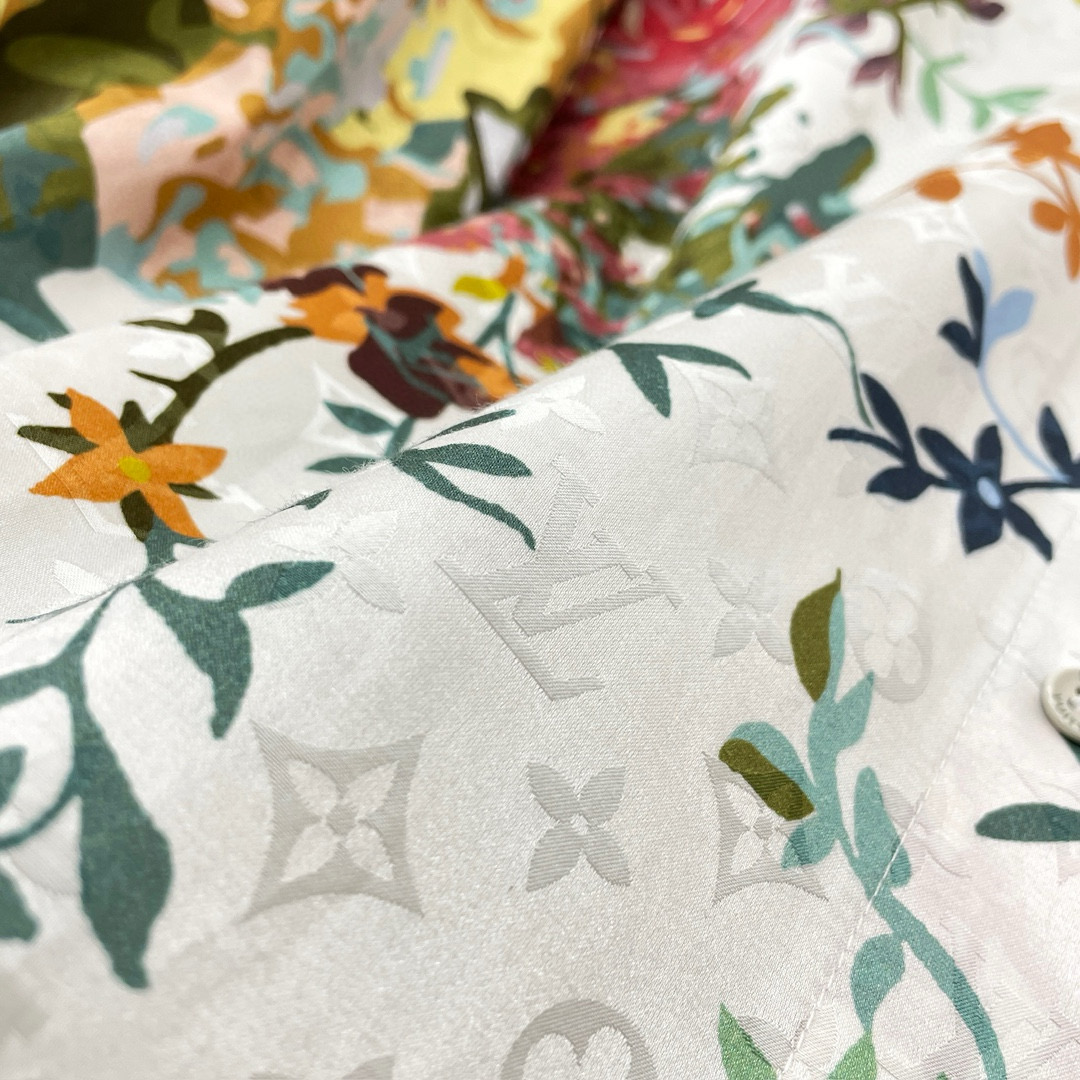 NIGO Louis Vuitton Men's Summer White Floral Print Single Breasted Silk Long Sleeve Shirt #nigo97791