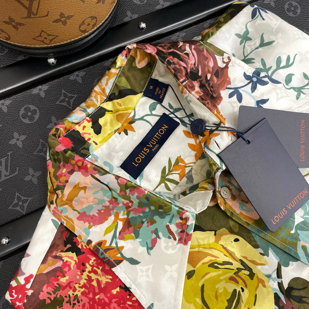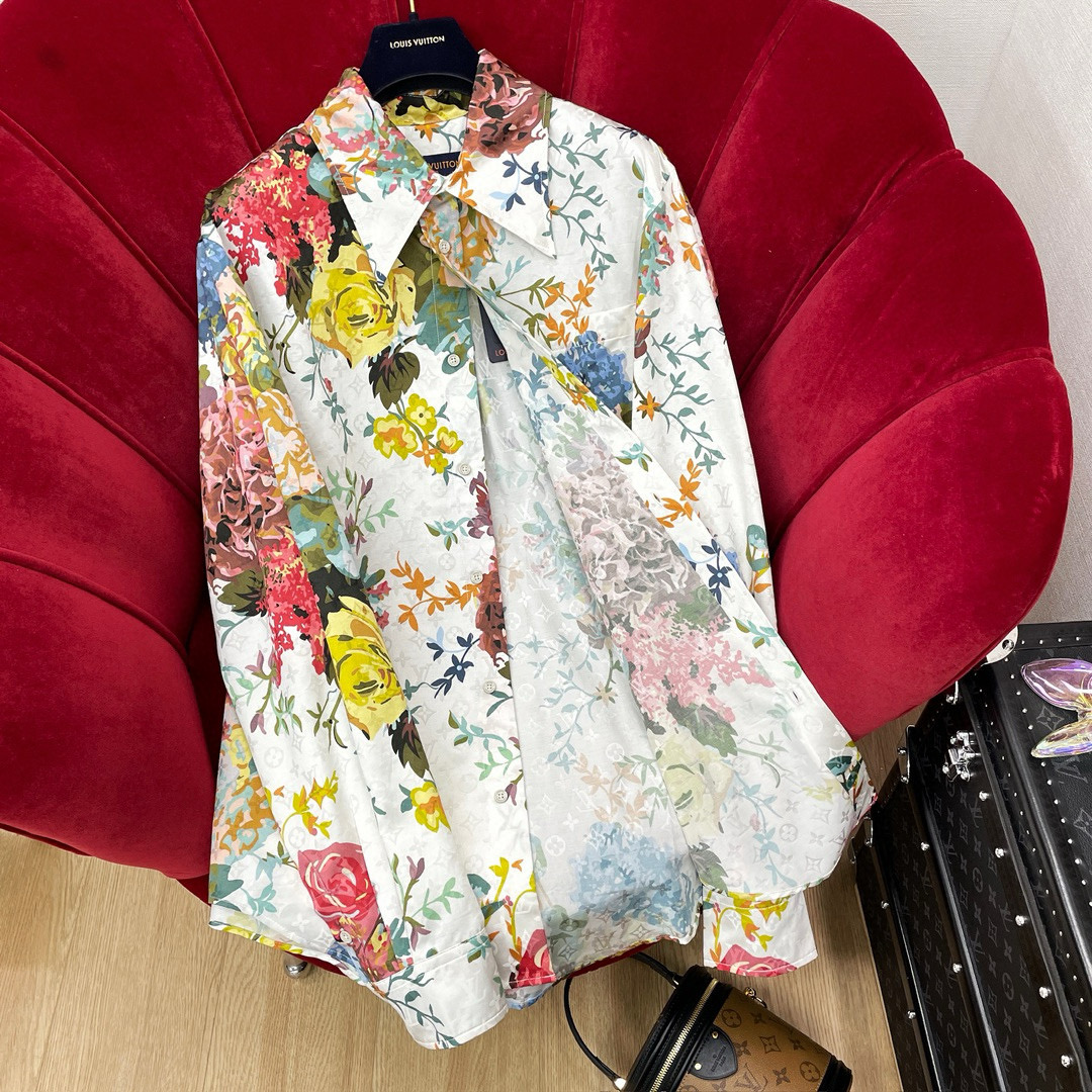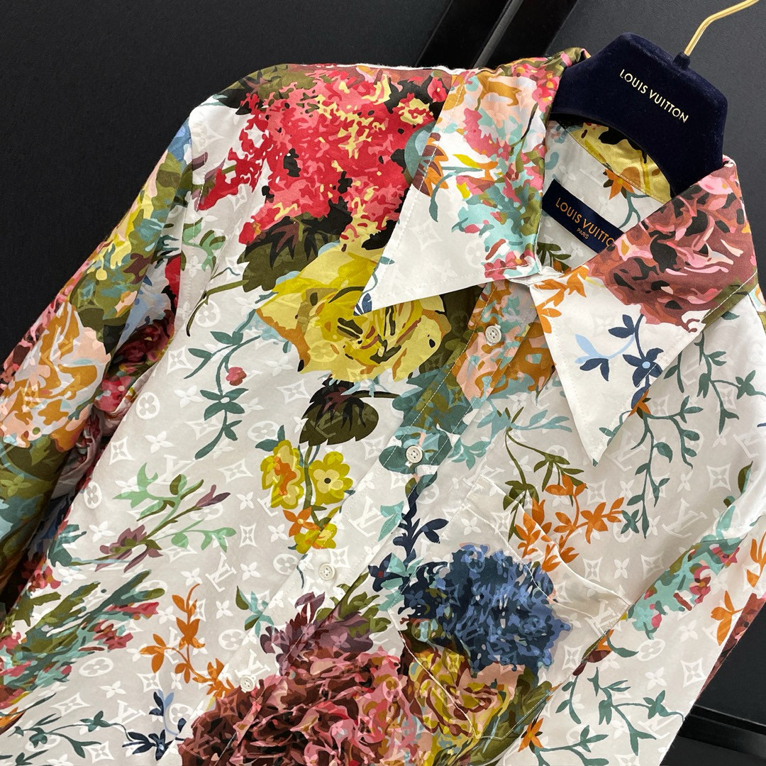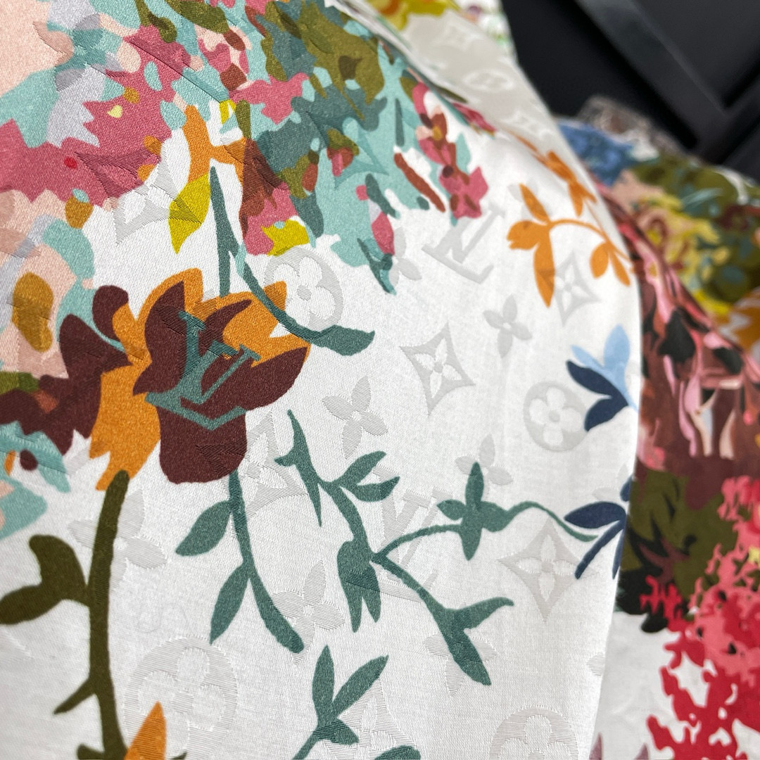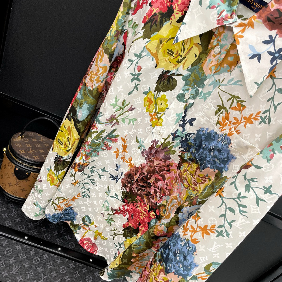 NIGO Louis Vuitton Men's Summer White Floral Print Single Breasted Silk Long Sleeve Shirt #nigo97791