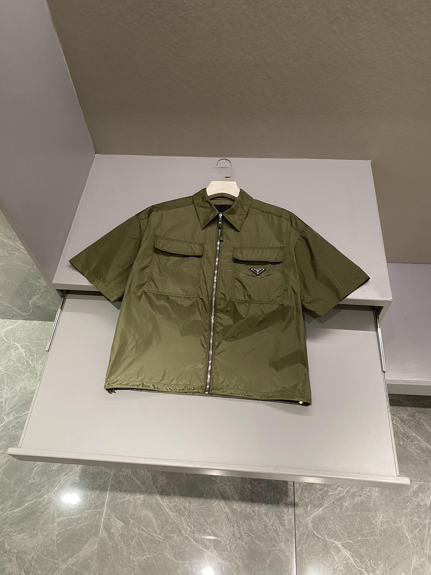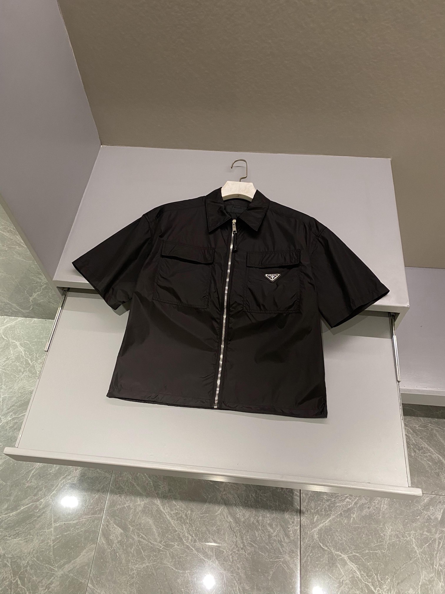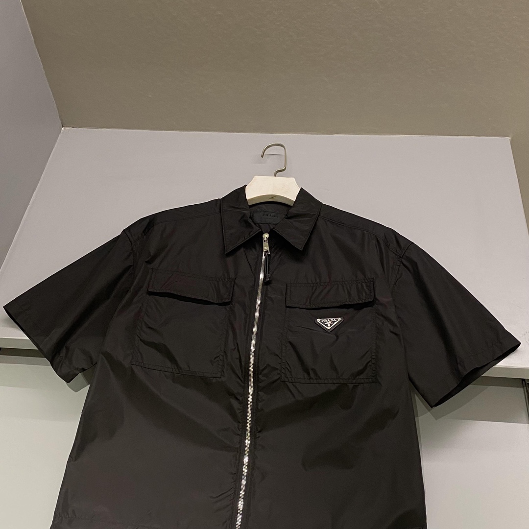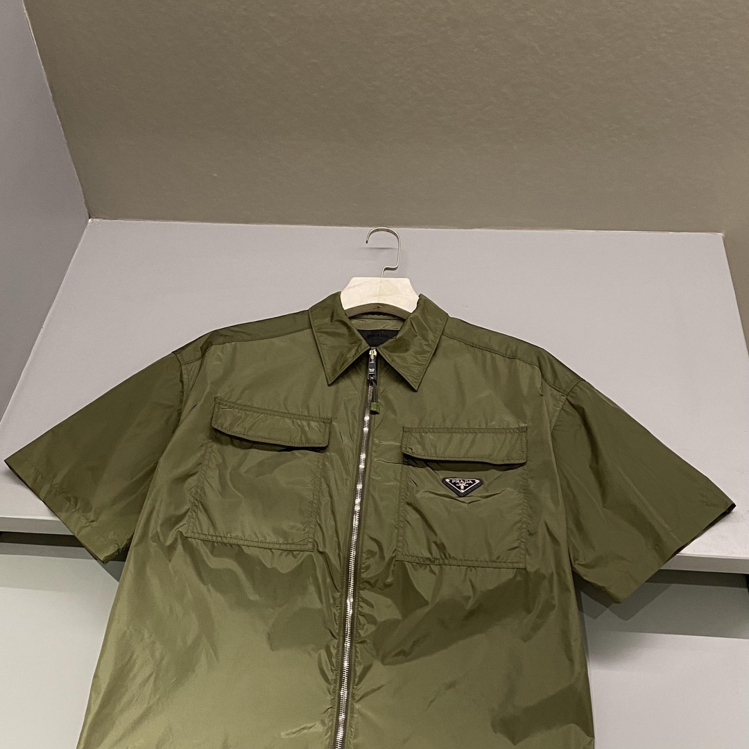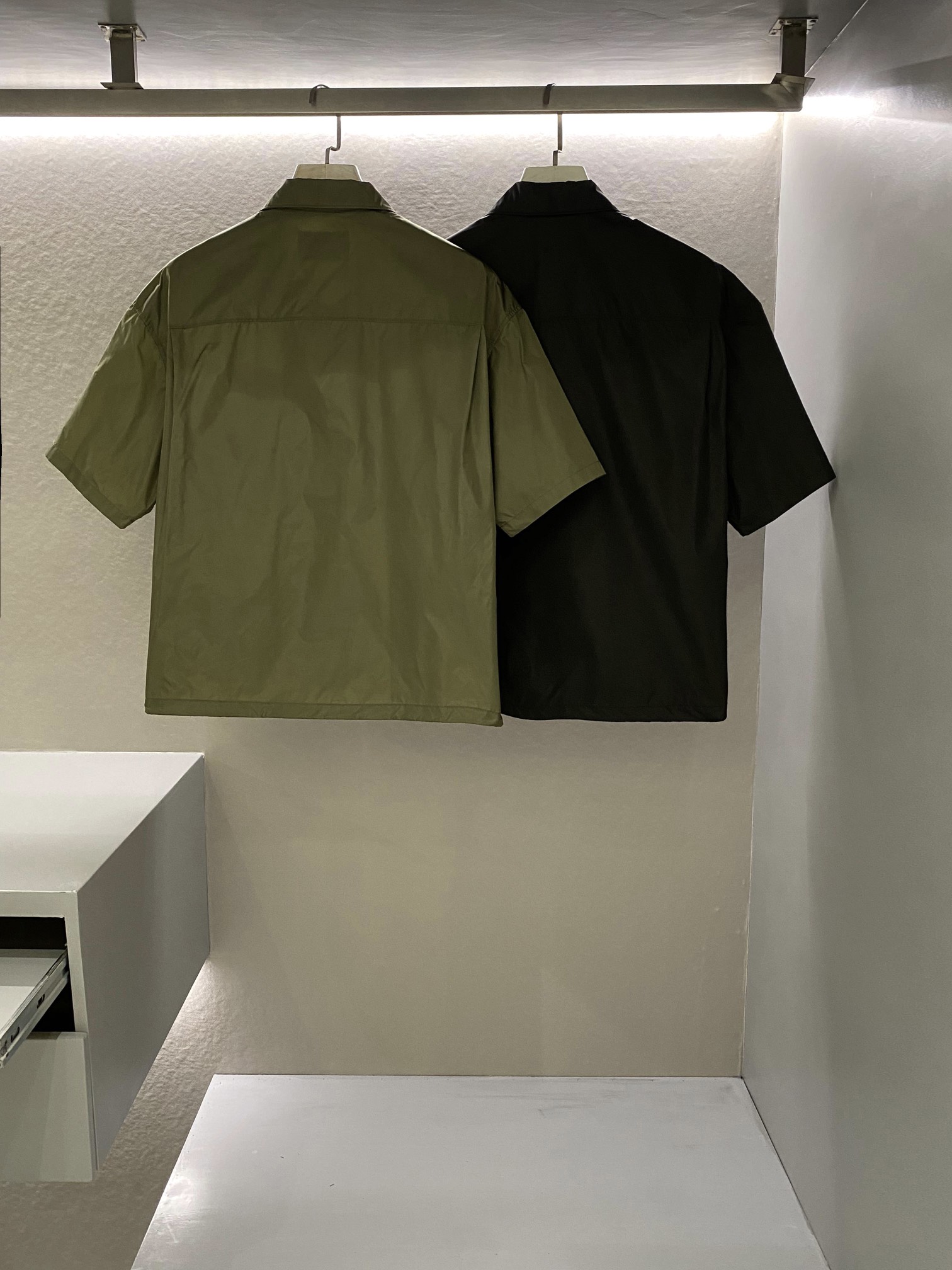 NIGO Prada Men's Spring Summer Nylon Solid Colour Lapel Zip Short Sleeve Shirt #nigo99518