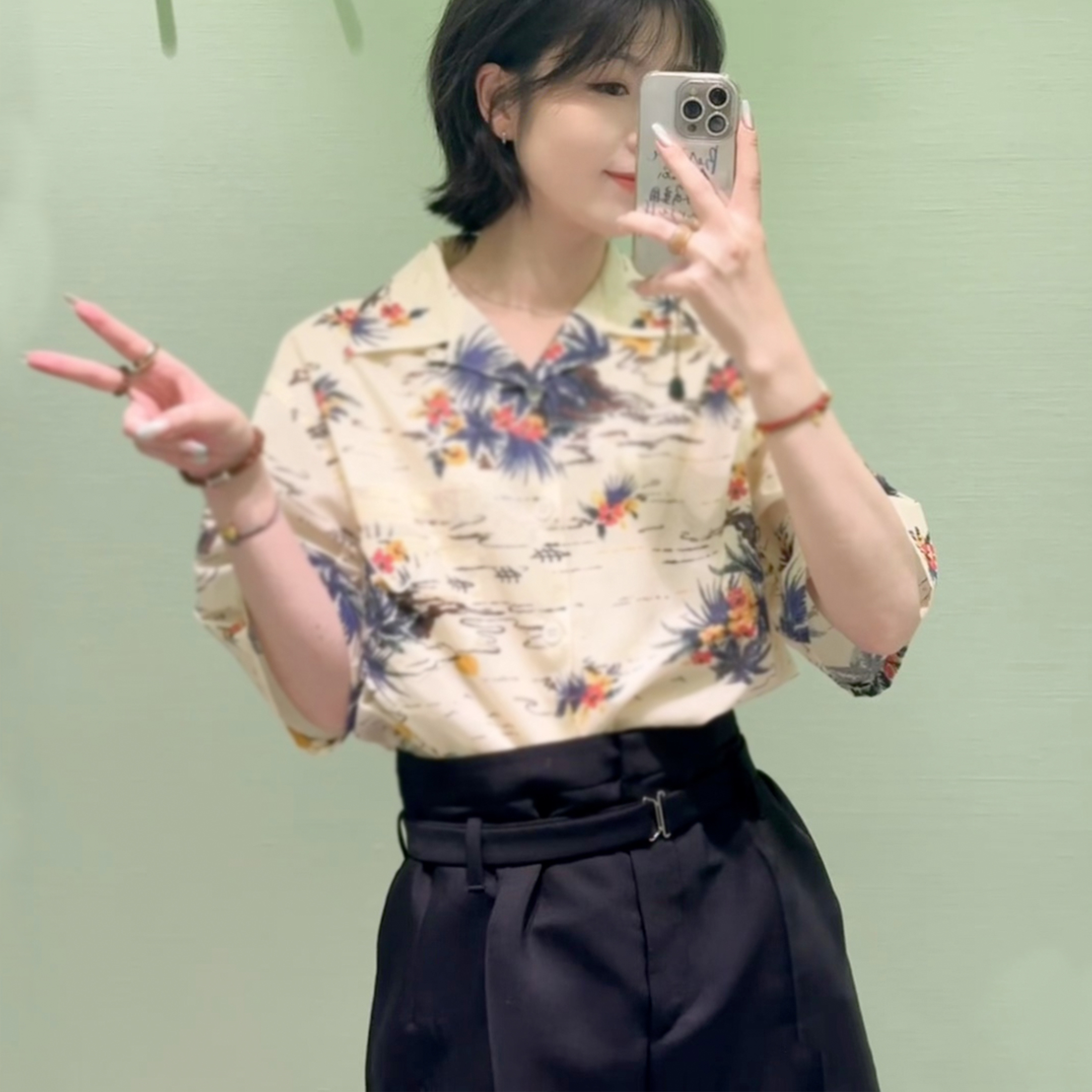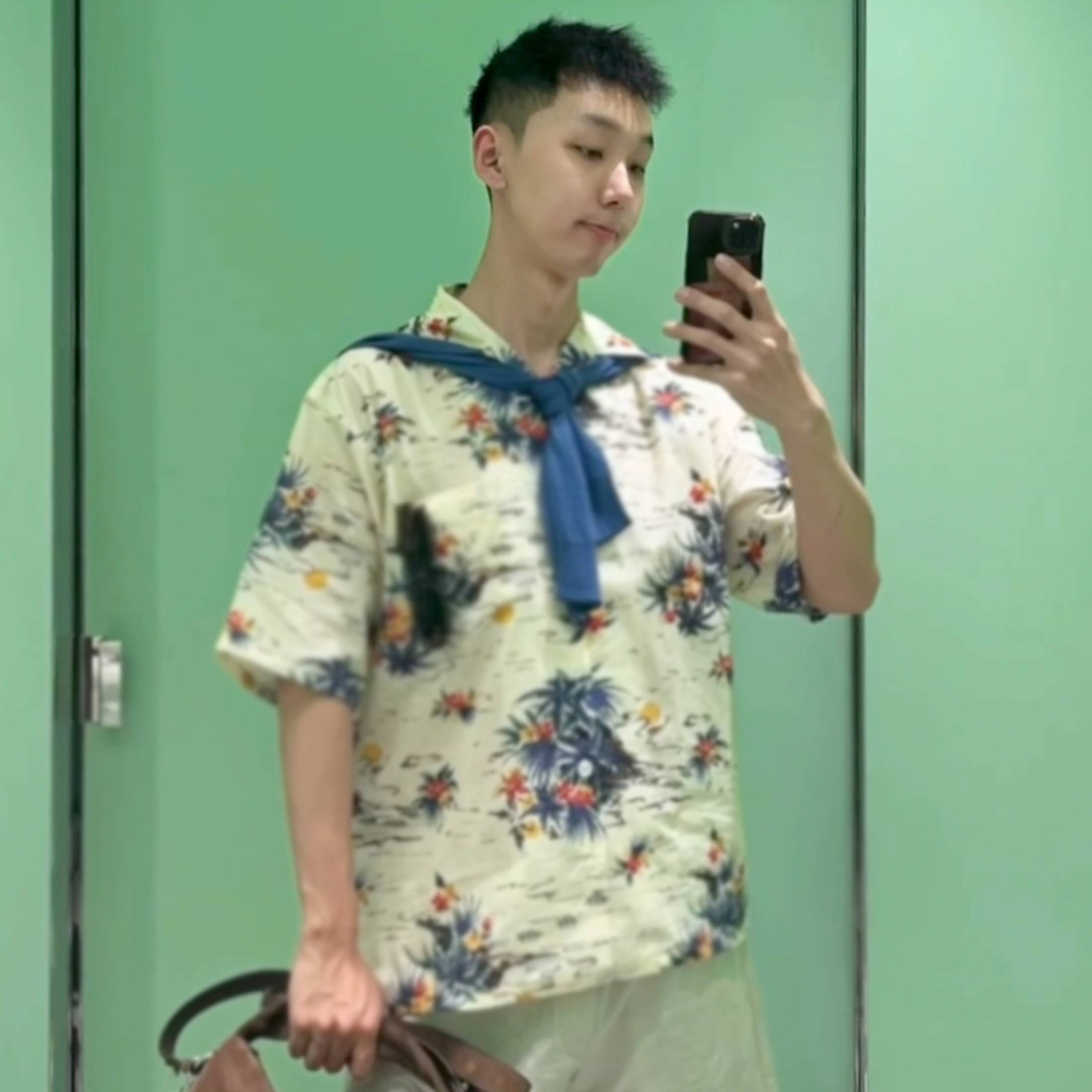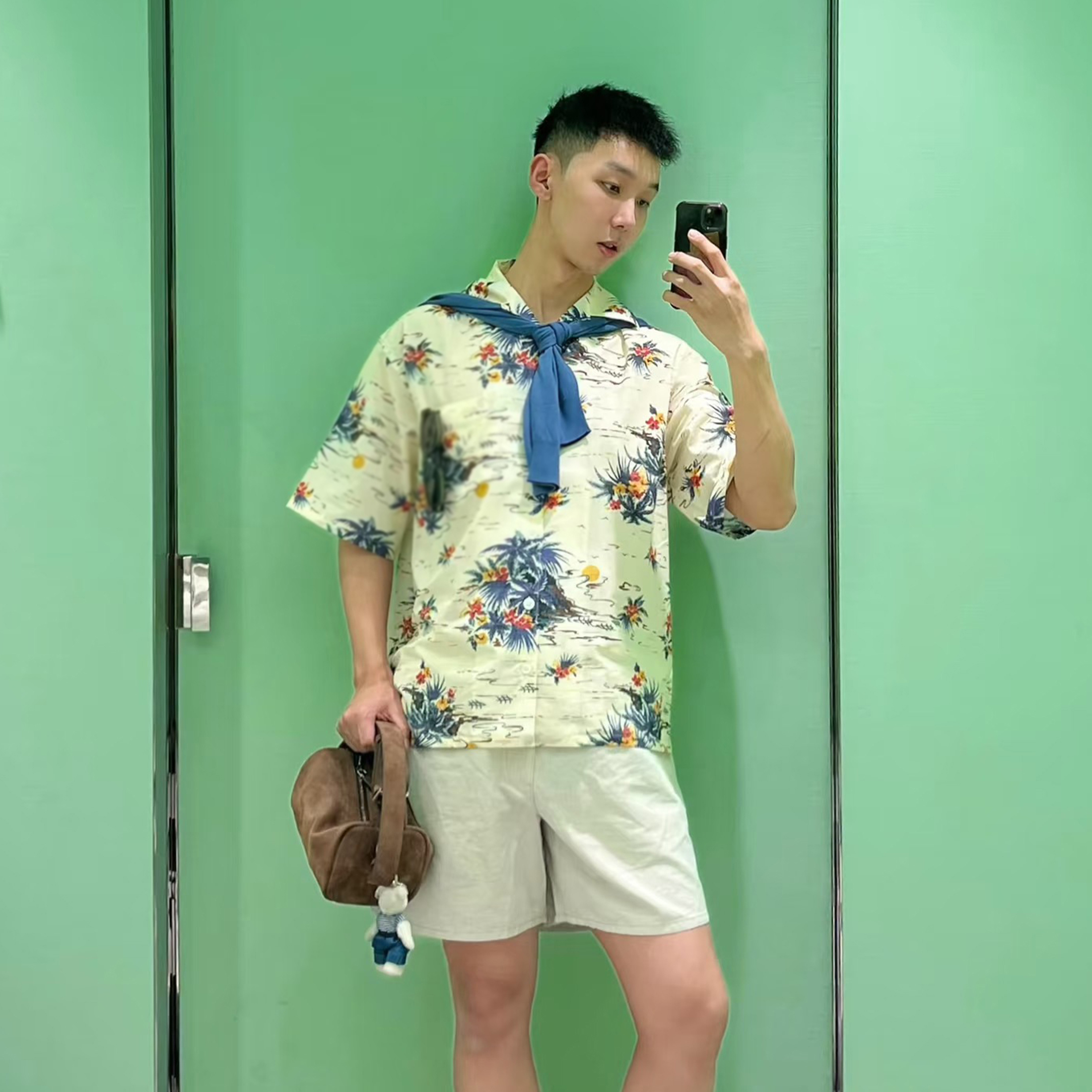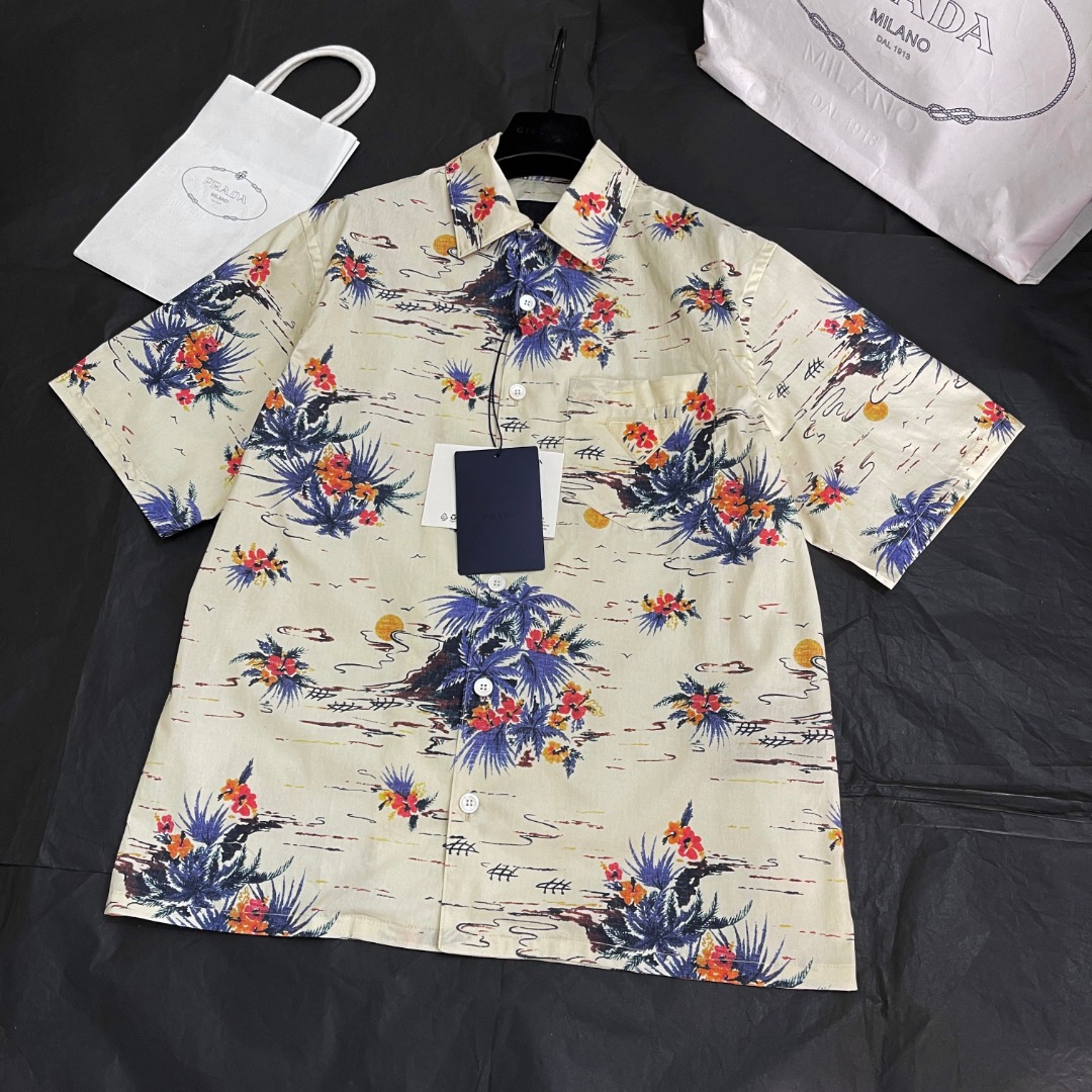 NIGO Prada Men's Women‘s Summer Floral Print Cotton Bowling Shirt Hawaiian Beach Style Short Sleeve Shirt T-shirt Ngvp #nigo1495